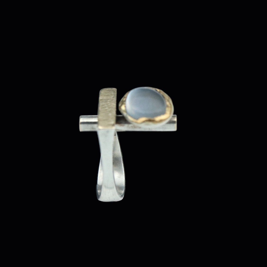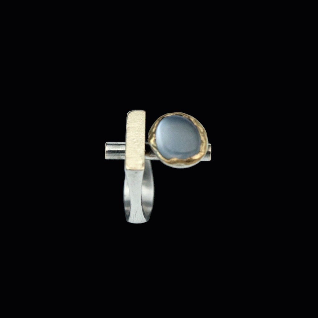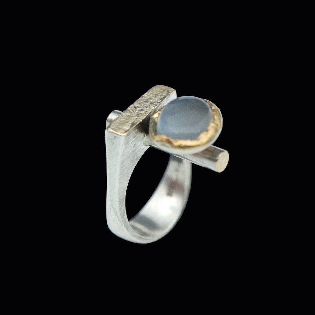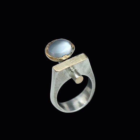 Ole Waldemar Jacobsen. Sterling Silver Ring with 21k Gold and Moonstone.