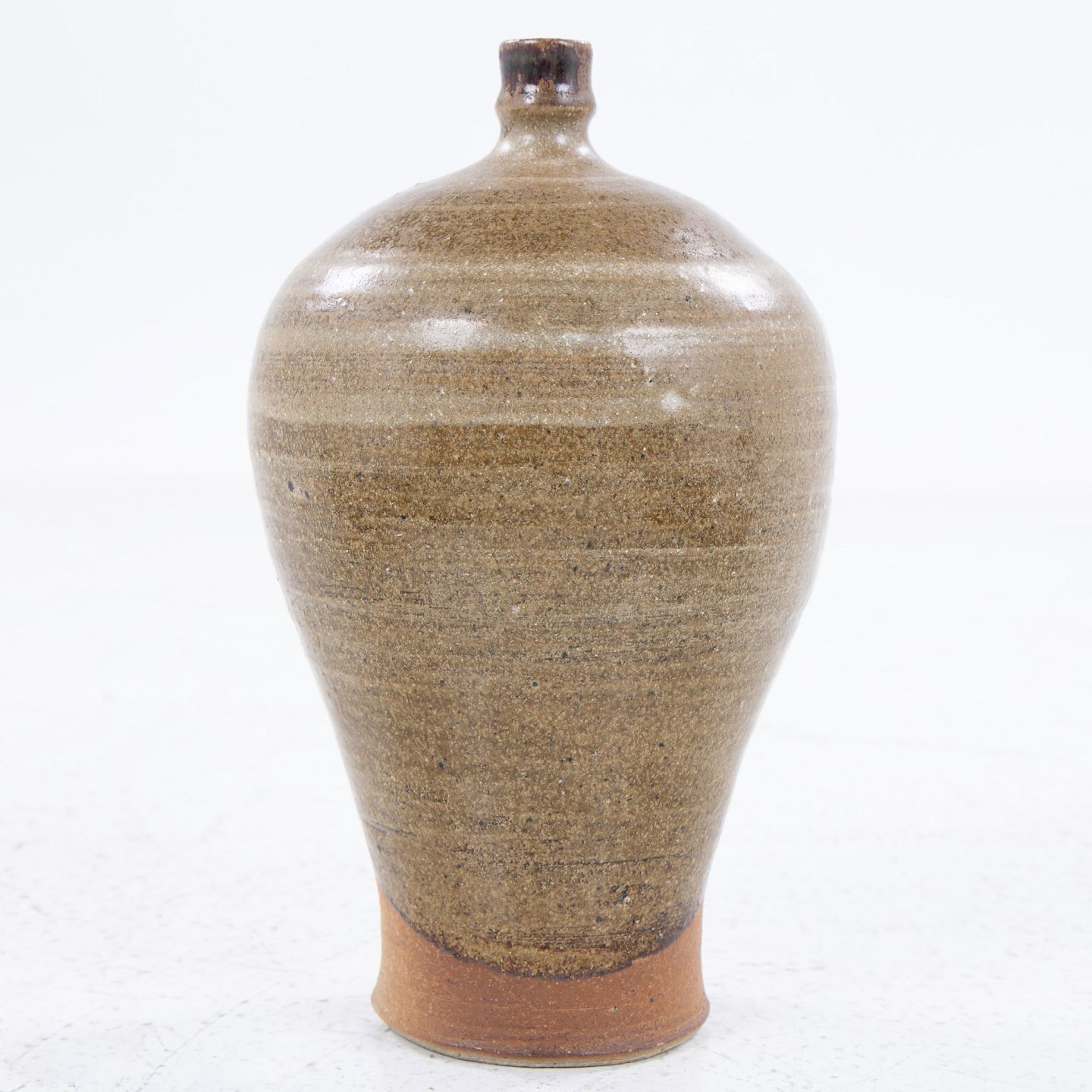 Vase i stentøj glaseret i brunlige nuancer m. tud.