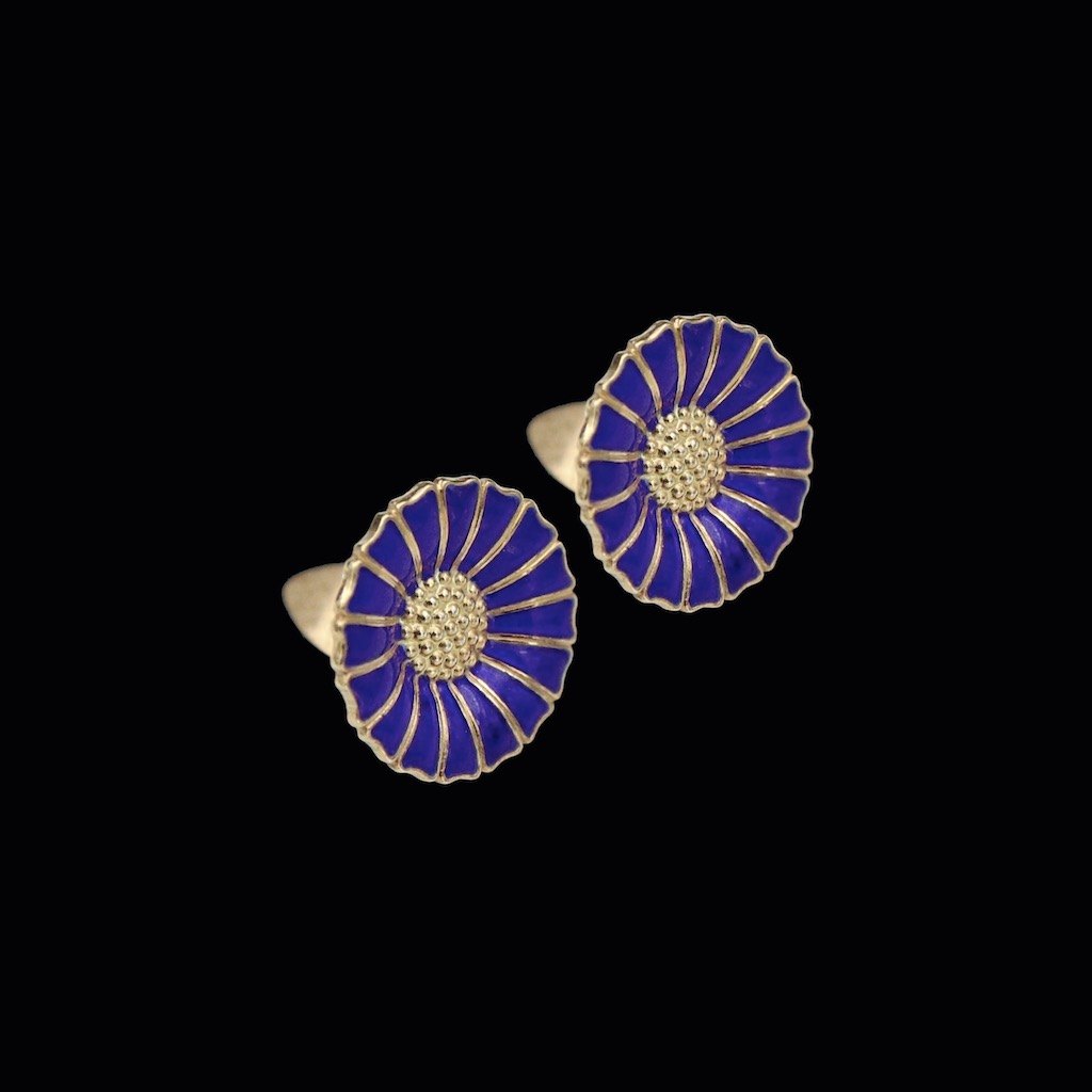Text zugänglich auf Dänische: A. Michelsen Marguerit / Daisy Øreklips i forgyldt sterling sølv med blå emalje - 18mm.