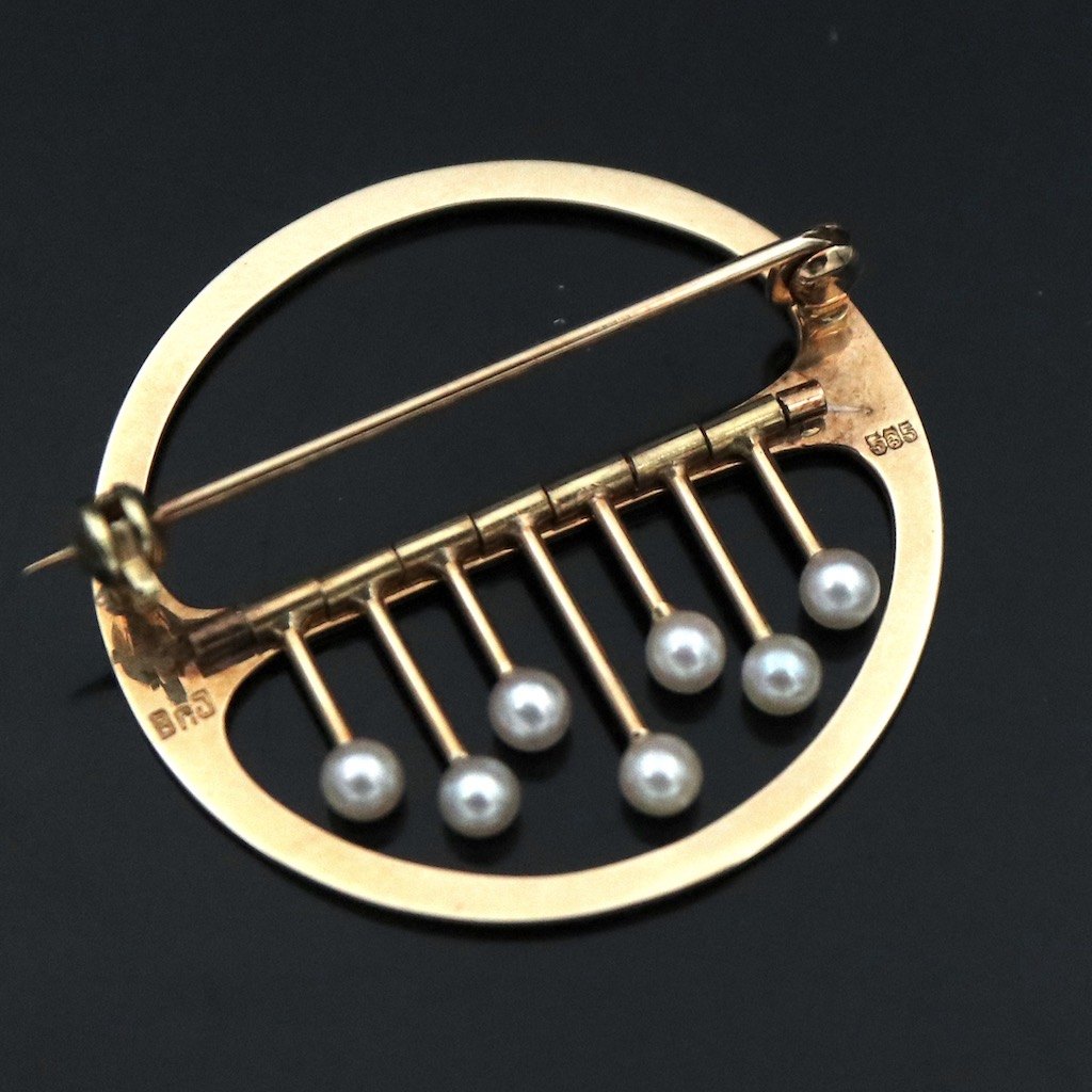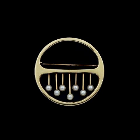 Bræmer-Jensen. Broche i 14k guld med perler.