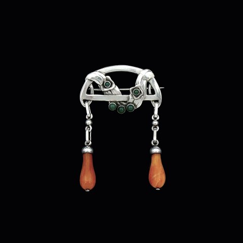 Text zugänglich auf Dänische: Georg Jensen. Broche i 826s sølv med agat og rav. 1907-14 stempler.
