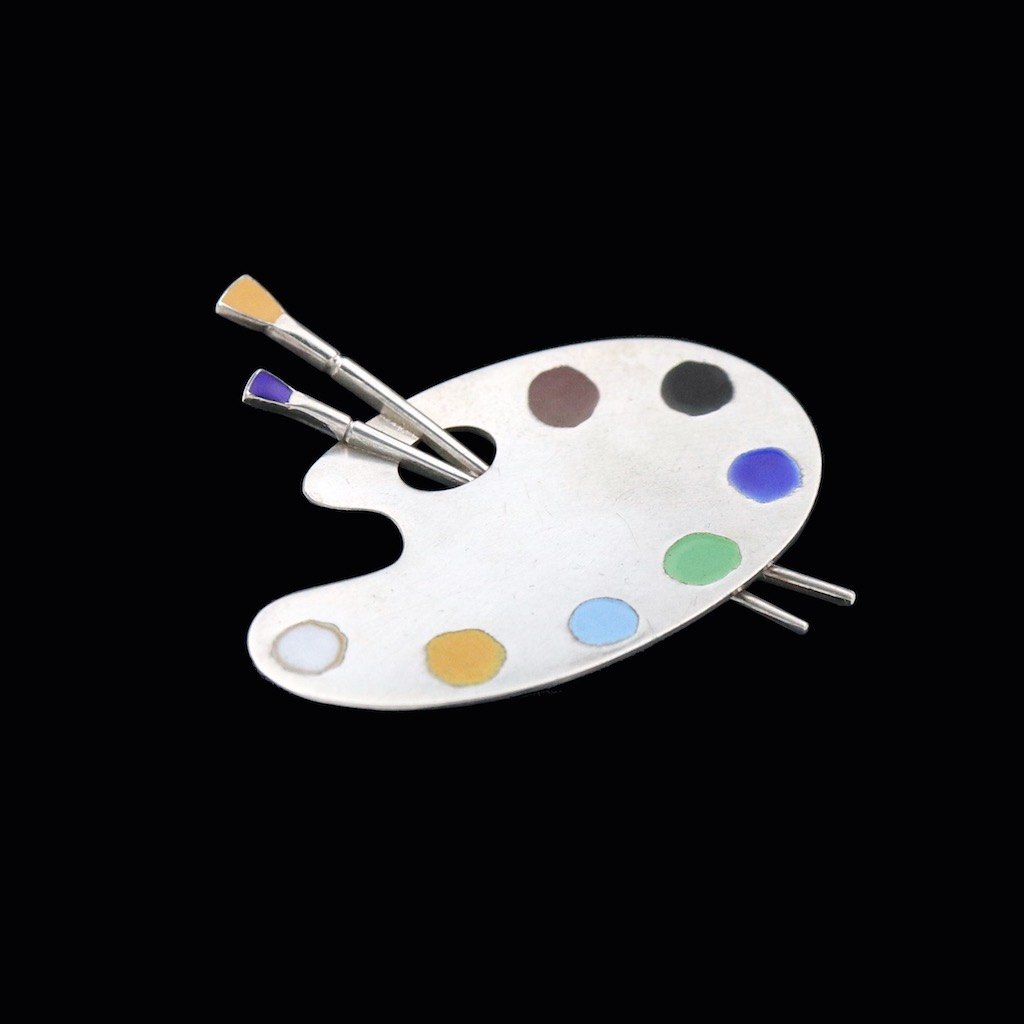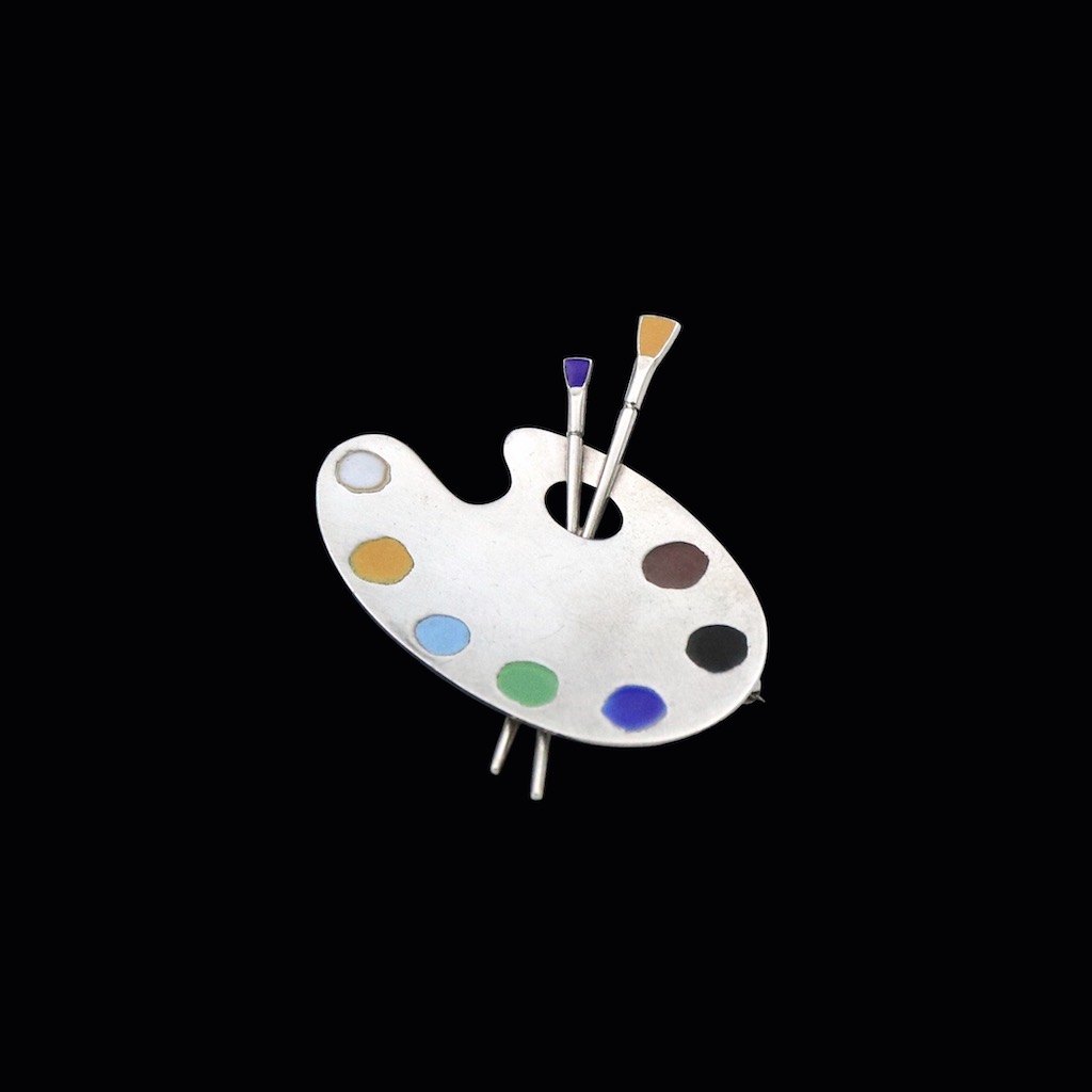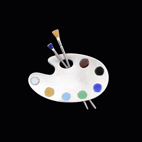 A. Michelsen. 'Palette' Broche i sterling sølv med emalje.