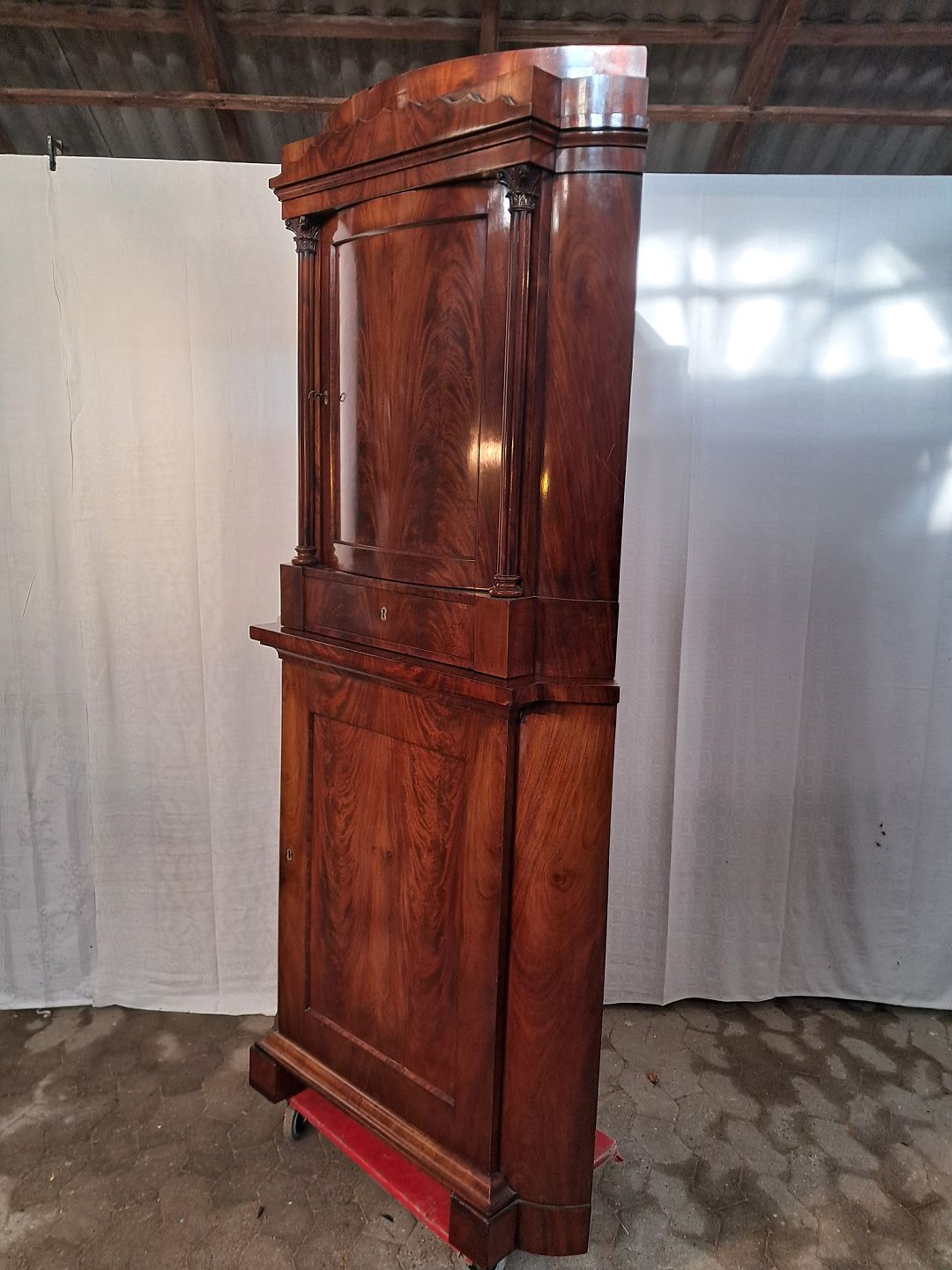 Hjørneskab i fineret mahogni, fra 1890erne.