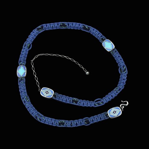 Text zugänglich auf Dänische: Georg Jensen. Macramé bælte med plaketter i sterling sølv med emalje - Naja Salto.