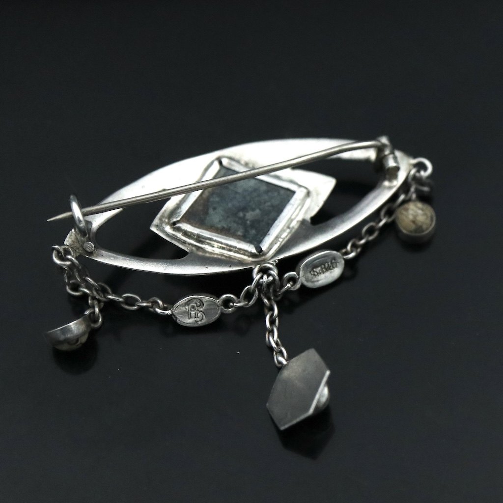 Text zugänglich auf Dänische: Mogens Ballin 1871-1914. Skønvirke Broche i sølv med sten.
