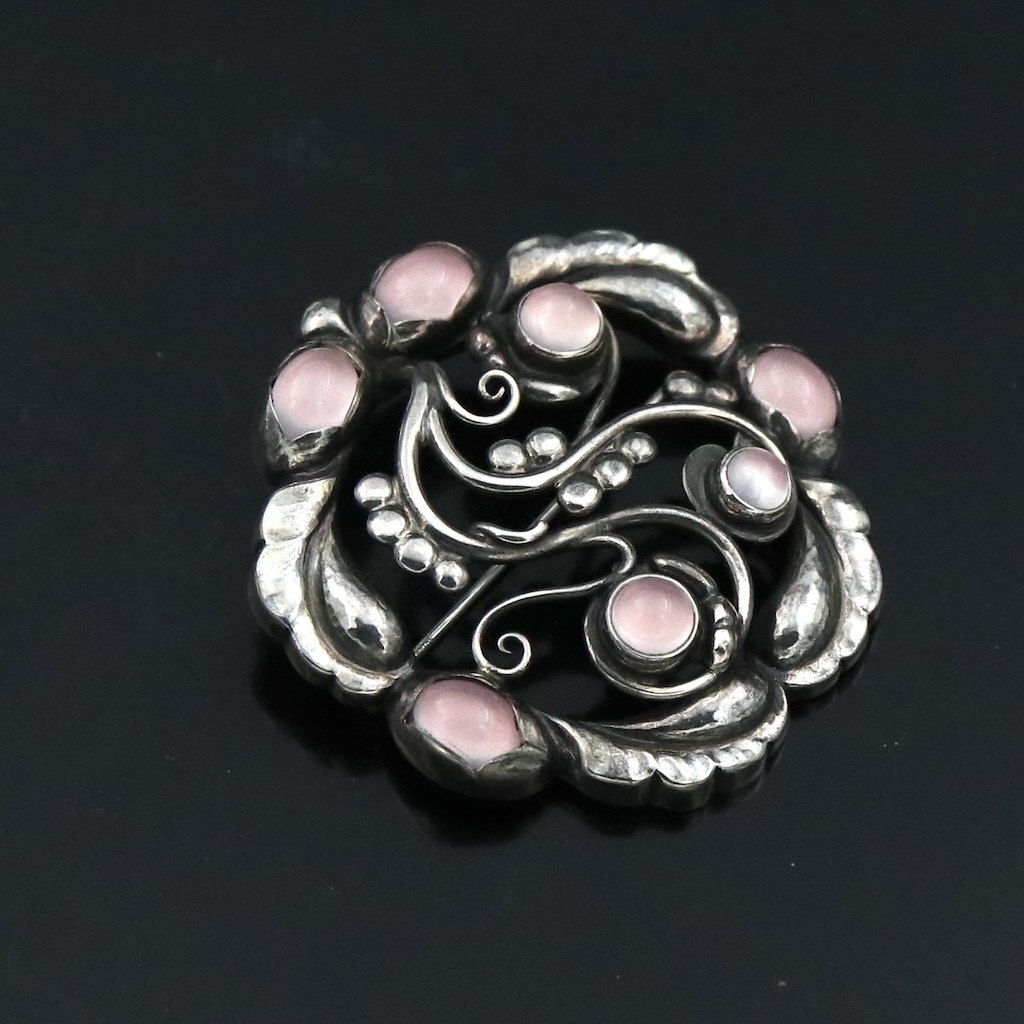 Georg Jensen. Broche i sterling sølv med rosa kvarts #159