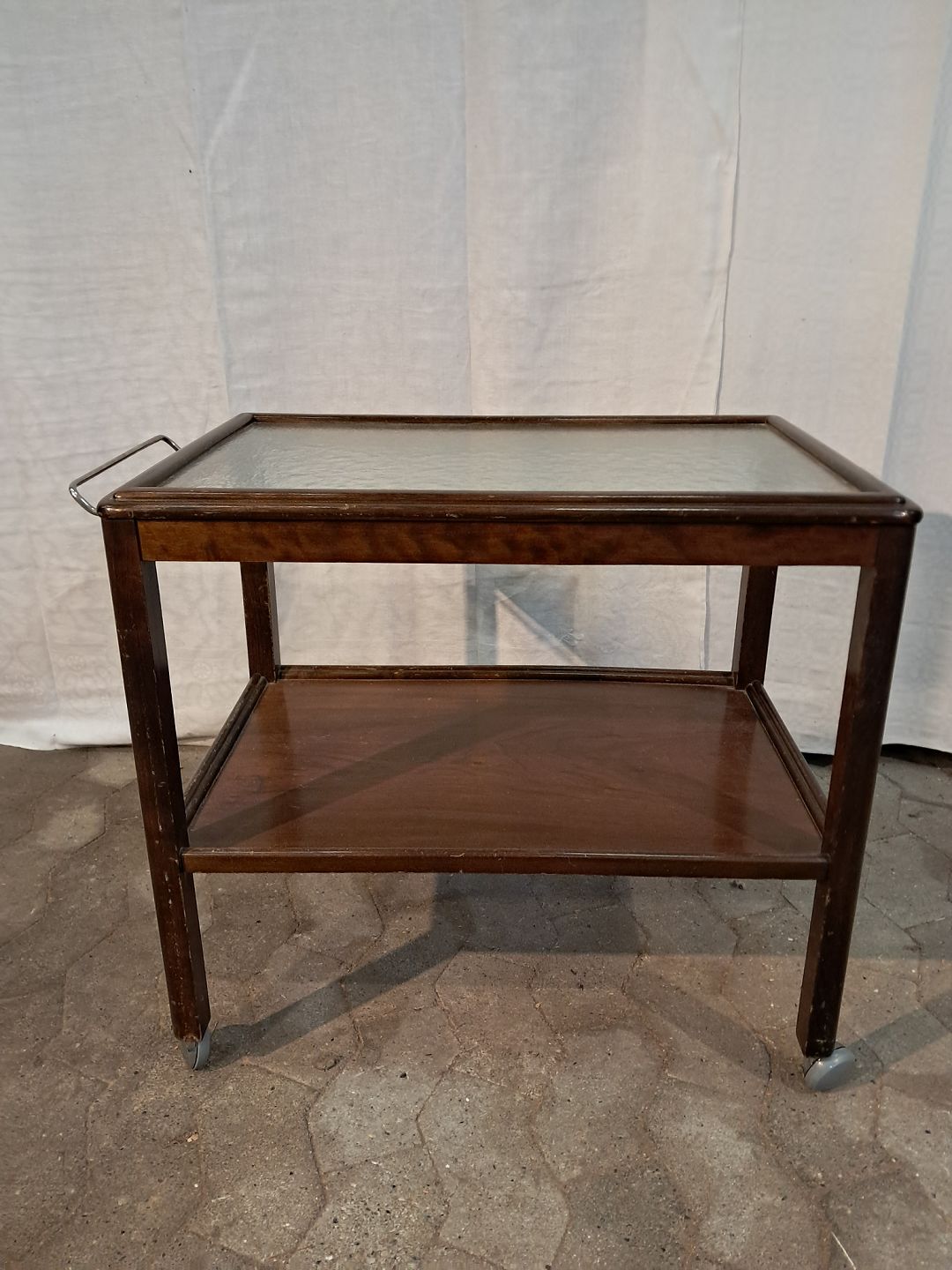 Bord i massivt birketræ med glasplade, fra 140erne.