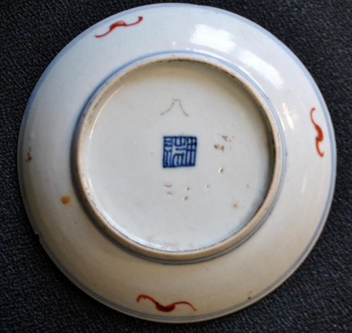 Kinesisk porcelains tallerken, polykron dekoreret, 19. årh