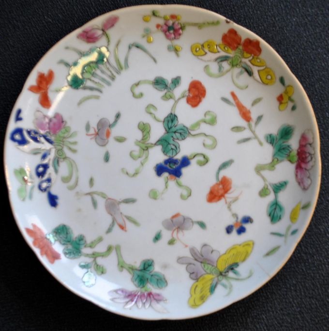 Kinesisk porcelains tallerken, polykron dekoreret, 19. årh