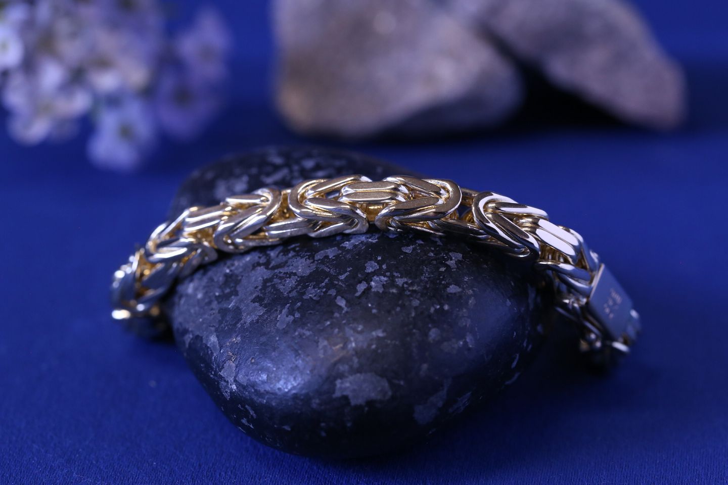 This 14 carat gold king chain is as heavy as it is elegant. A solid gold piece that expresses strength and elegance. The bracelet lies softly on the wrist and is comfortable to wear for a long time. This is mainly due to the structure of the chain and the flexible links. This is definitely a bracelet in a special class, where you immediately notice that it is quality.