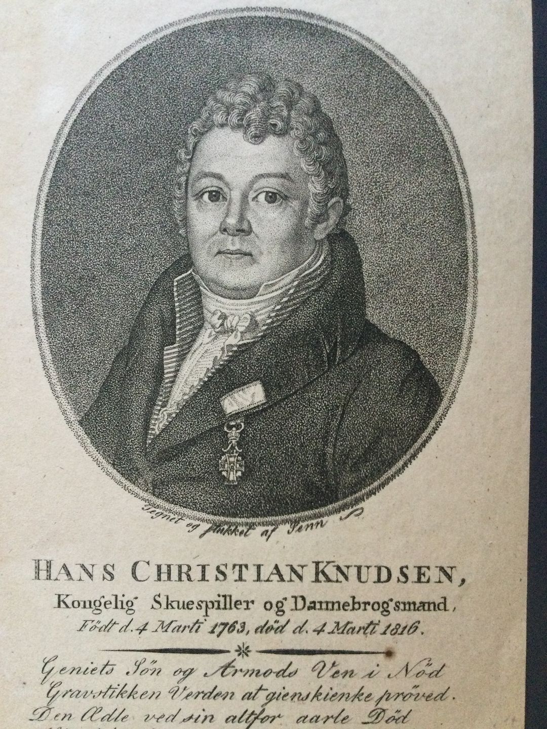 Portræt af Kongelig Skuespiller Christian Knudsen (1763-1816) med Dannebrogsordenen på brystet.