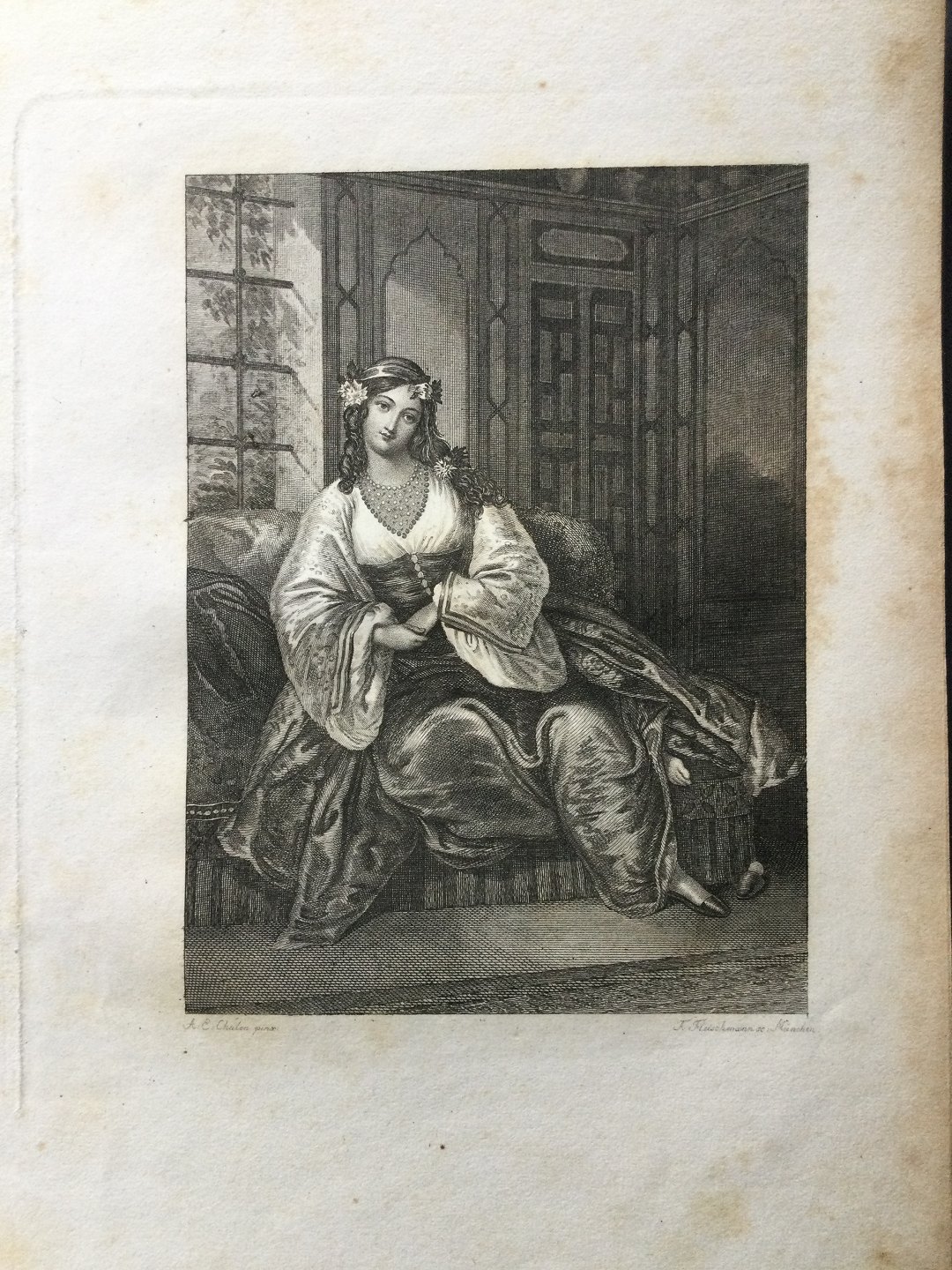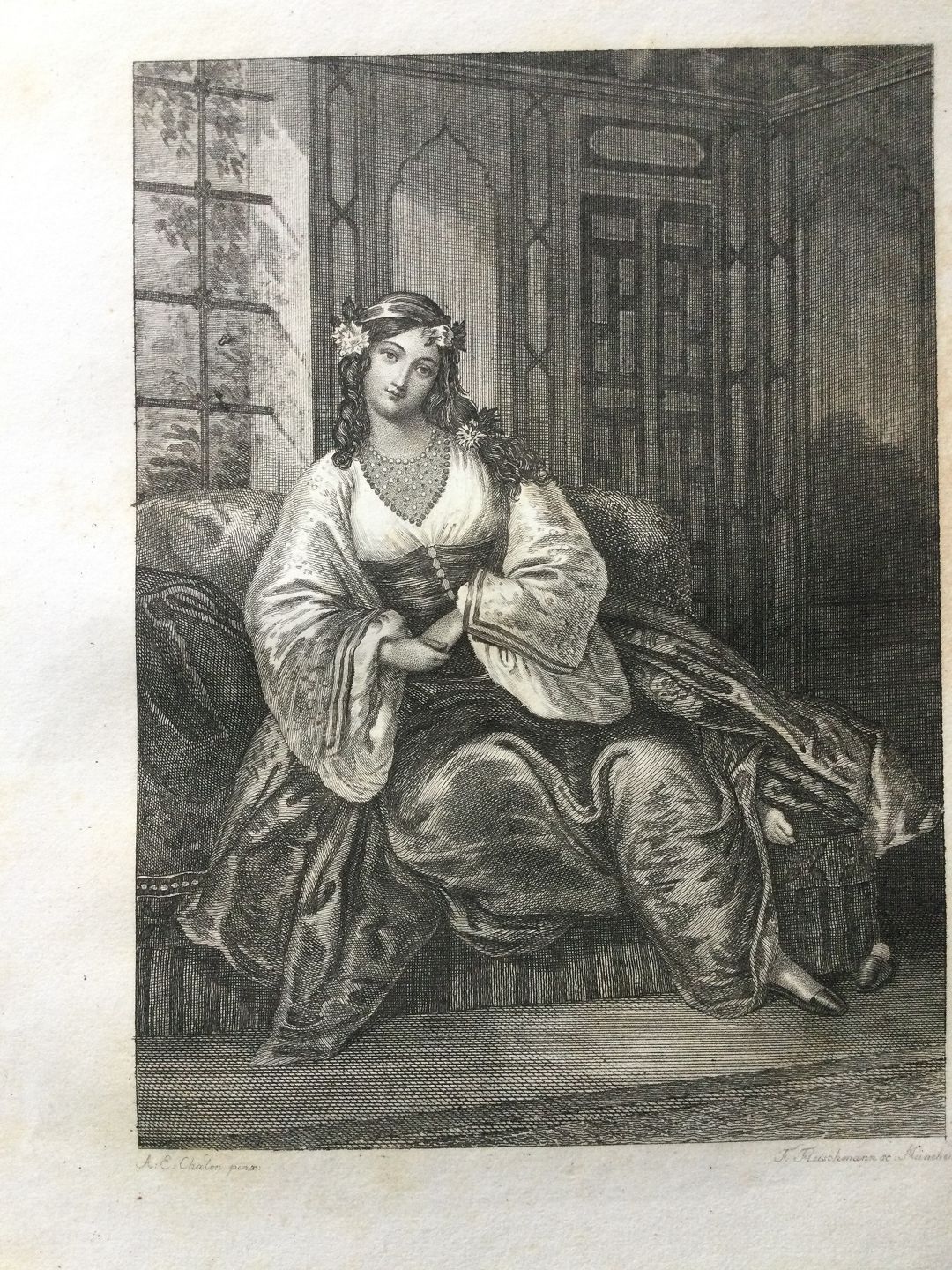 Text available in Danish: Stålstik af Friedrich Fleismann - Pigen fra Athen, Teresa Marki 1835.