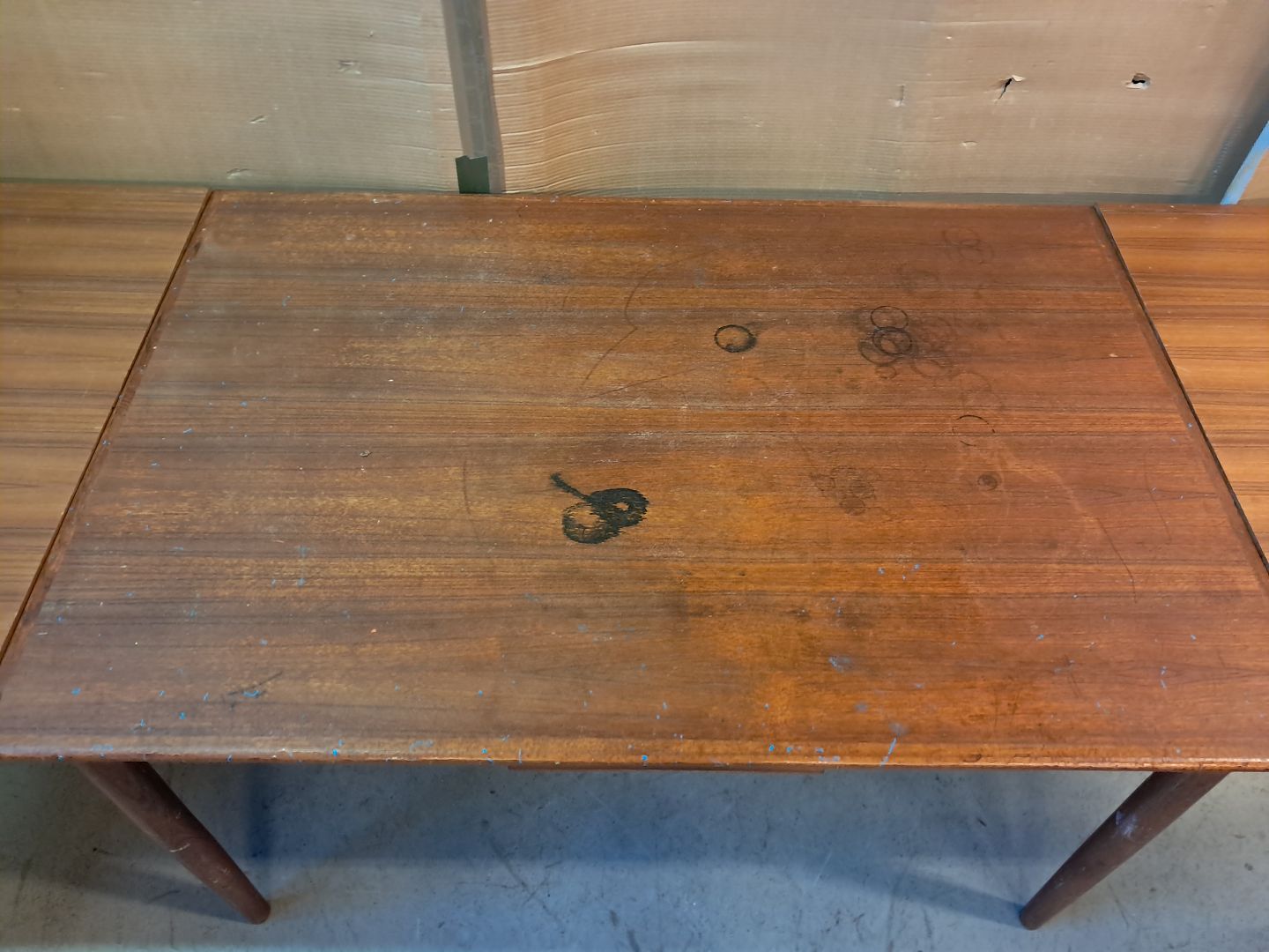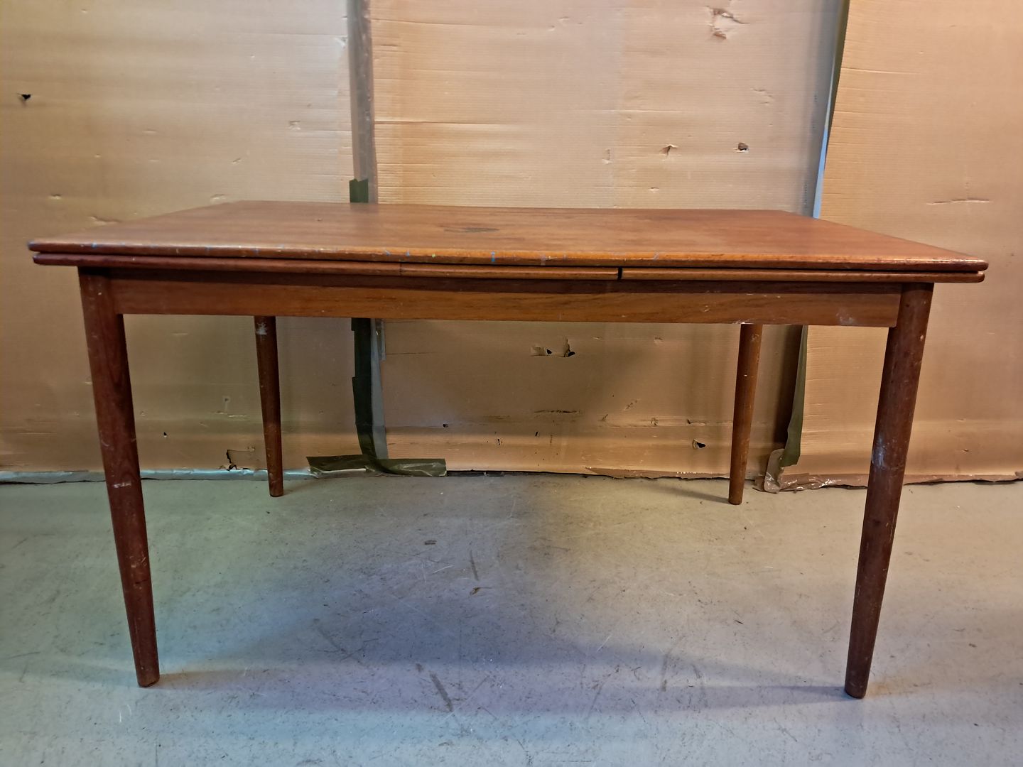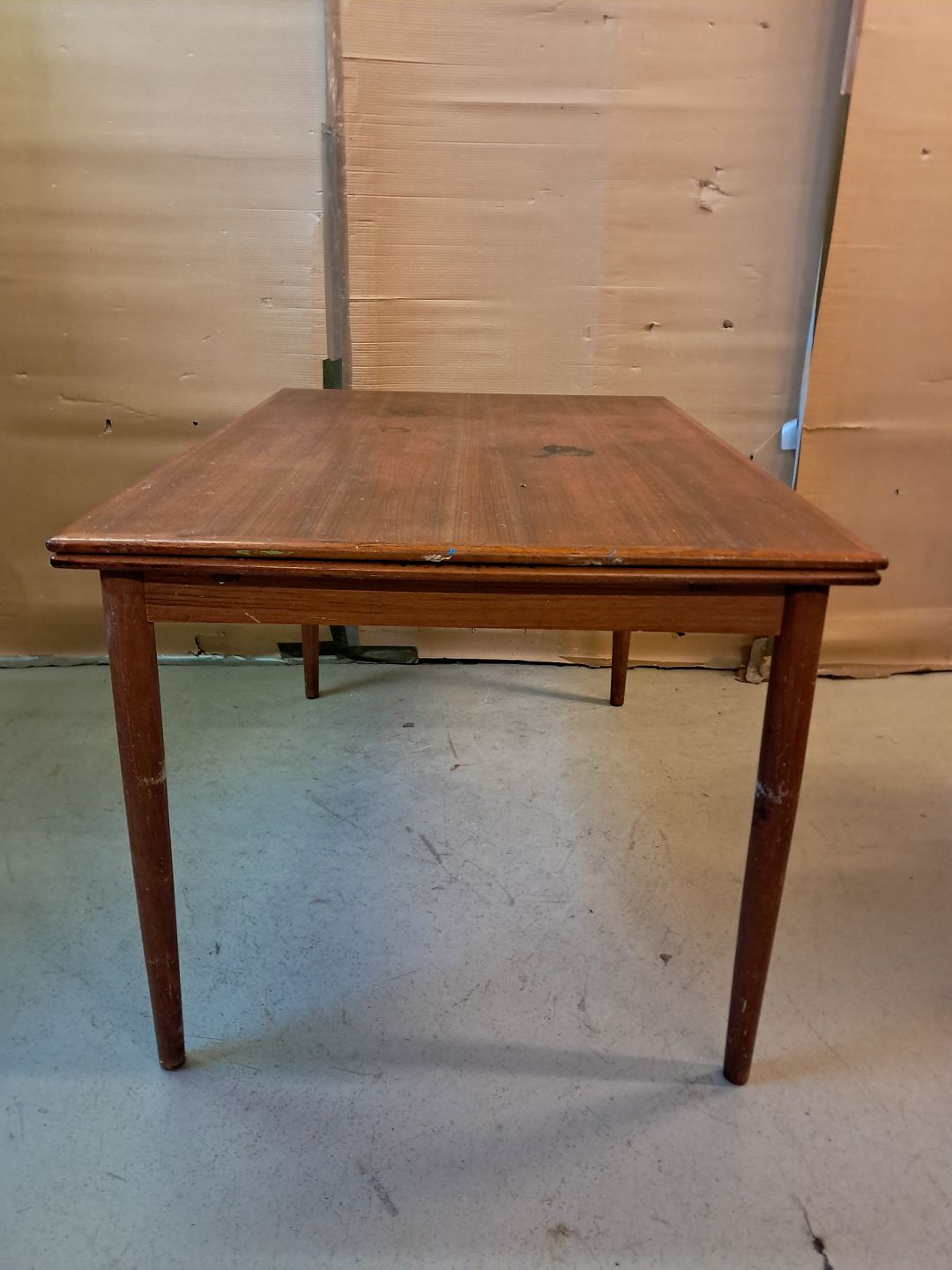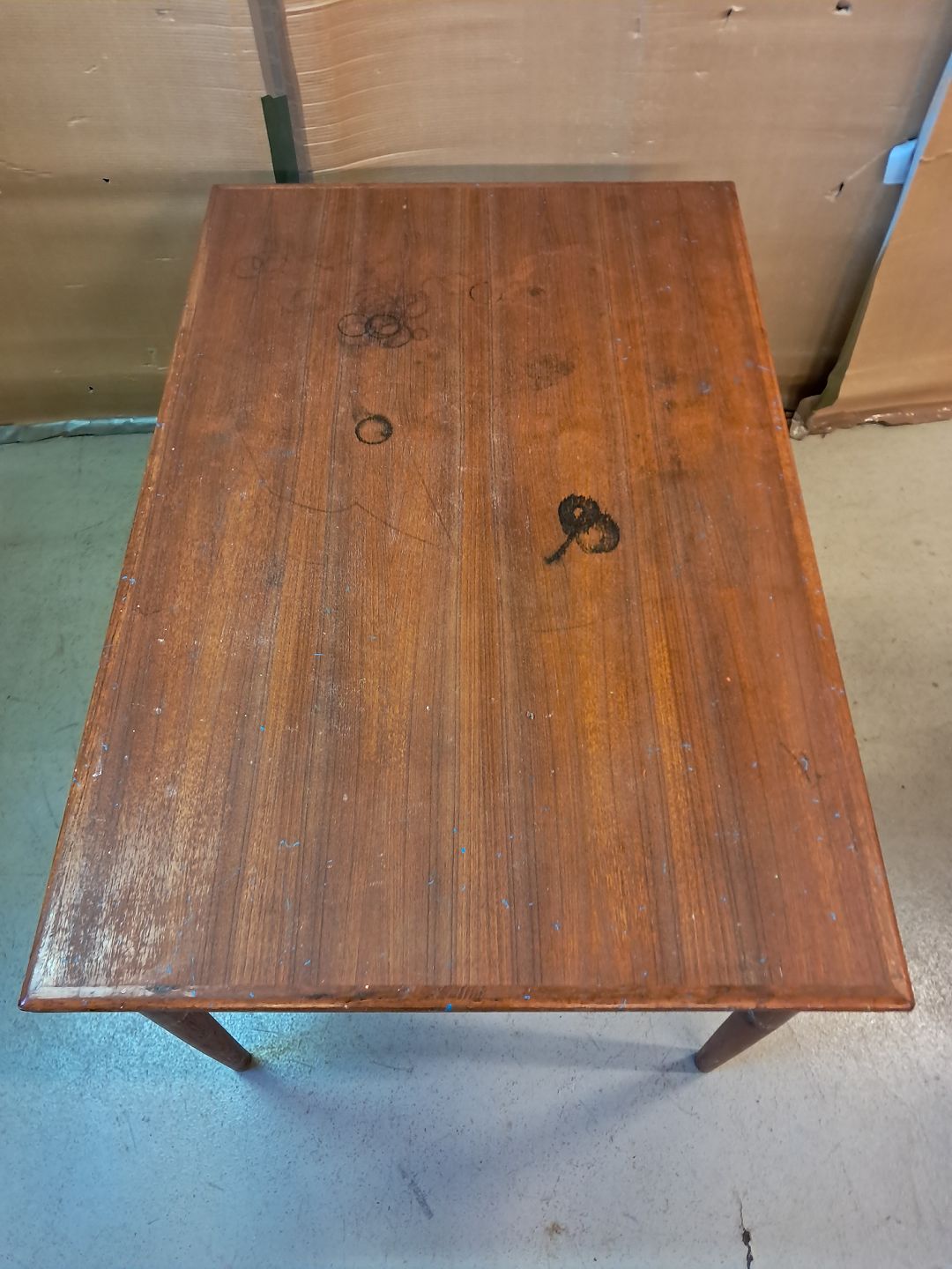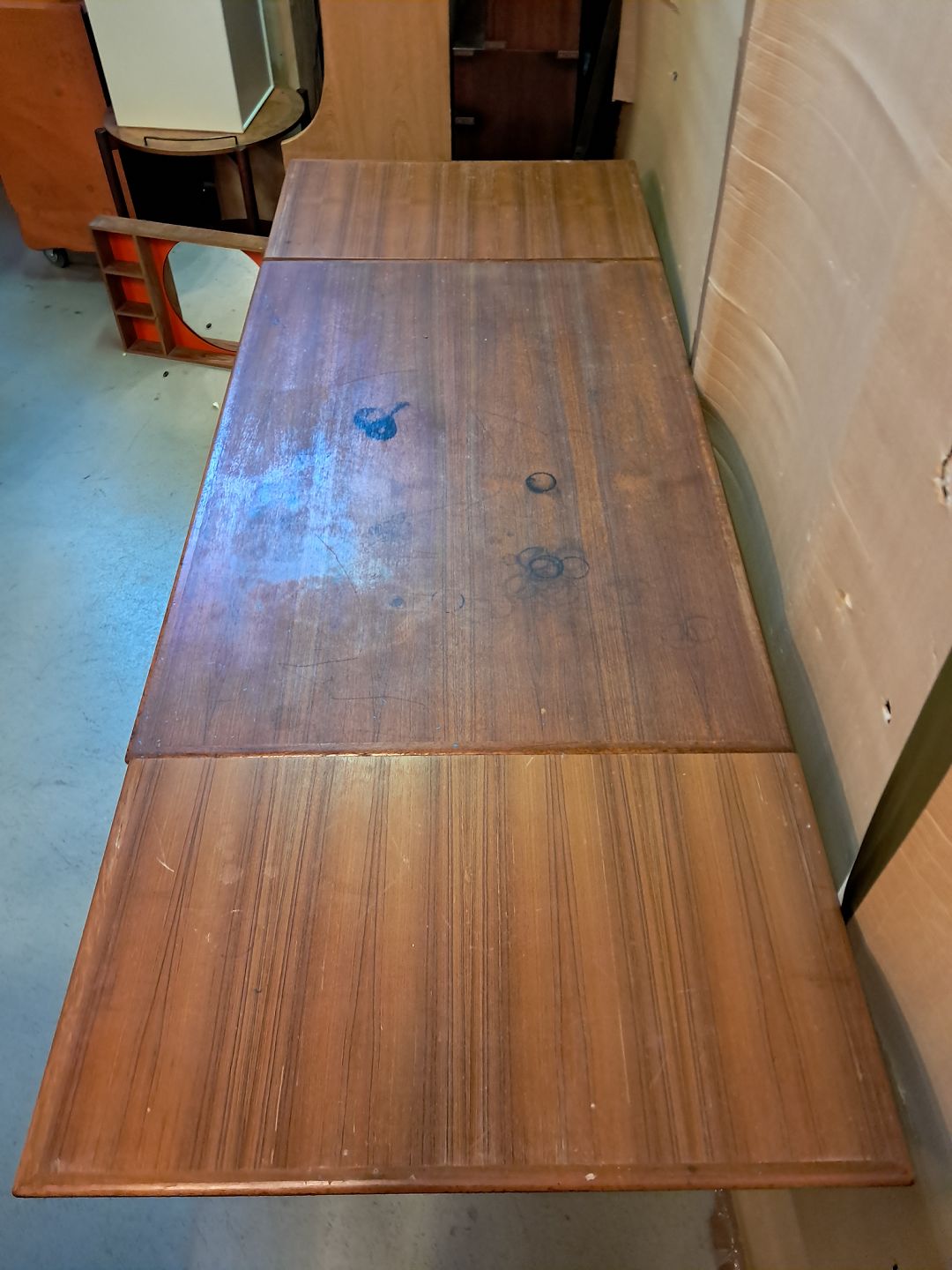 Bord i fineret teaktræ med hollandskudtræk, fra 1960erne.