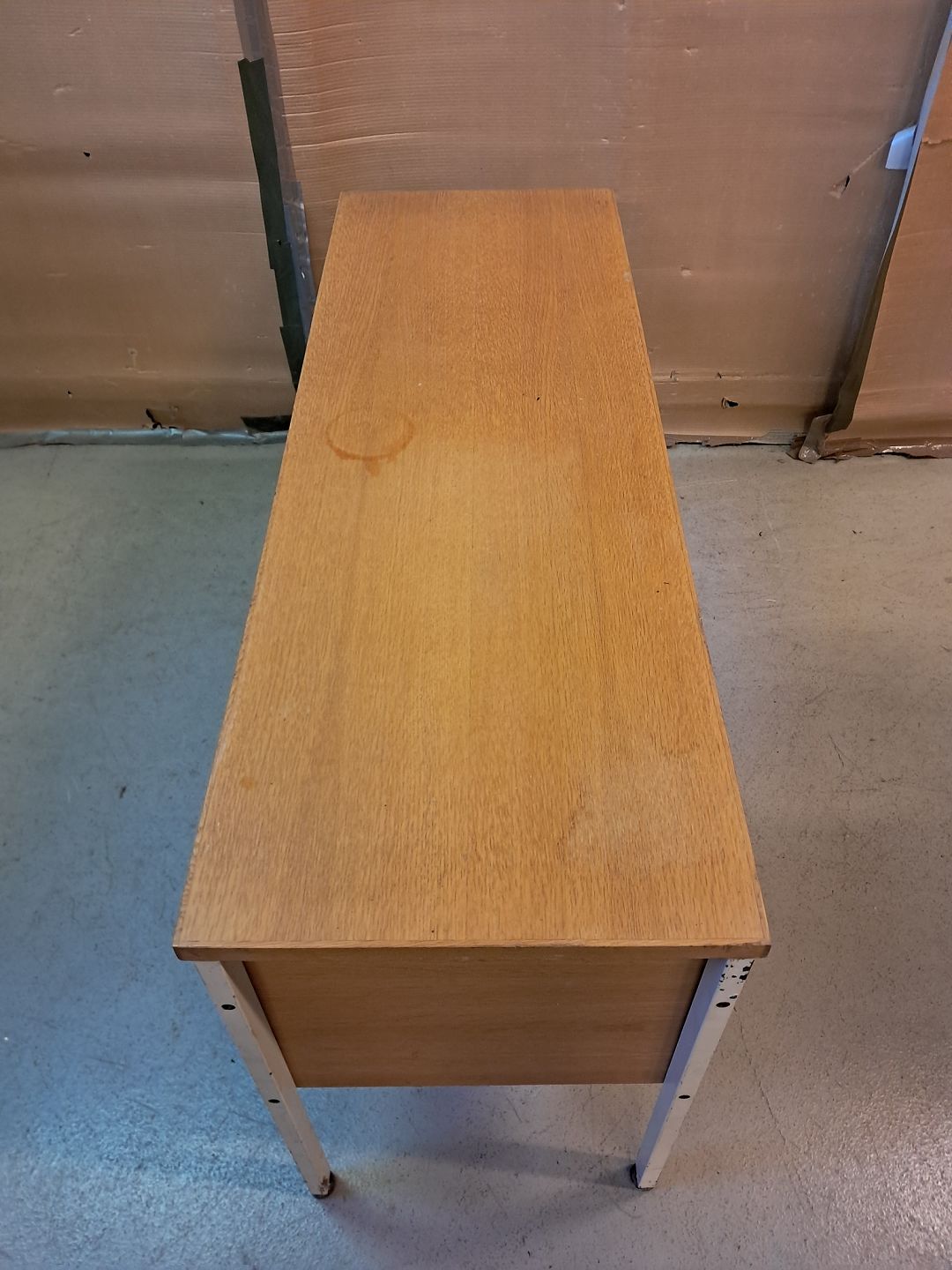 Skrivebord i metal og fineret egetræ, fra 1990erne.