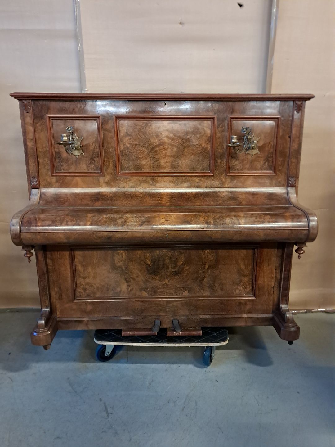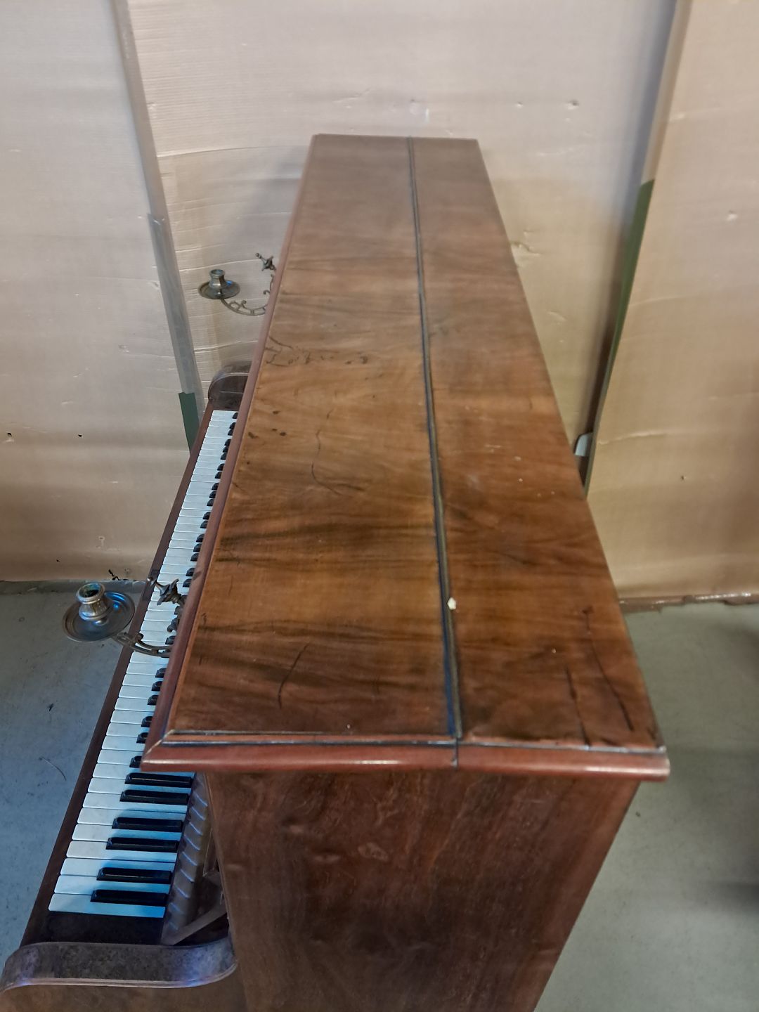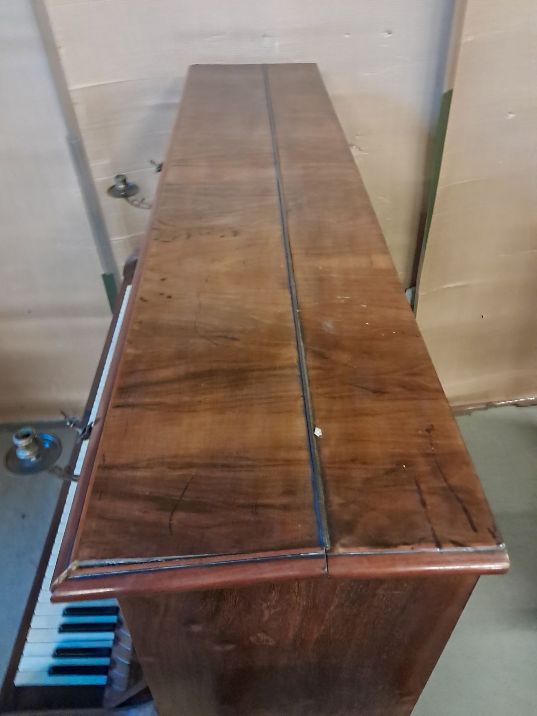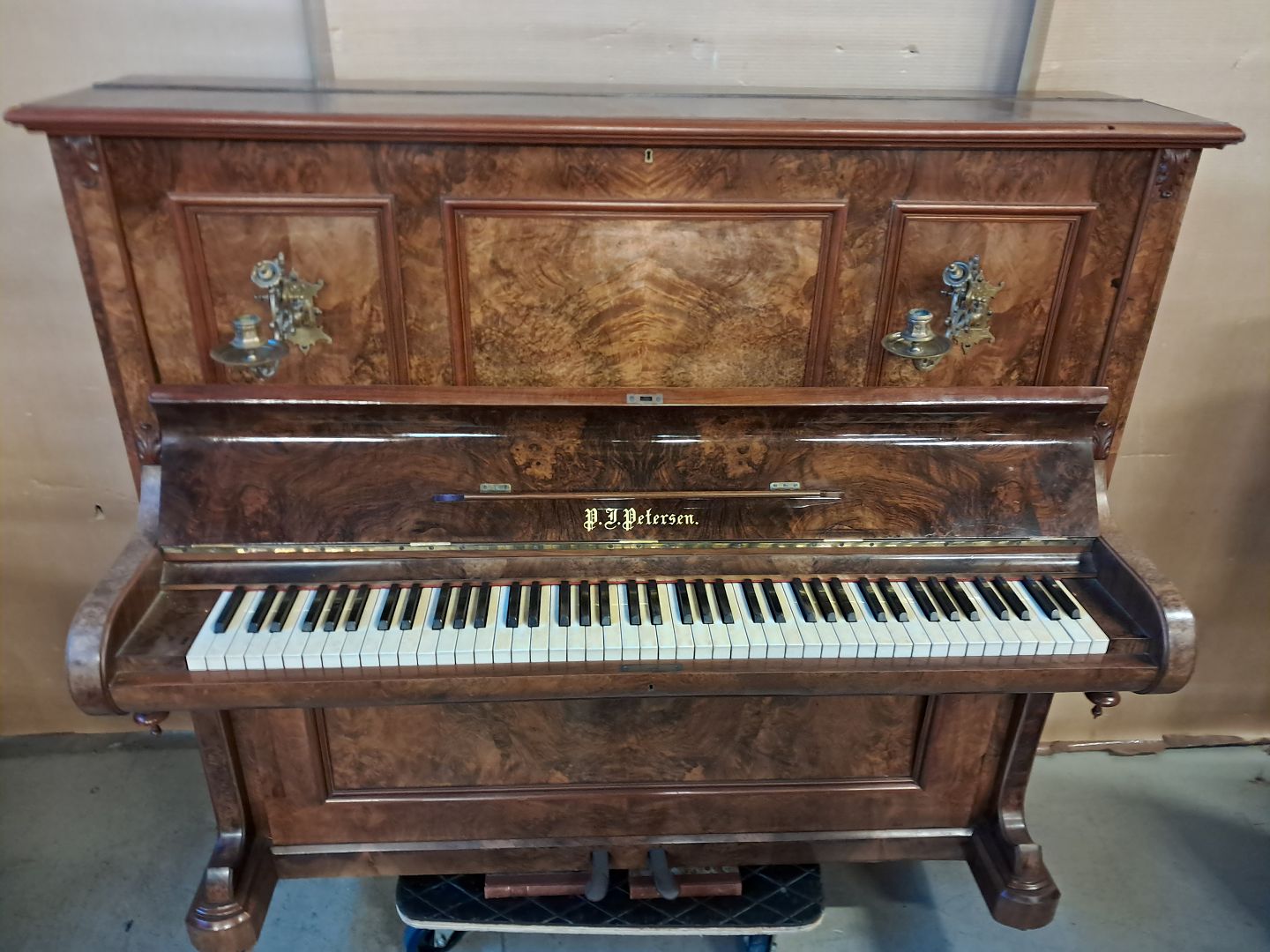 P. J. Petersen klaver i fineret mahogni, fra 1910erne.