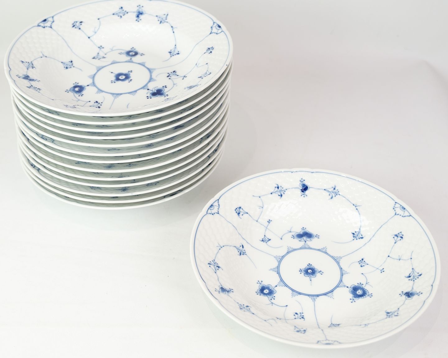 Deep Plate No. 22 from Bing & Grondahl. Made of porcelain with classic blue painted blue fluting decoration.
