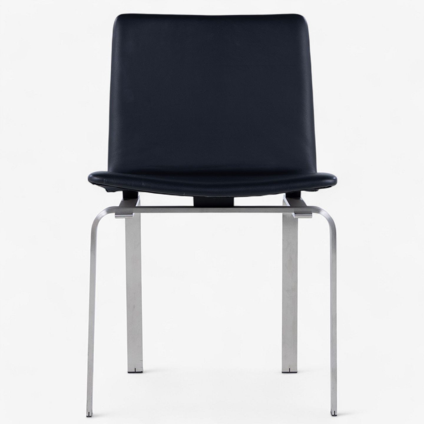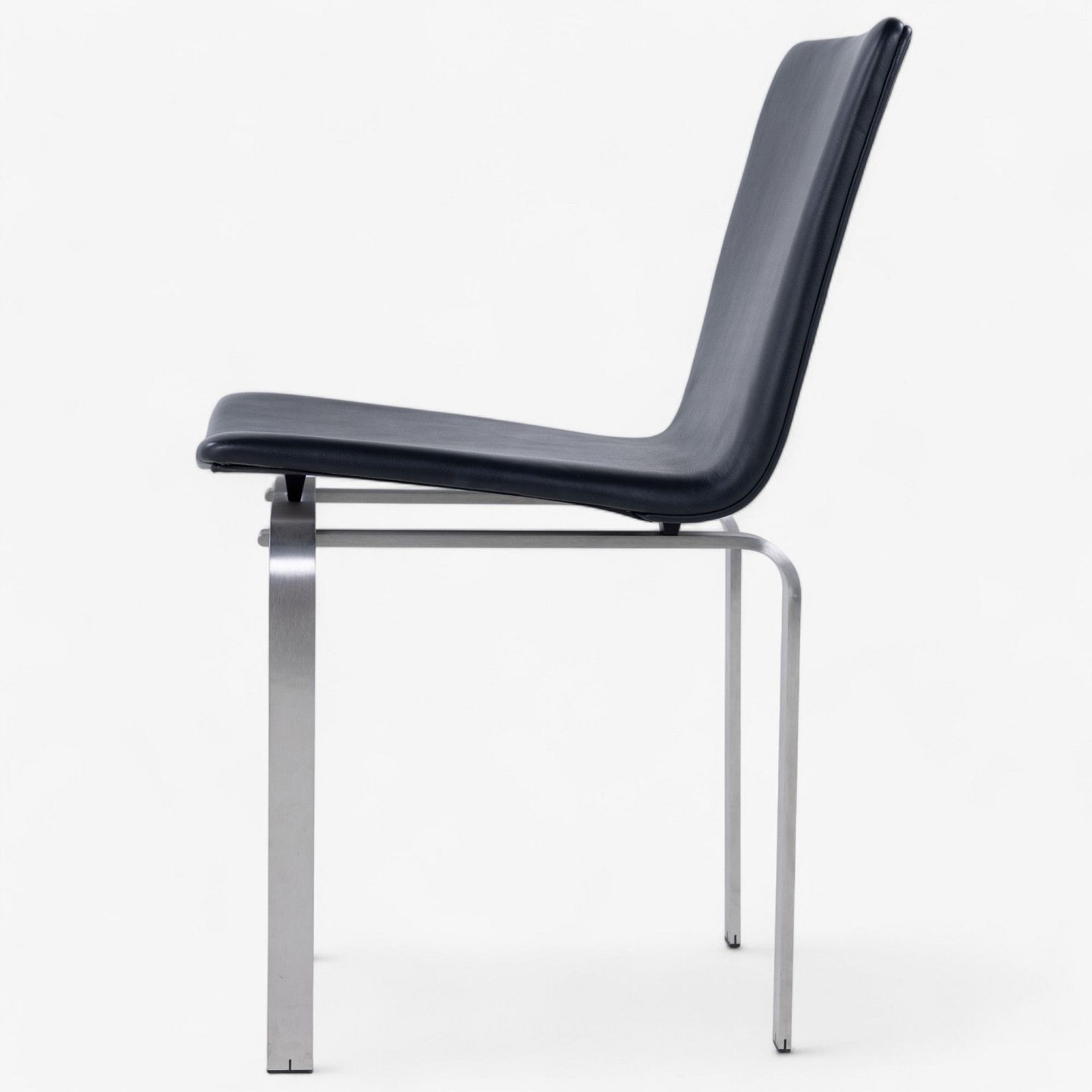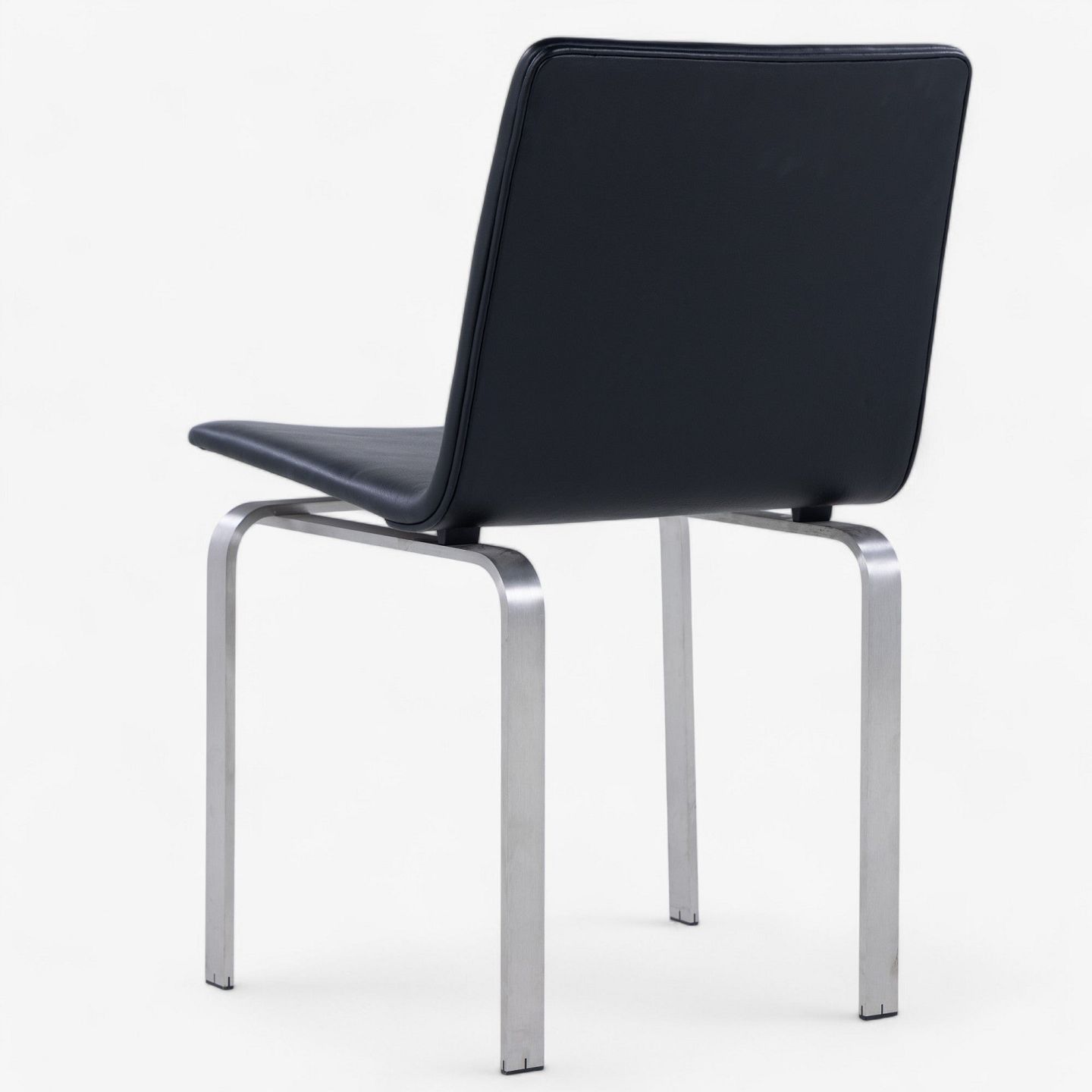 JH 3 - Dining chair with frame in steel and seat in black aniline leather.