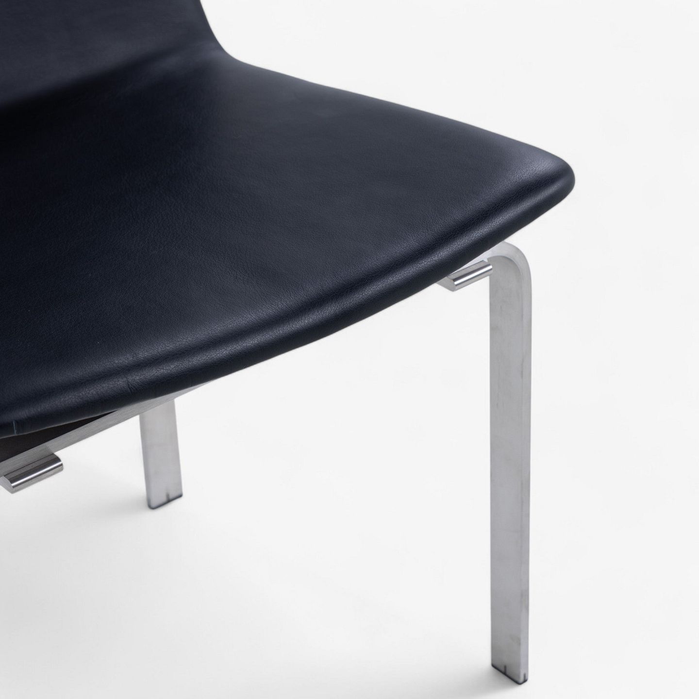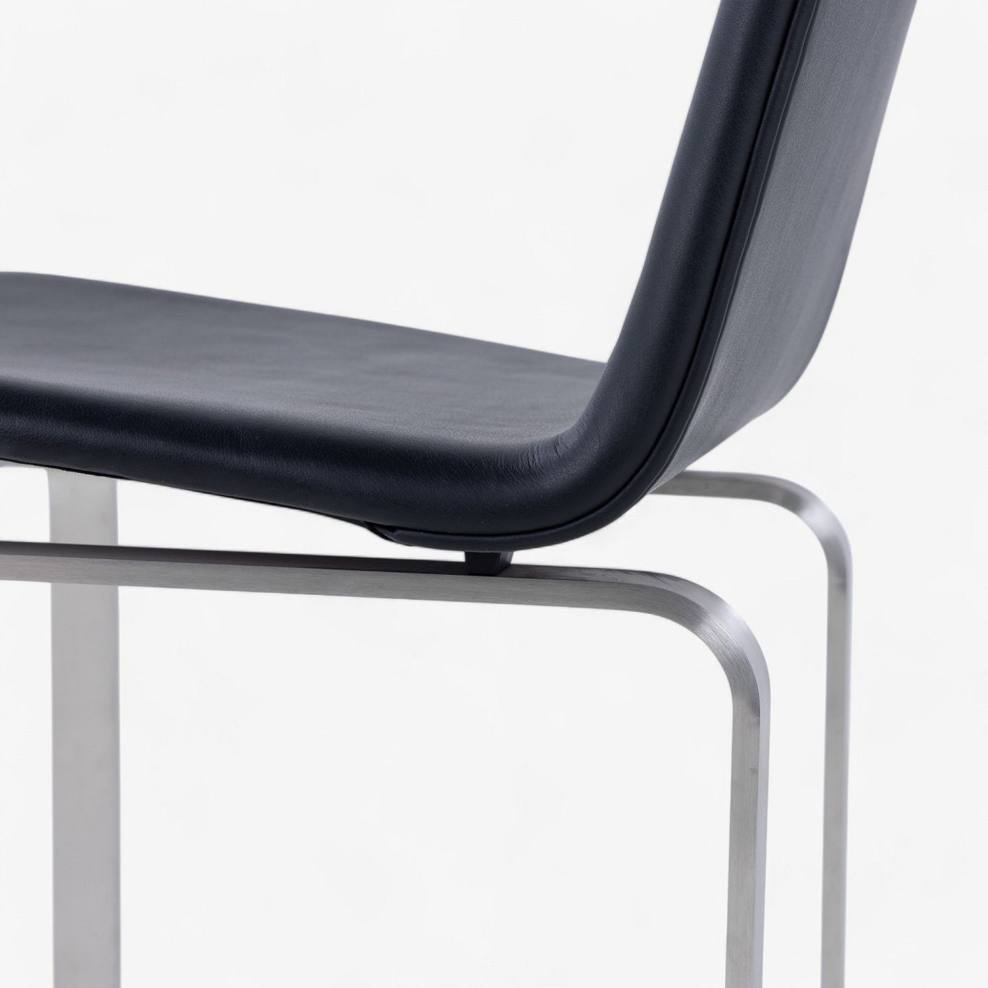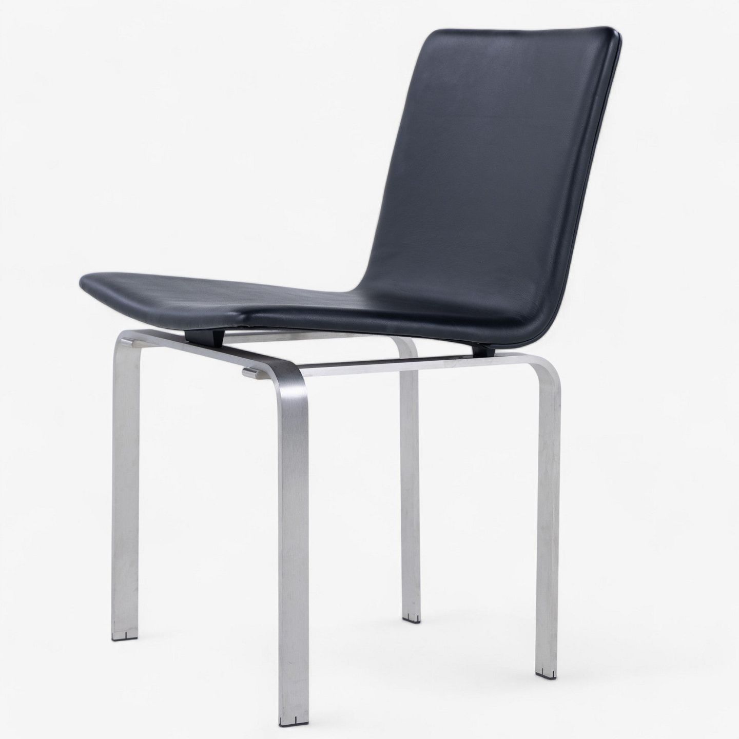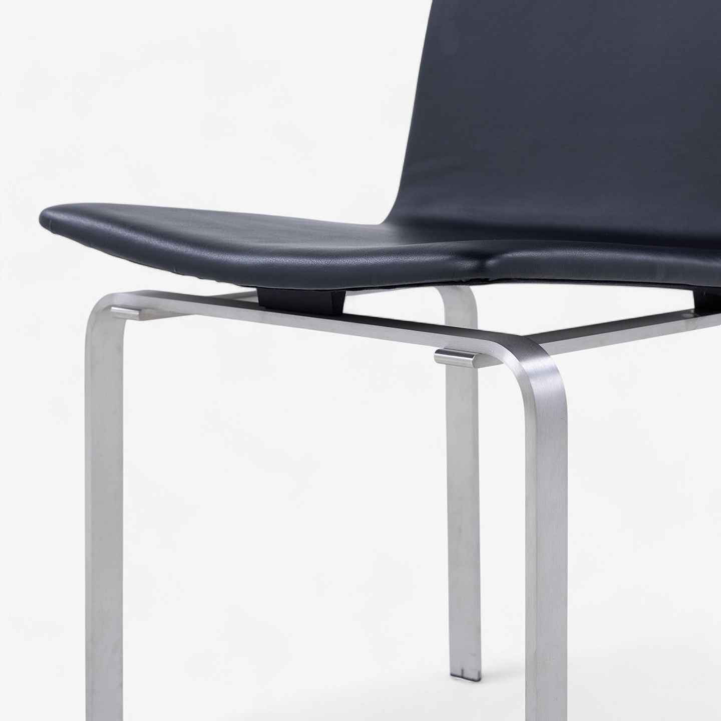 JH 3 - Dining chair with frame in steel and seat in black aniline leather.