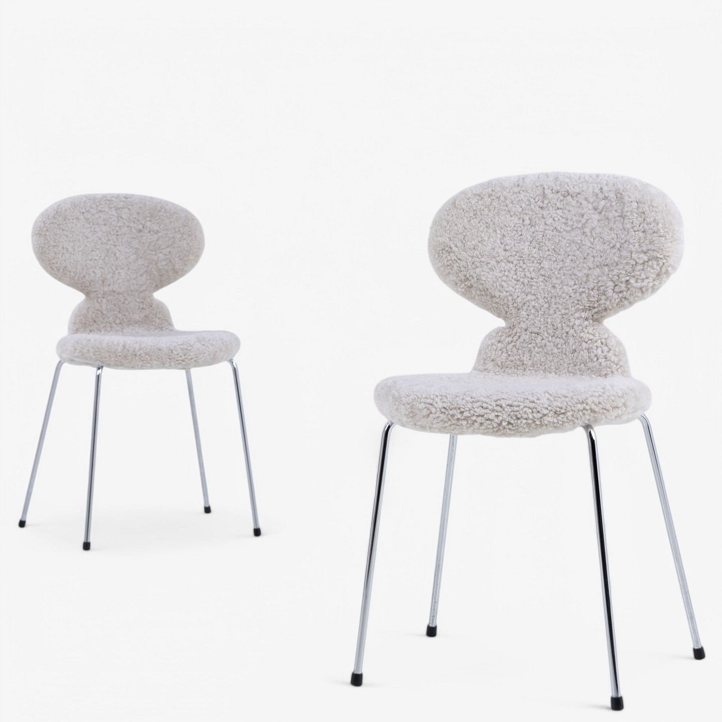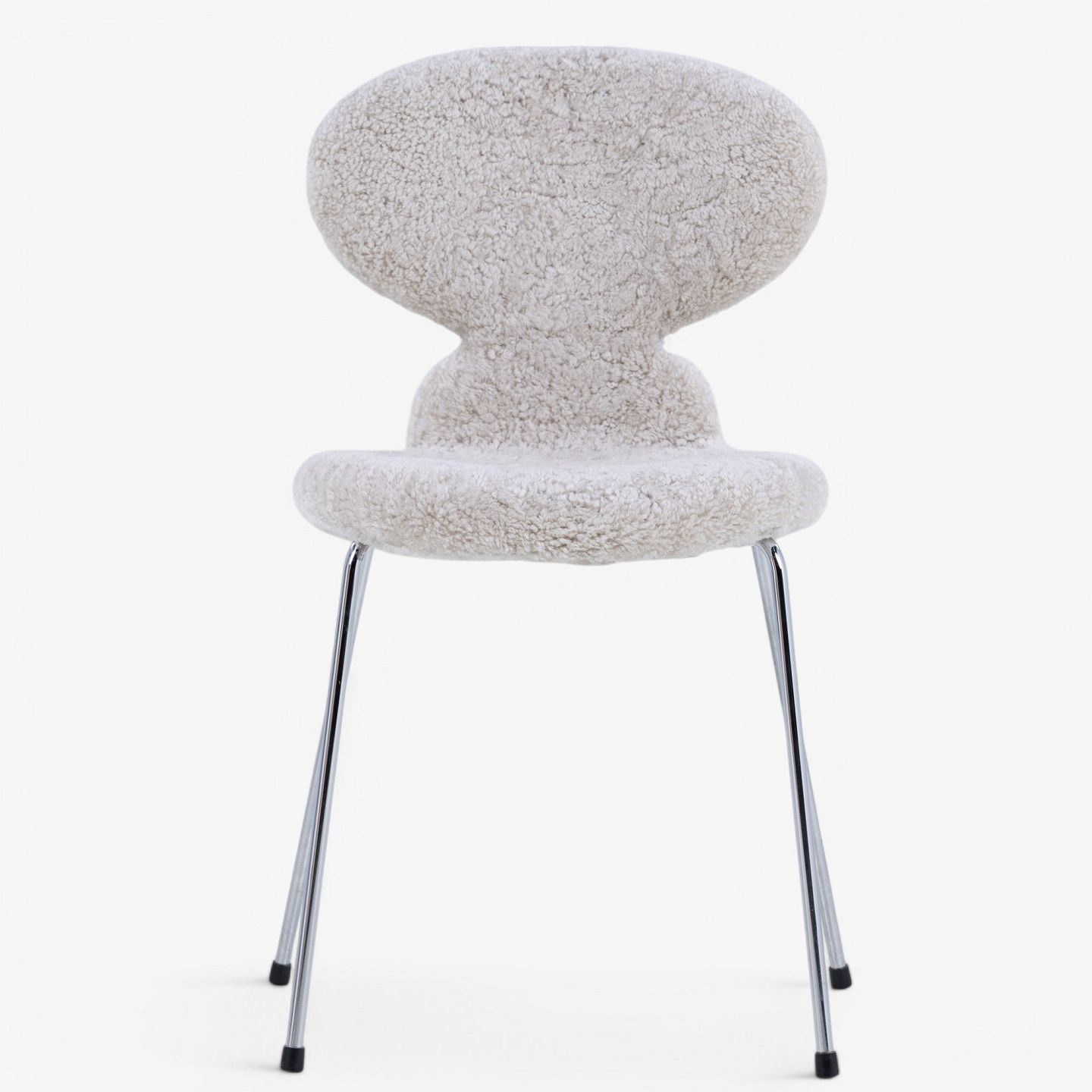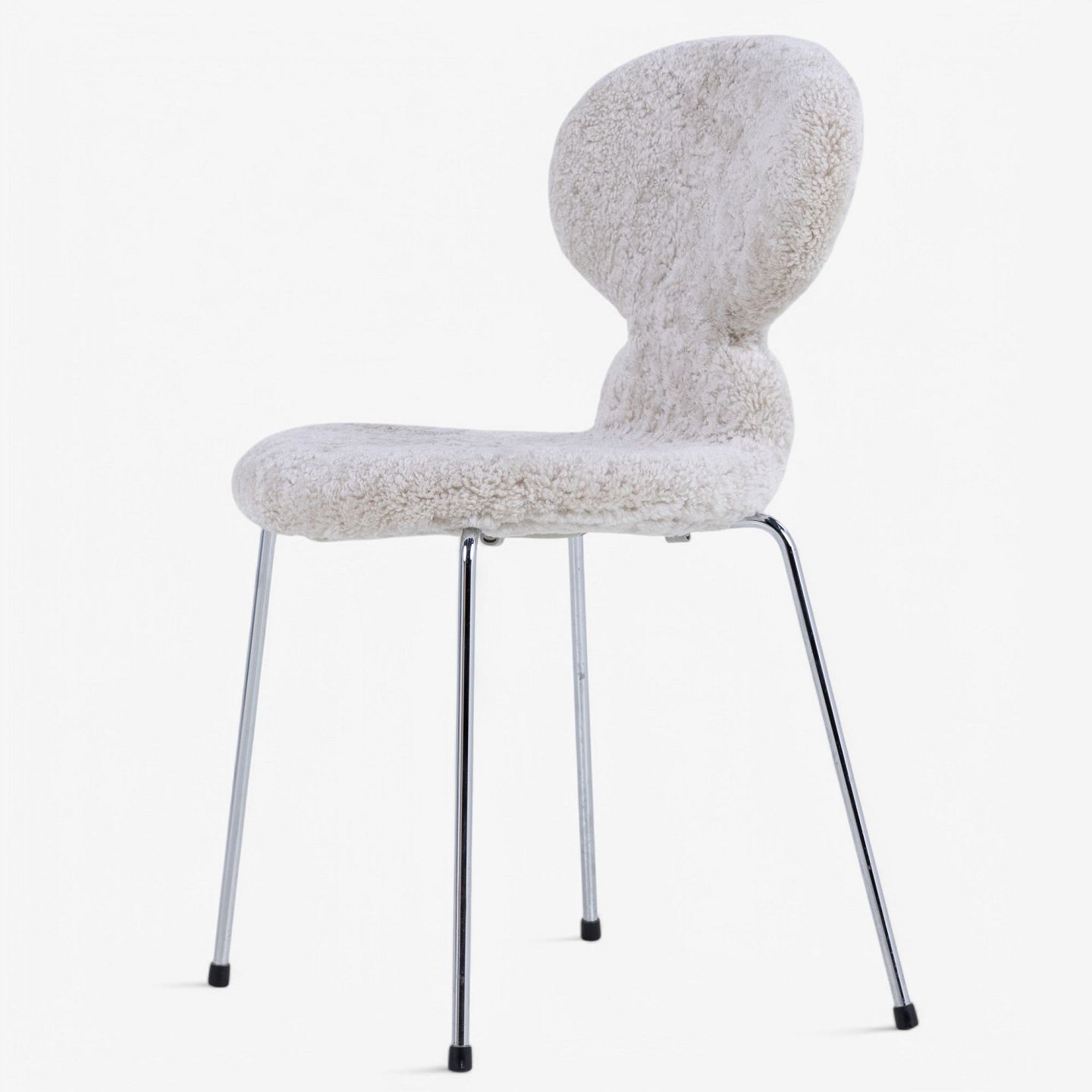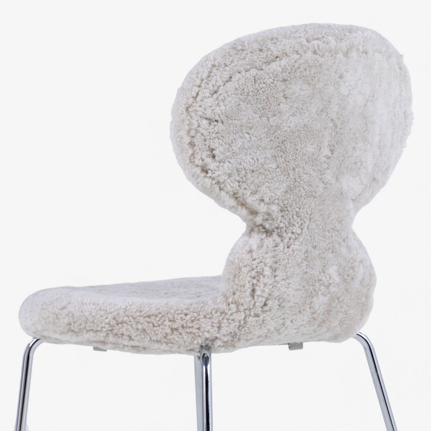 AJ 3100 - Fuldpolstret 'Myren'-stol i lammeskind (farve: Moonlight). Stemplet fra producent.