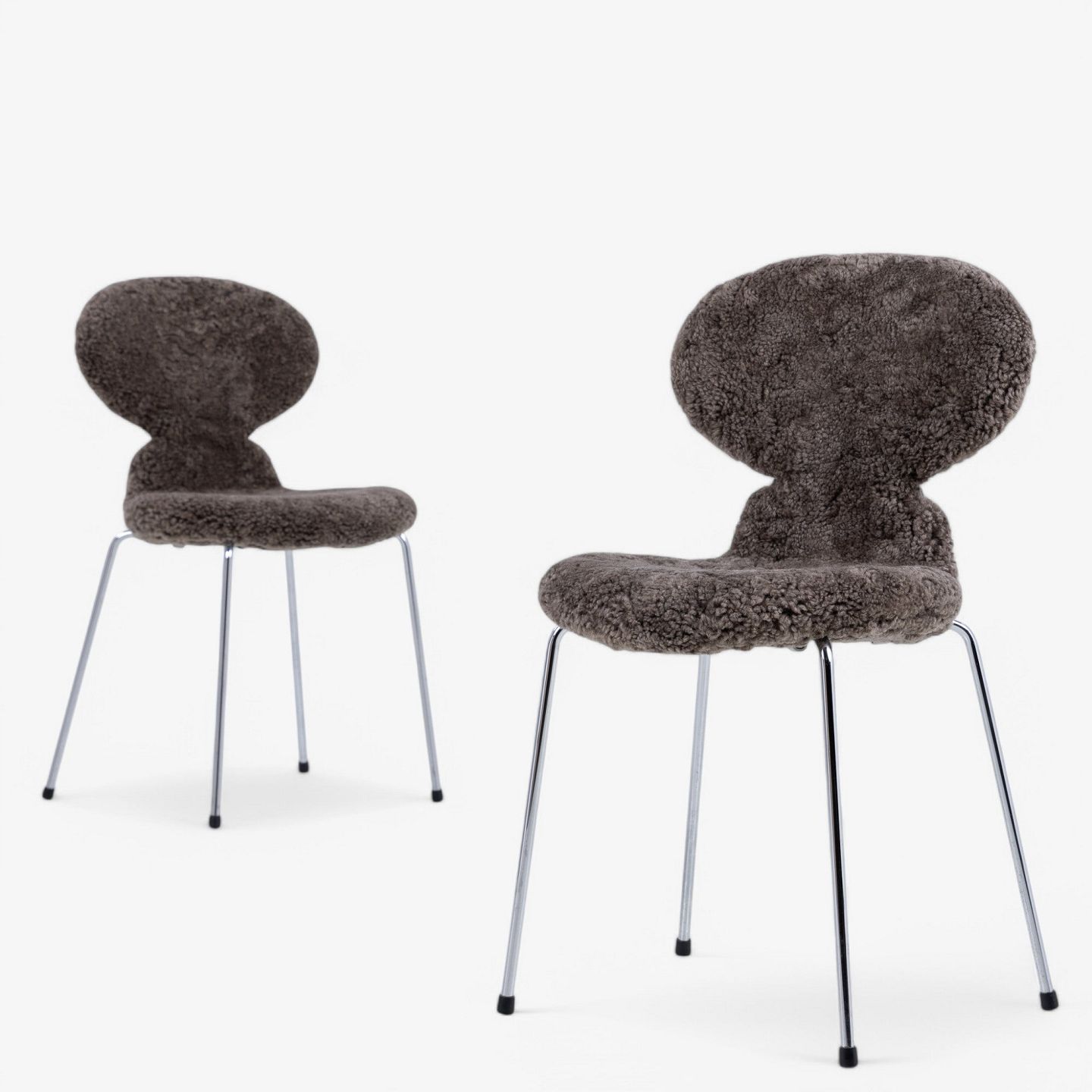 AJ 3100 - Fuldpolstret 'Myren'-stol i lammeskind fra Skandilock (farve: Sahara).