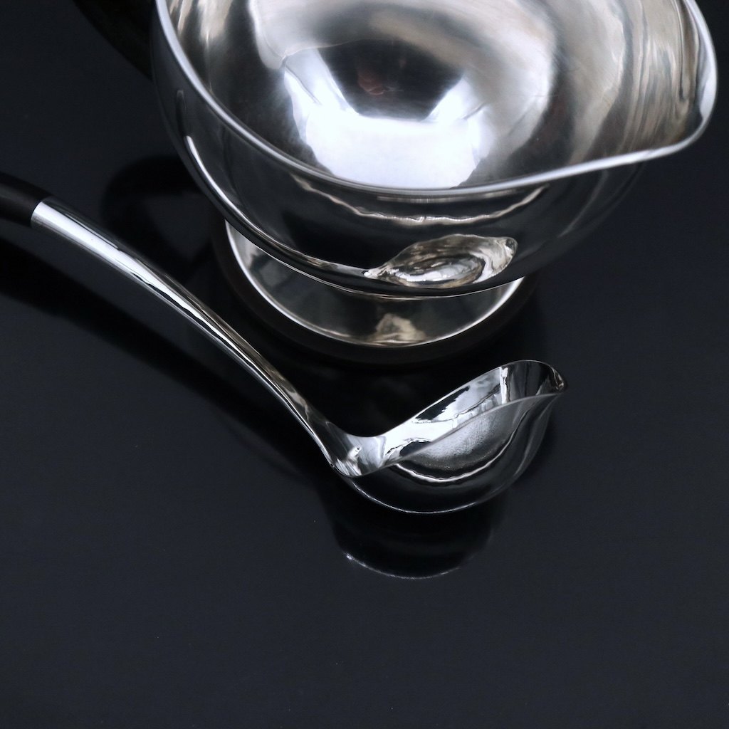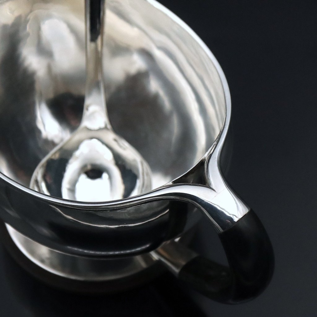 Aage Weimar. Art deco saucekande i sterling sølv med tilhørende ske.