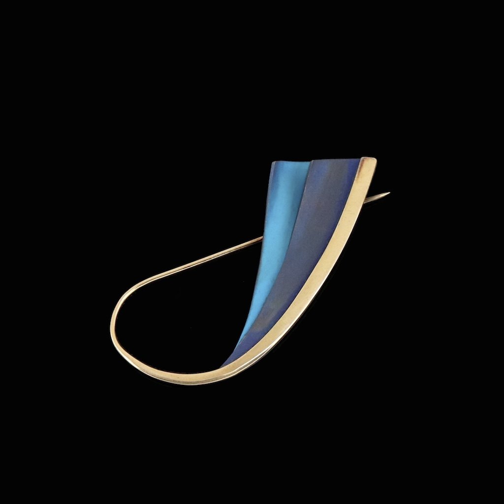 Kirsten Pontoppidan. Broche i18k guld med farveoxideret titanium.