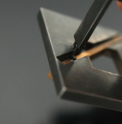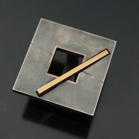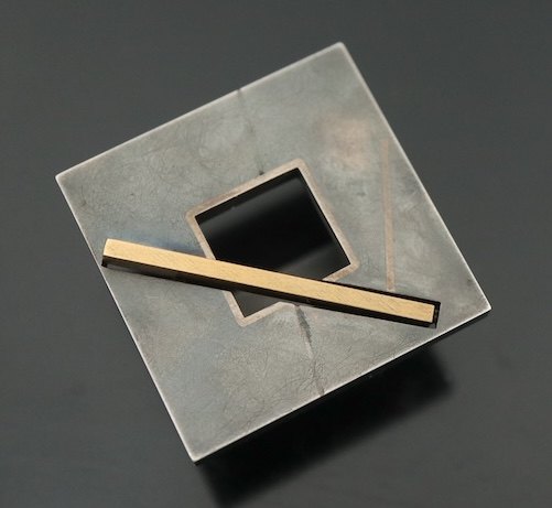 Jens Eliasen. Ring i oxideret sterling sølv med 18k guld - 1987.