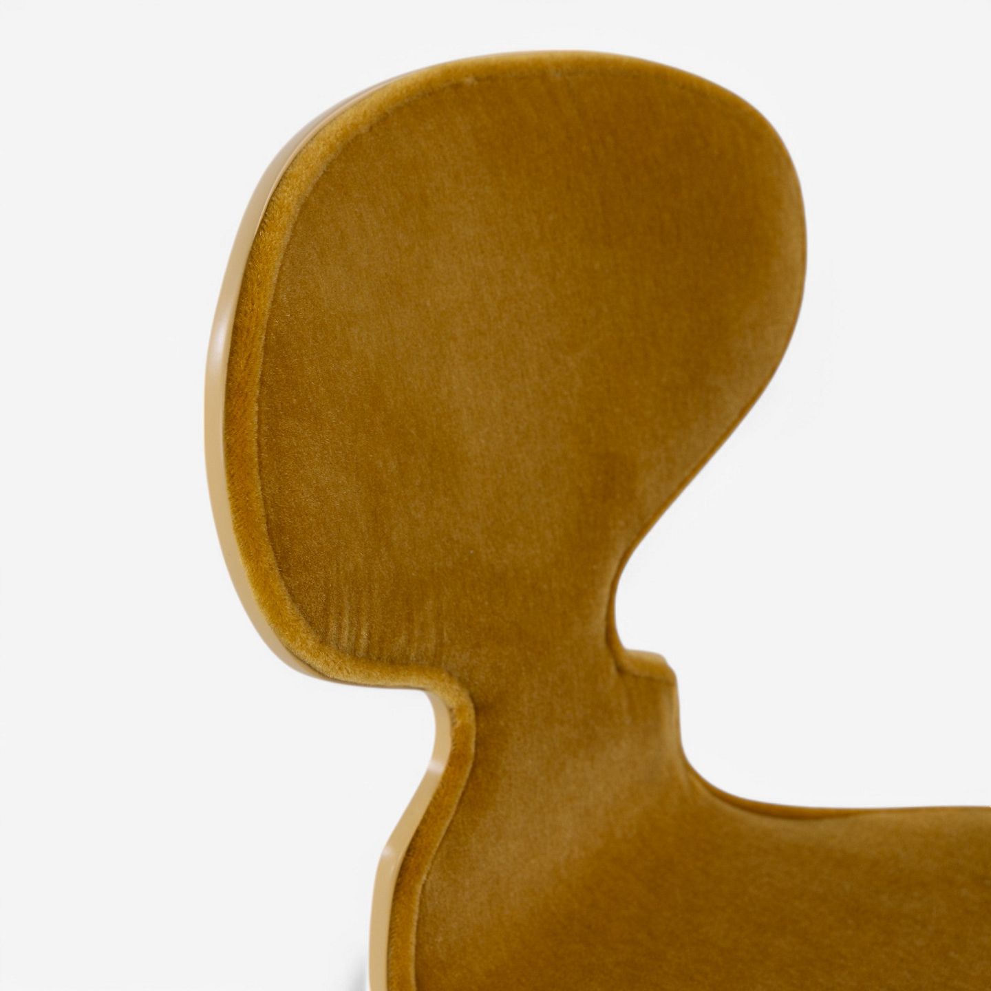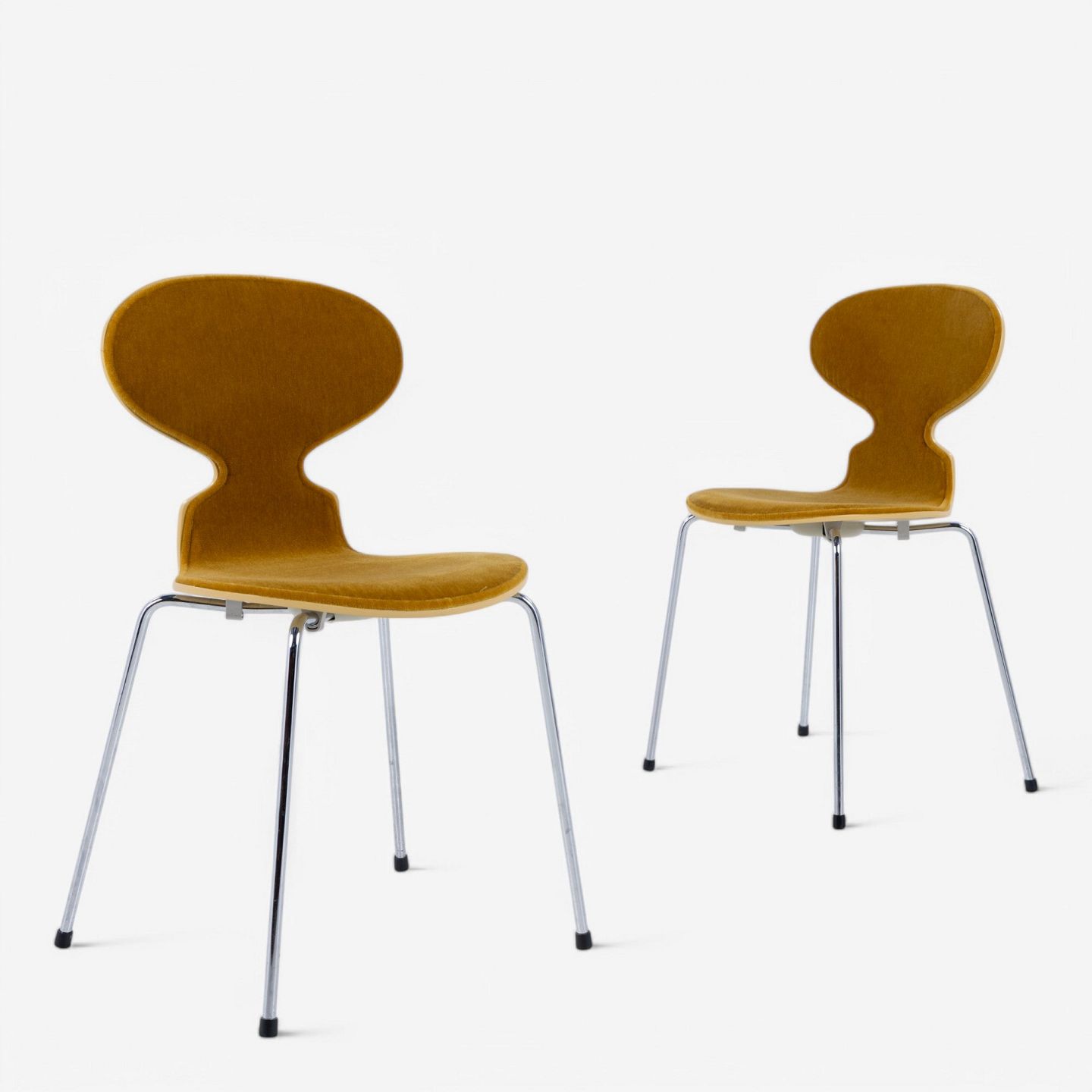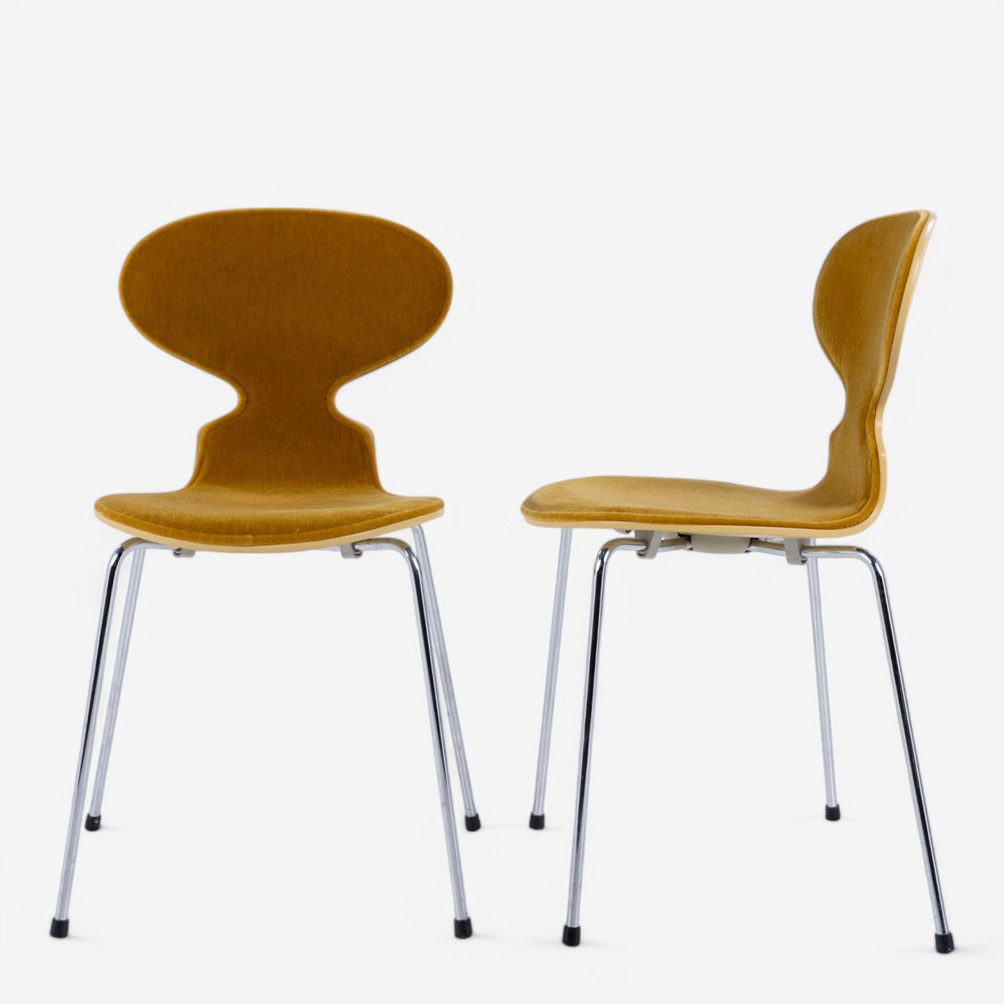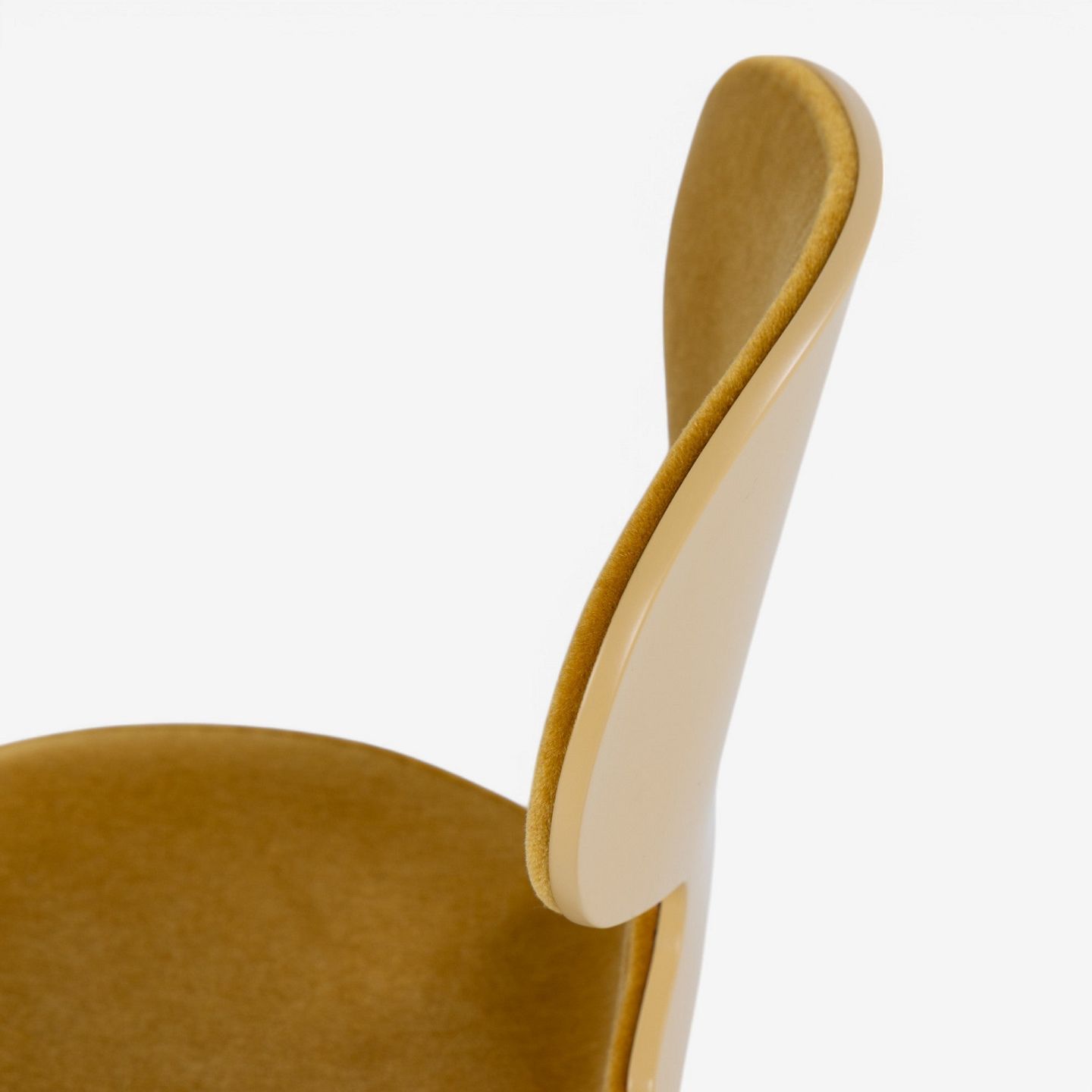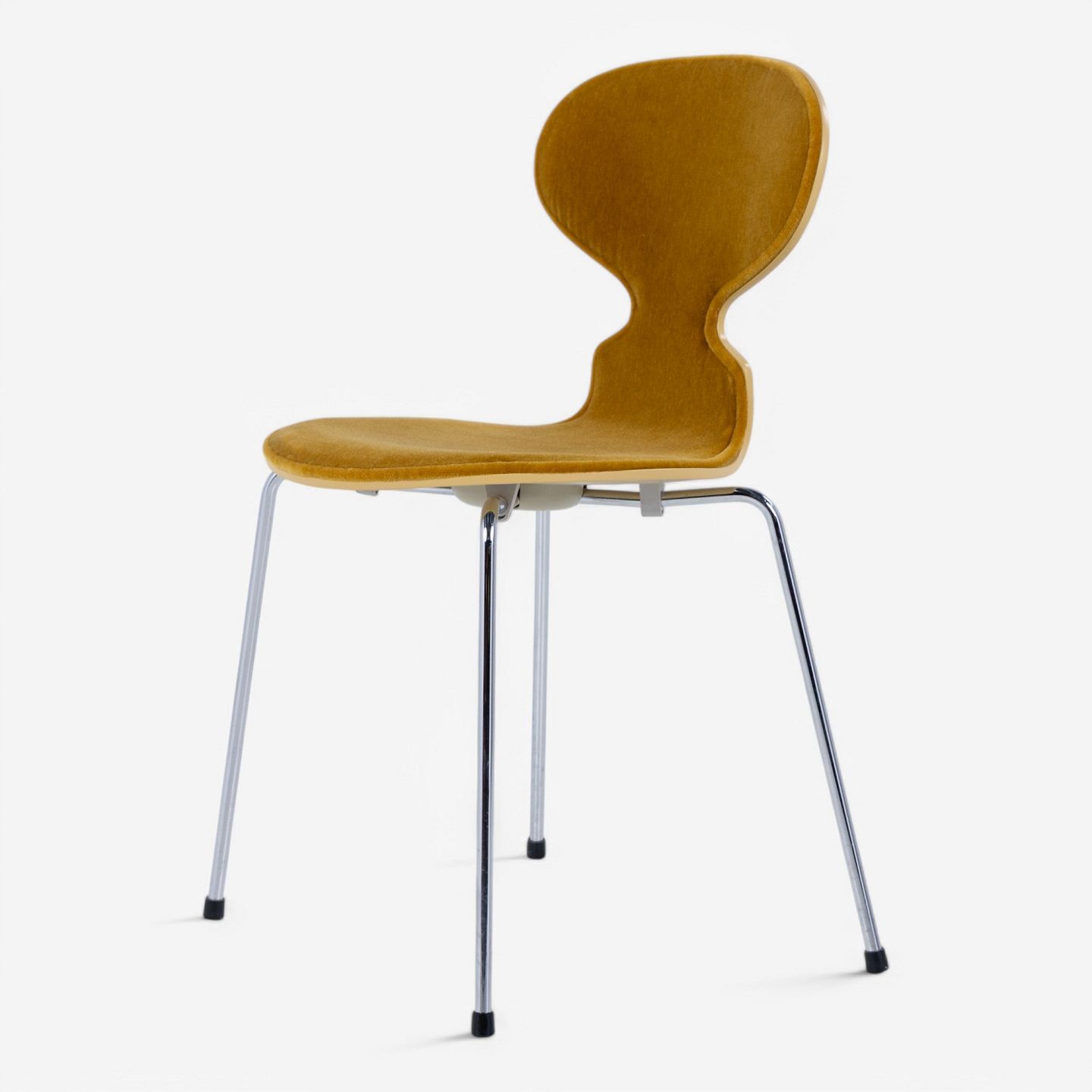 AJ 3100 - 'Myrestol' lakeret i 'RAL 1002' og forsidepolstret i 'Byram 471'-stof.