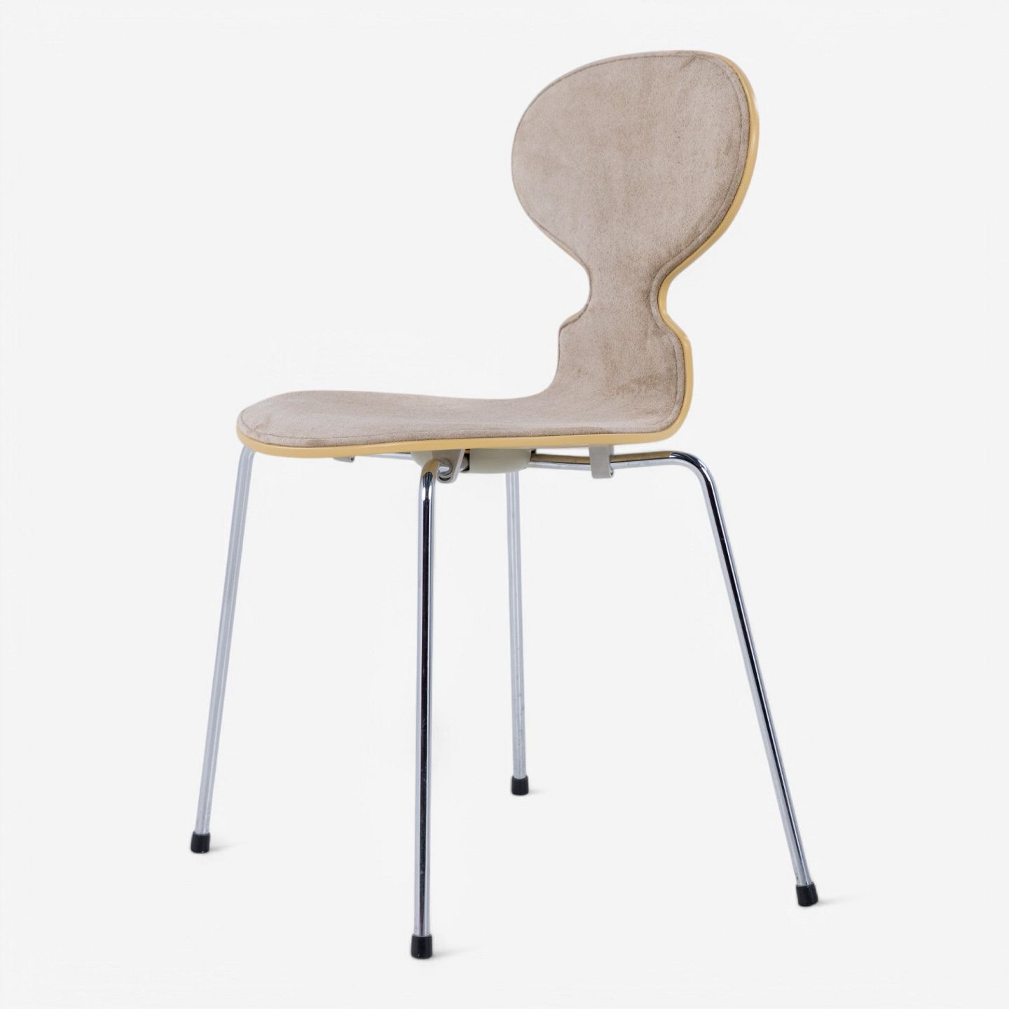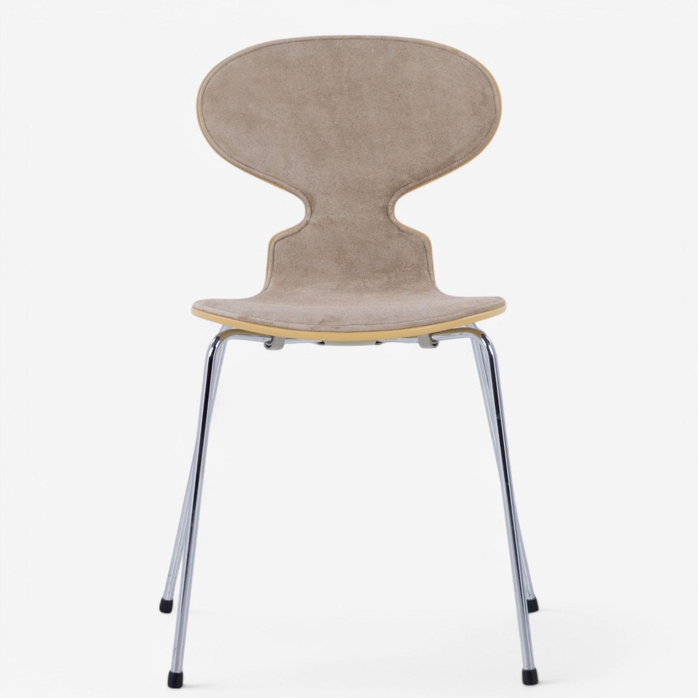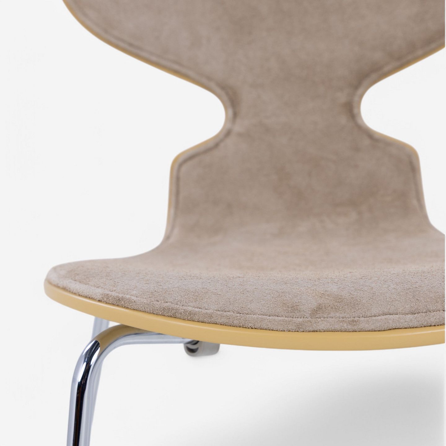 AJ 3100 - 'Ant chair' lacquered in 'RAL 1002' and front upholstered in 'Duet Gold' suede.