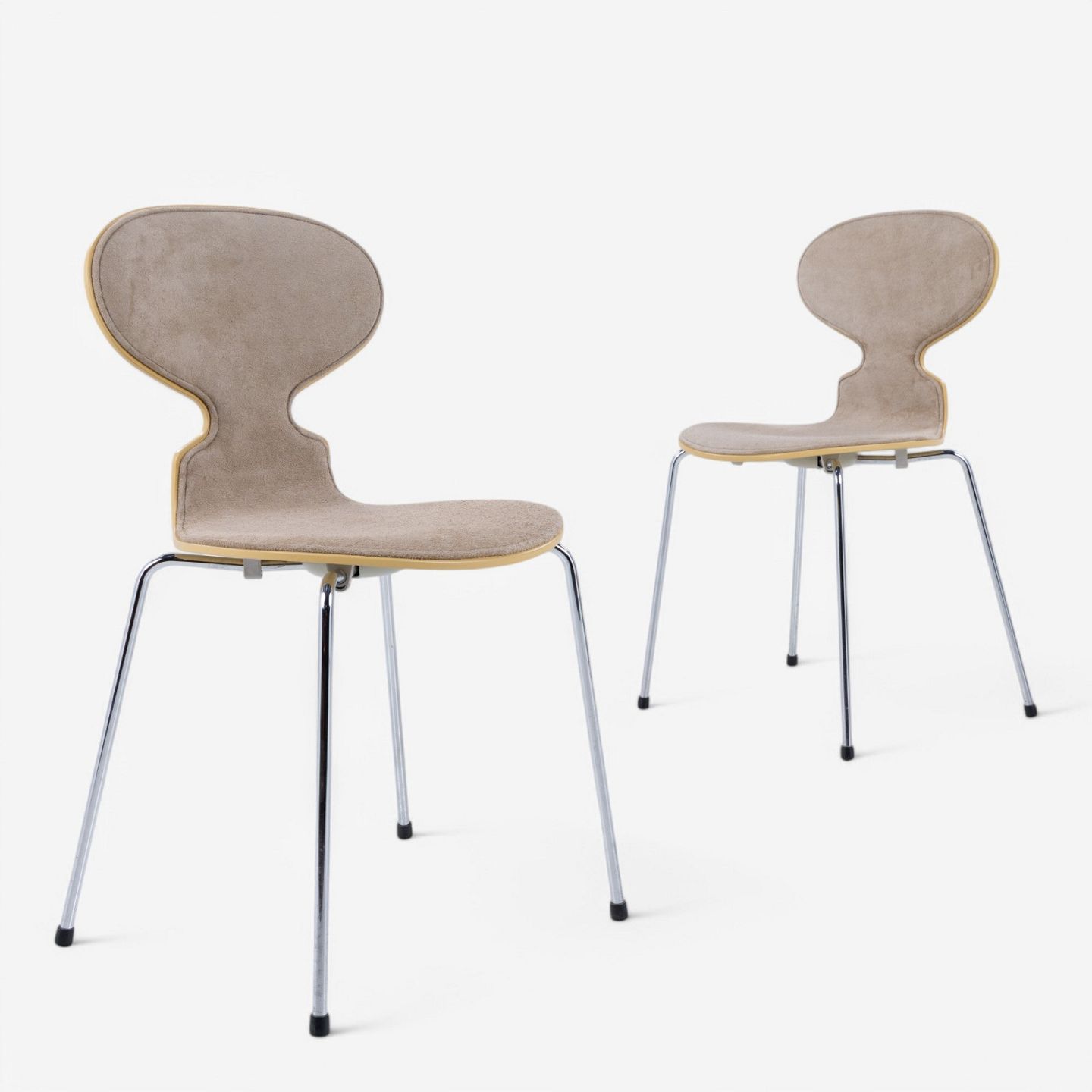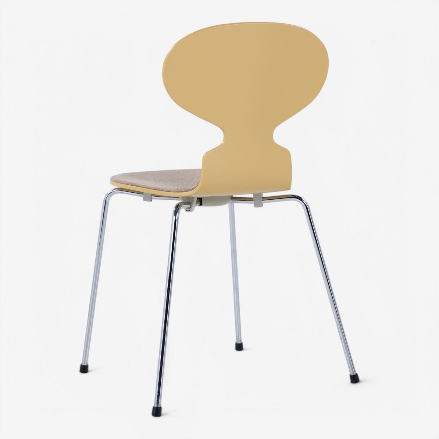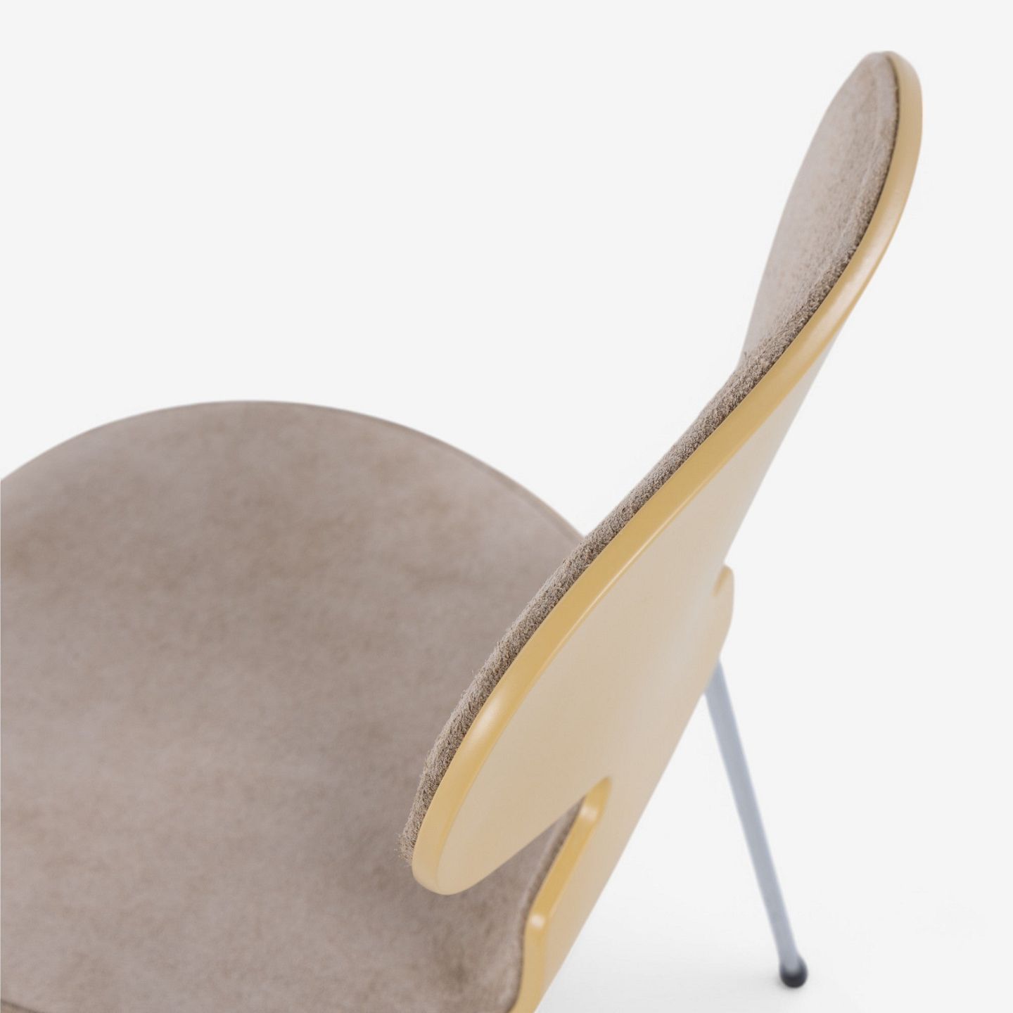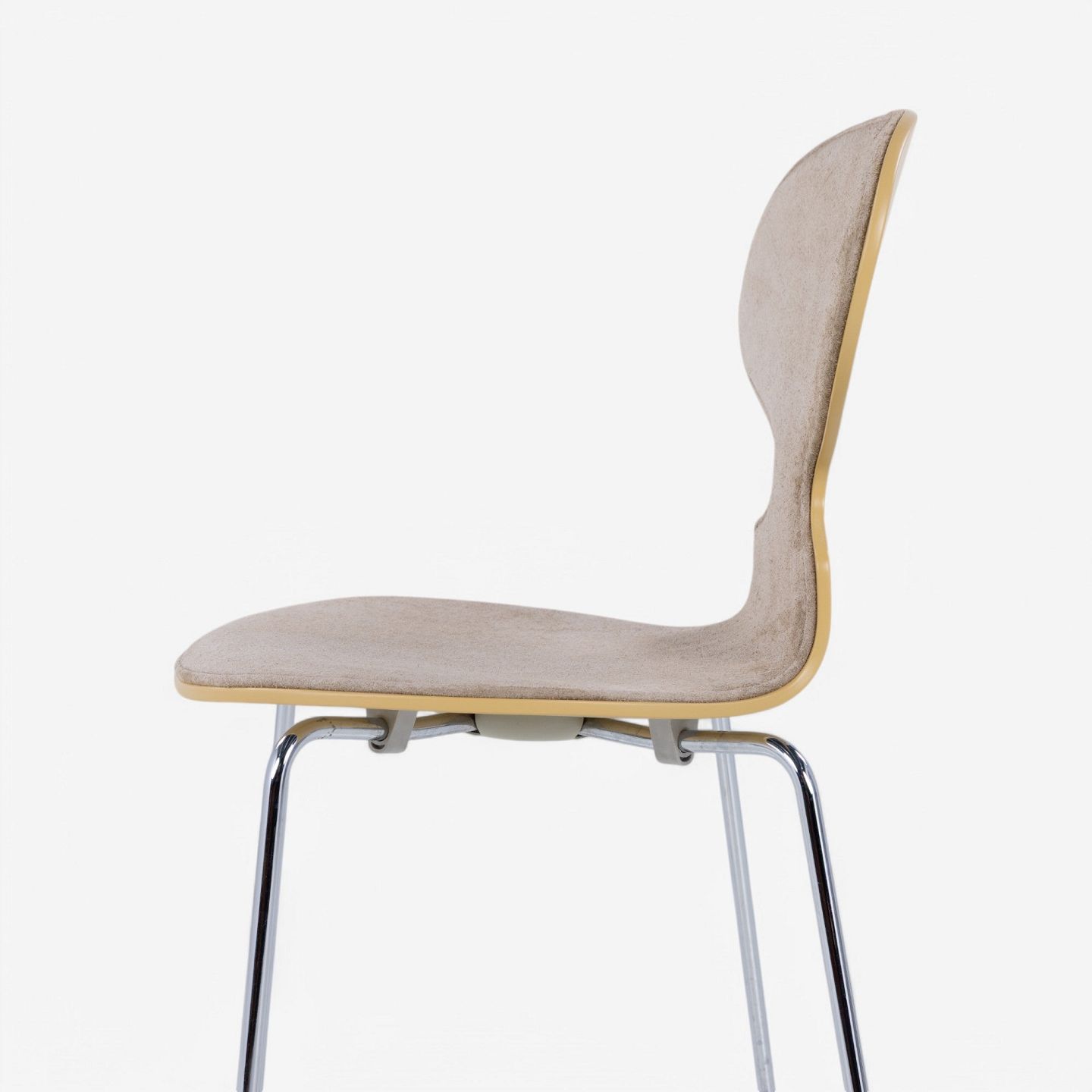 AJ 3100 - 'Ant chair' lacquered in 'RAL 1002' and front upholstered in 'Duet Gold' suede.