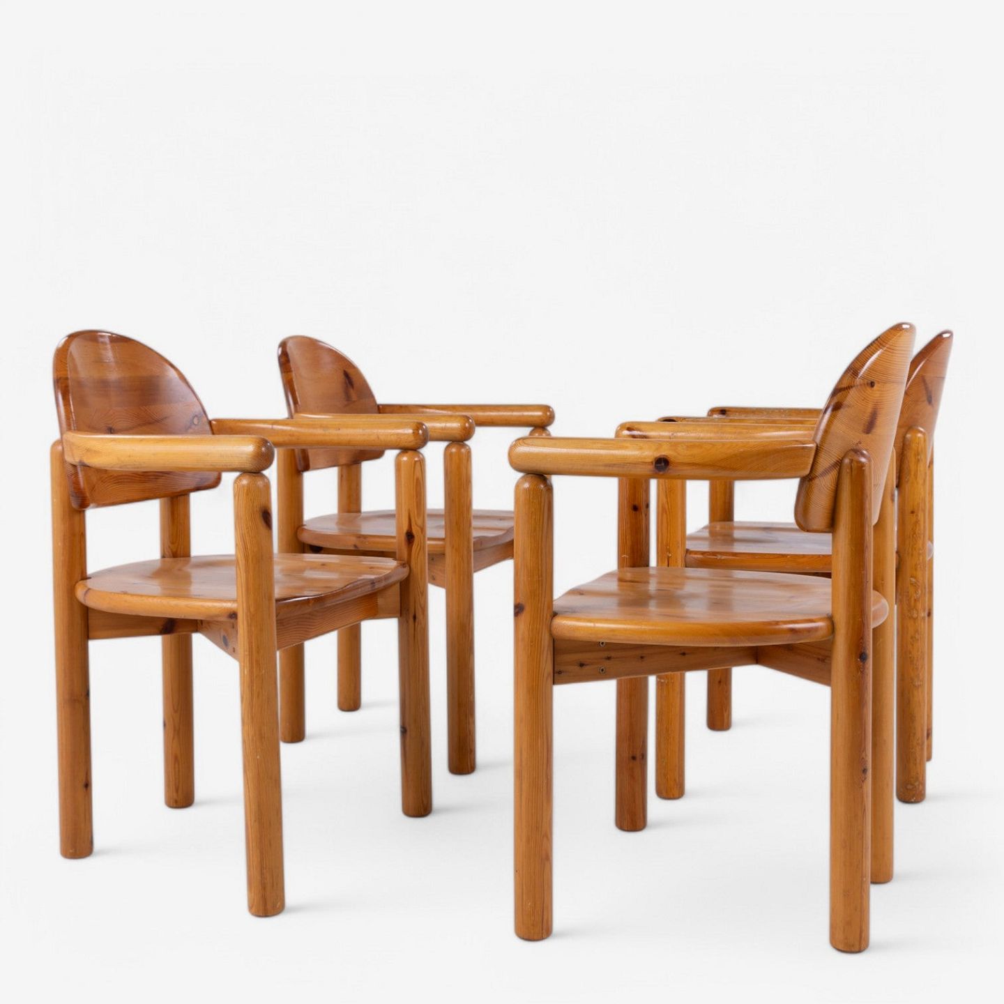 Set of 4 dining chairs in solid lacquered pine from the 1970s.