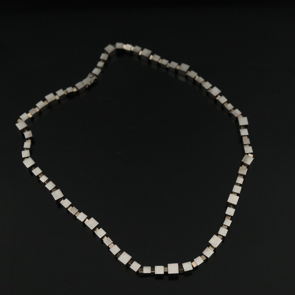 Karen Strand. 'Kubus' Halskæde i sterlingsølv og 18k guld.