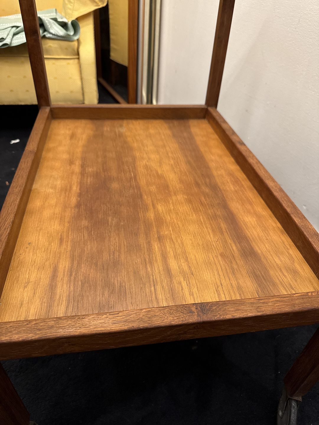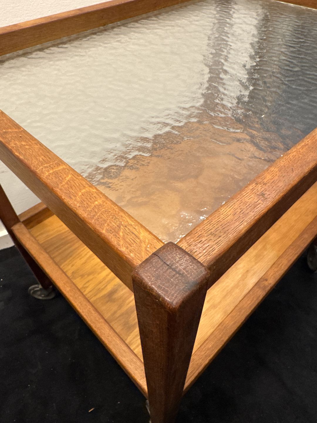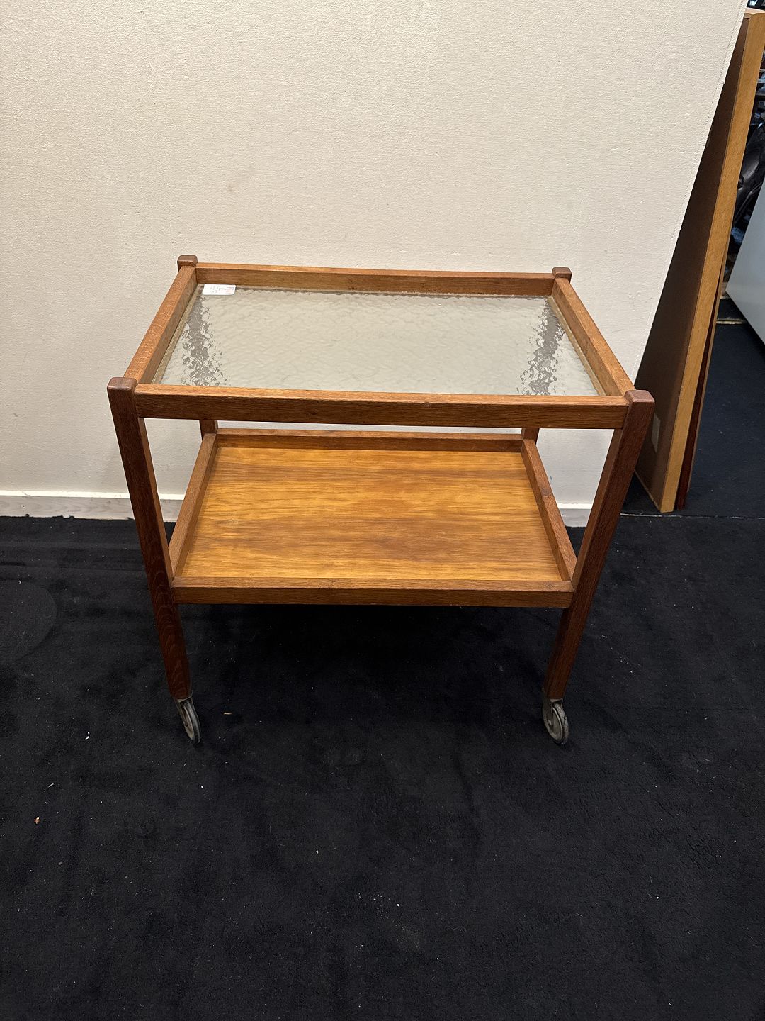 Dansk Møbelproducent rullebord i eg med top plade af råglas.
