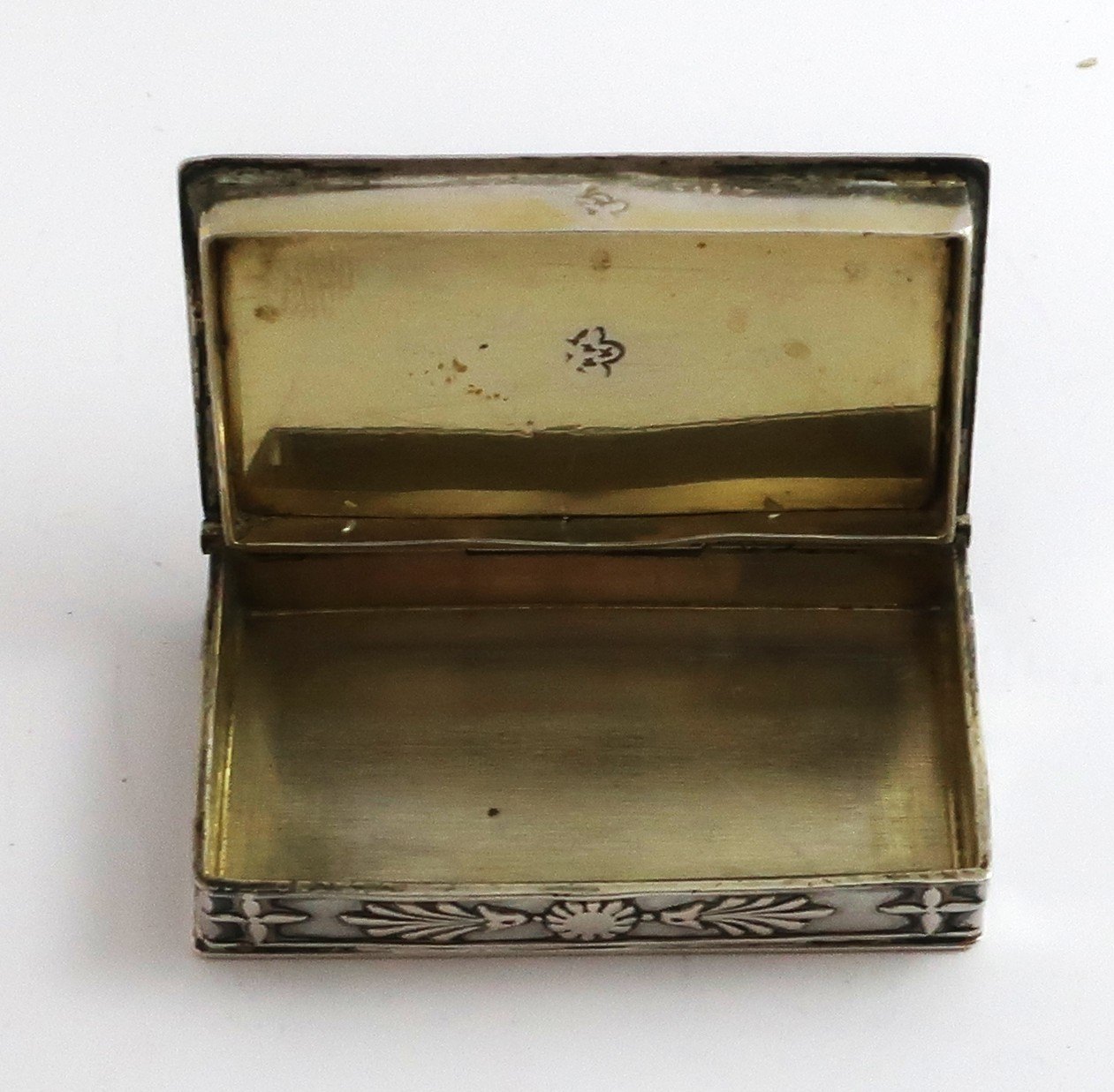 Small silver box (830). With mother of pearl at the bottom of the lid. Length 5.3 cm. Width 3 cm.