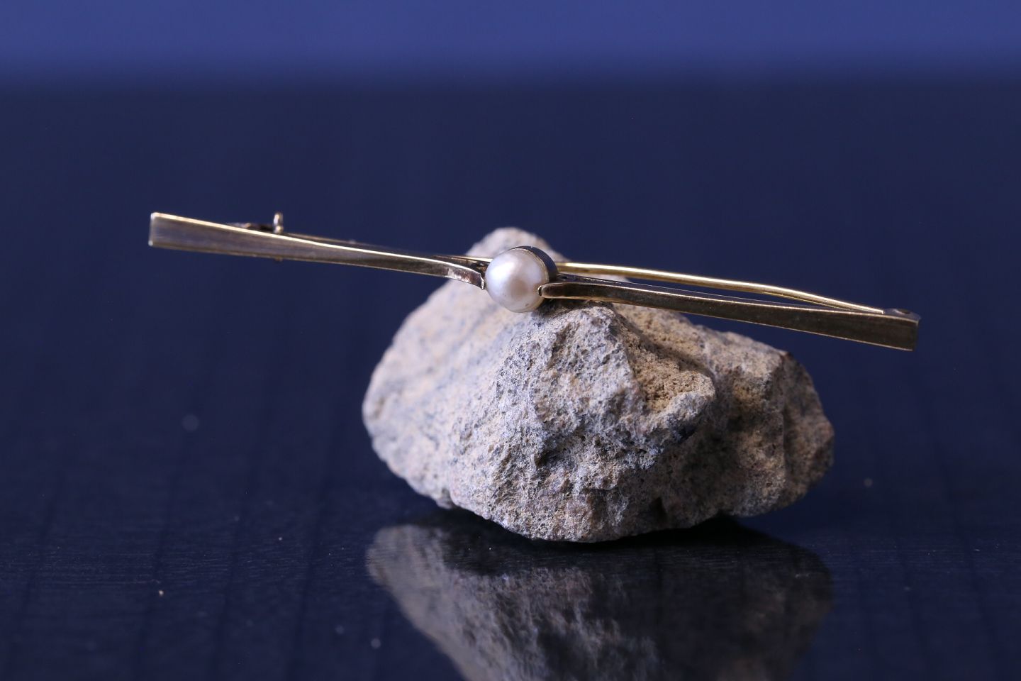 Propeller-shaped gold brooch in 14 carat gold, with pearl. Stamped 585