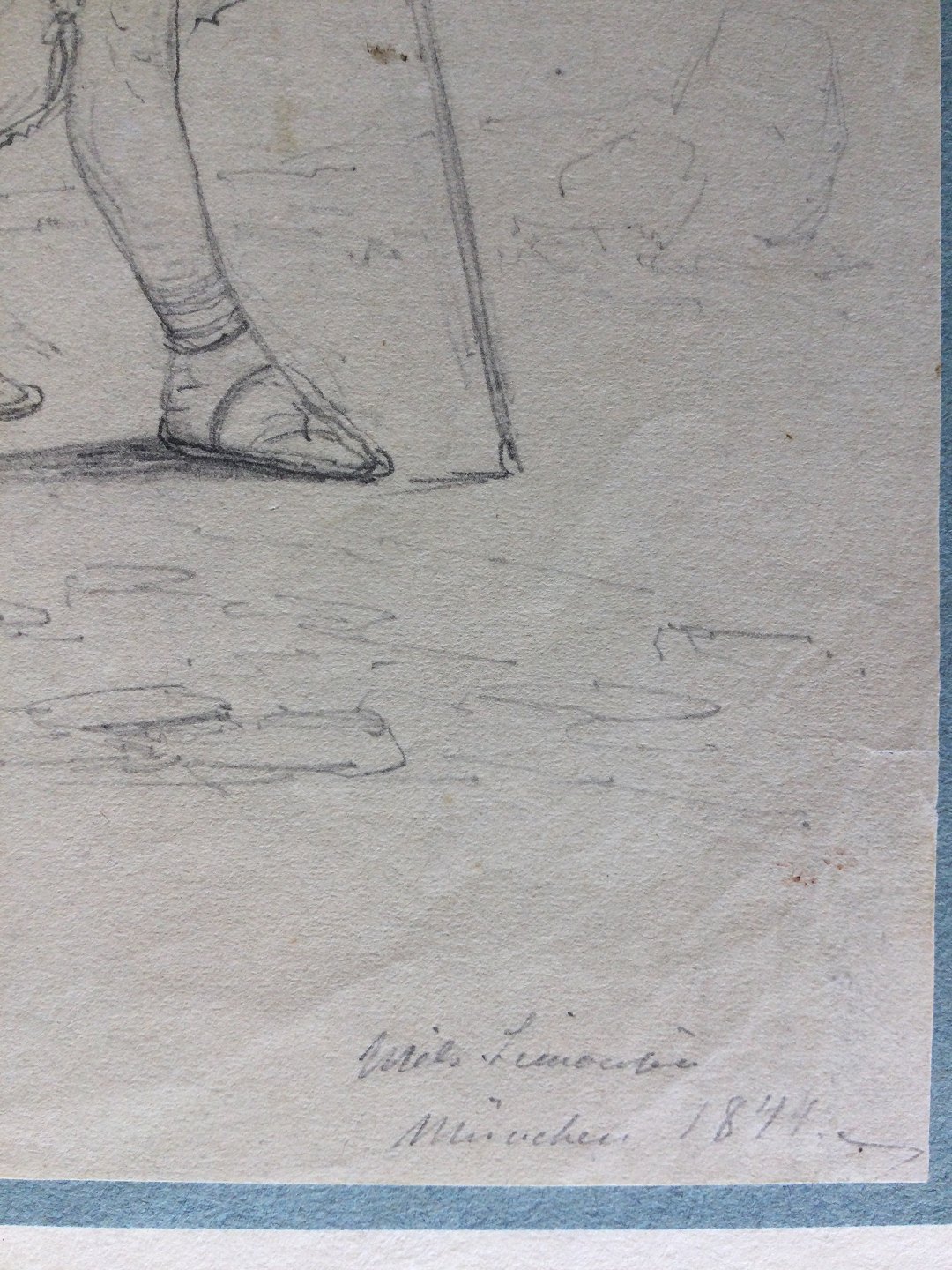 Bly på papir monteret på pap.