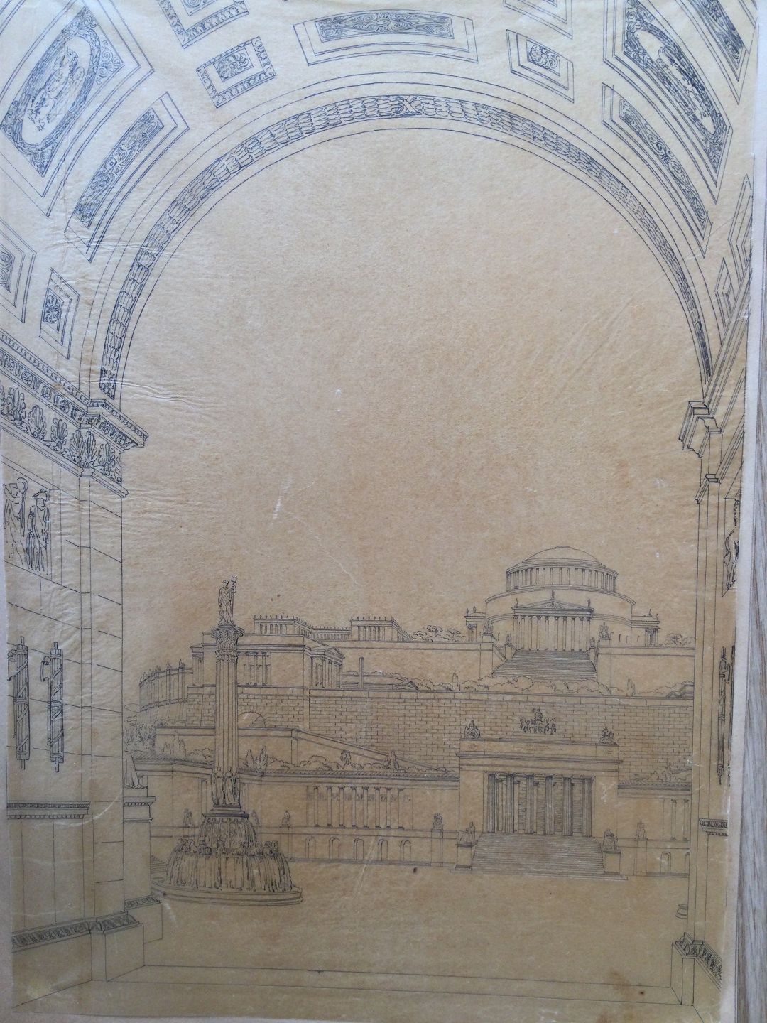 Radering af Christian Hetsch - Kig gennem port til Pantheon i Rom.
