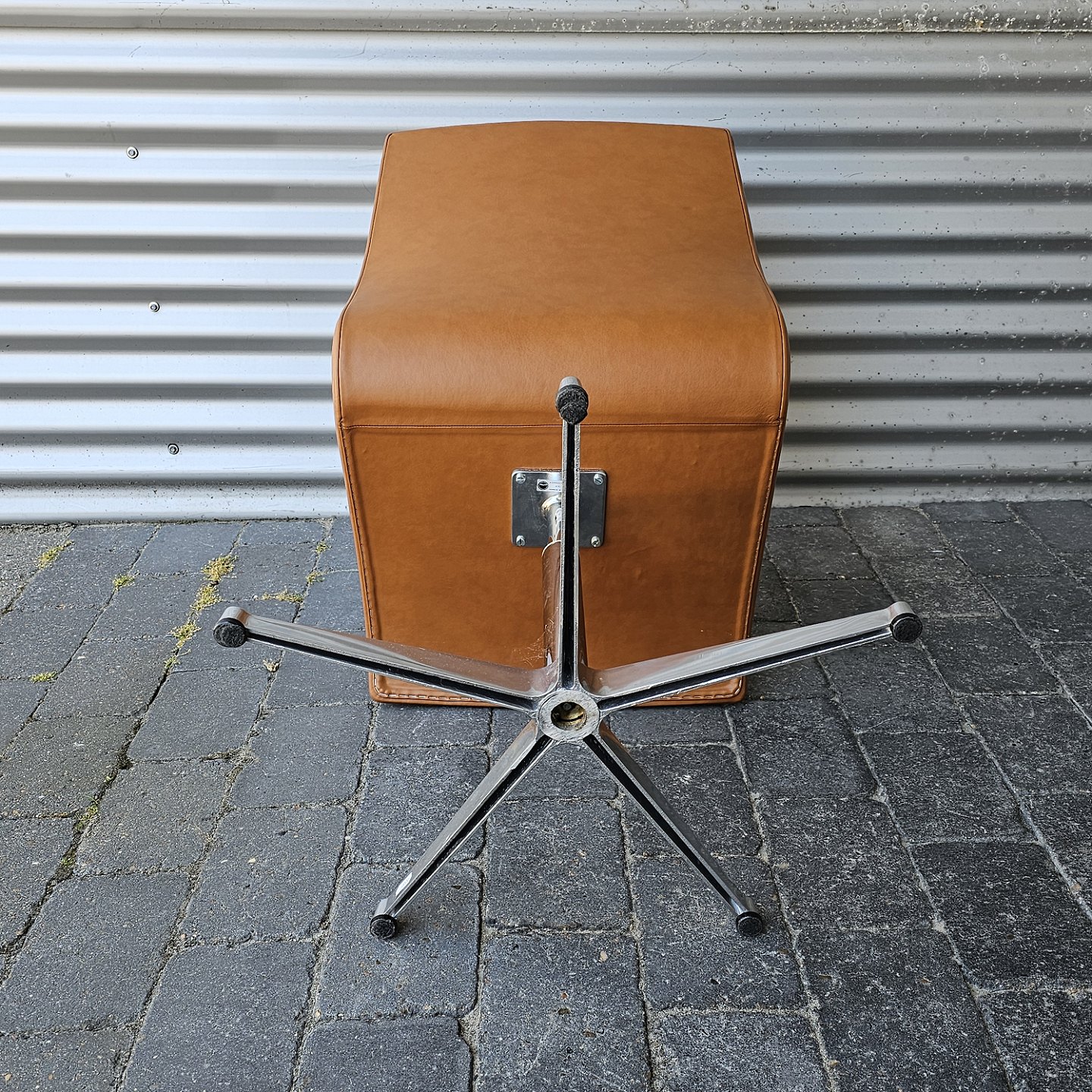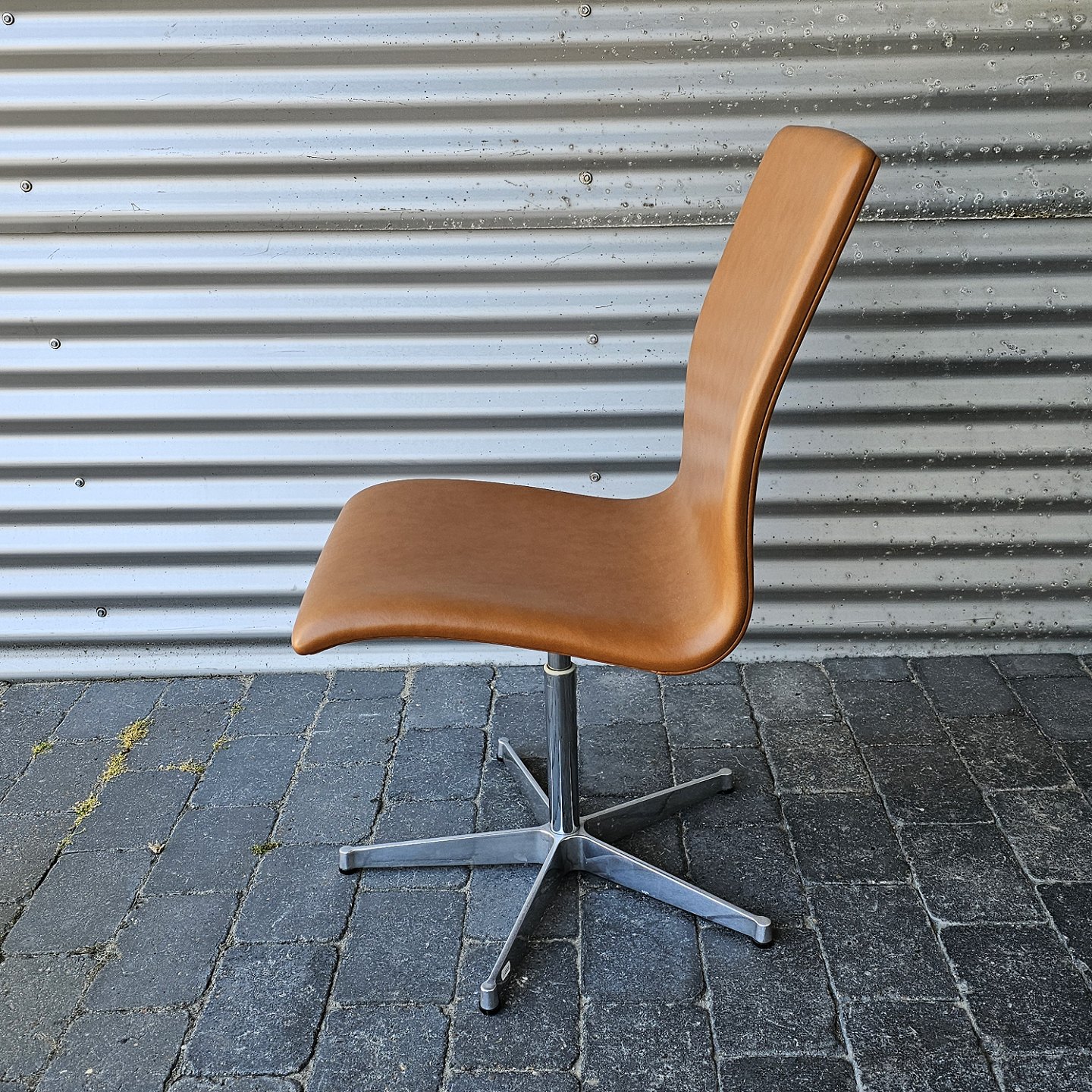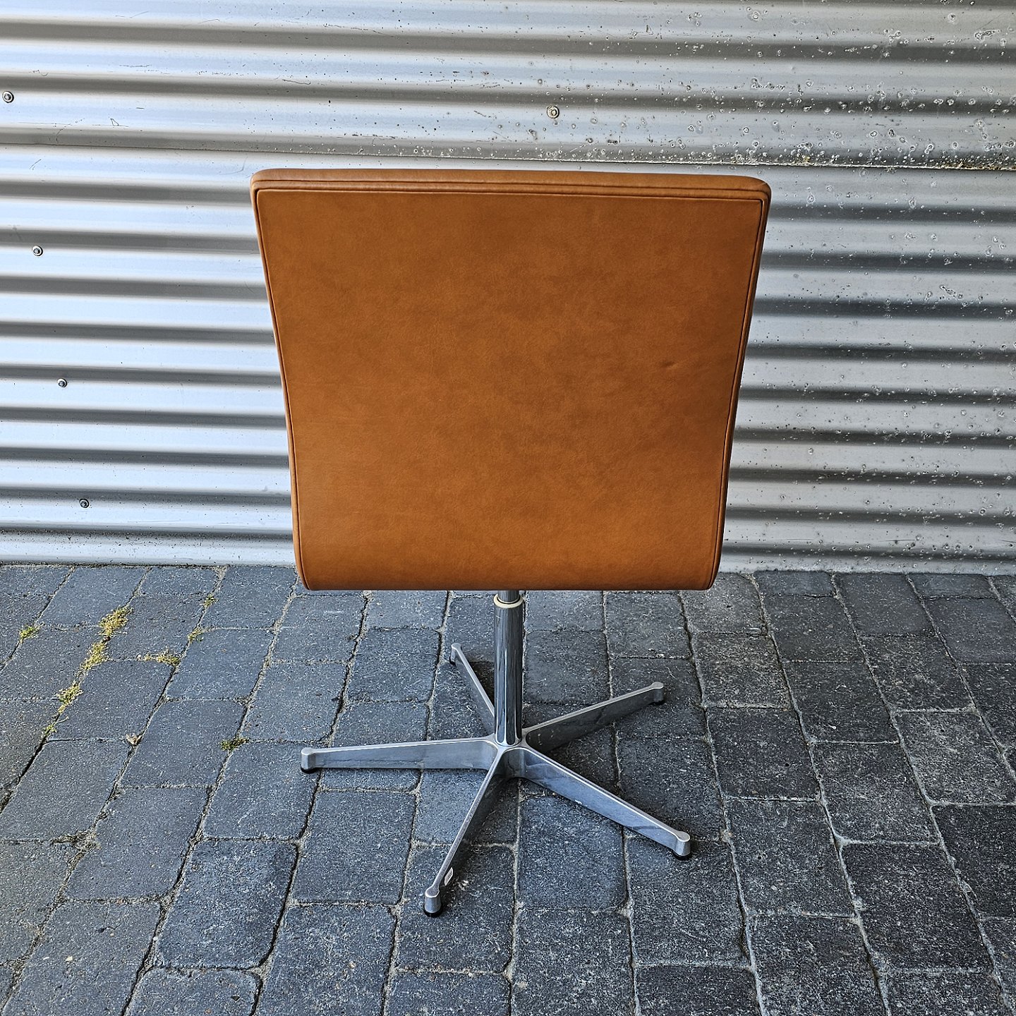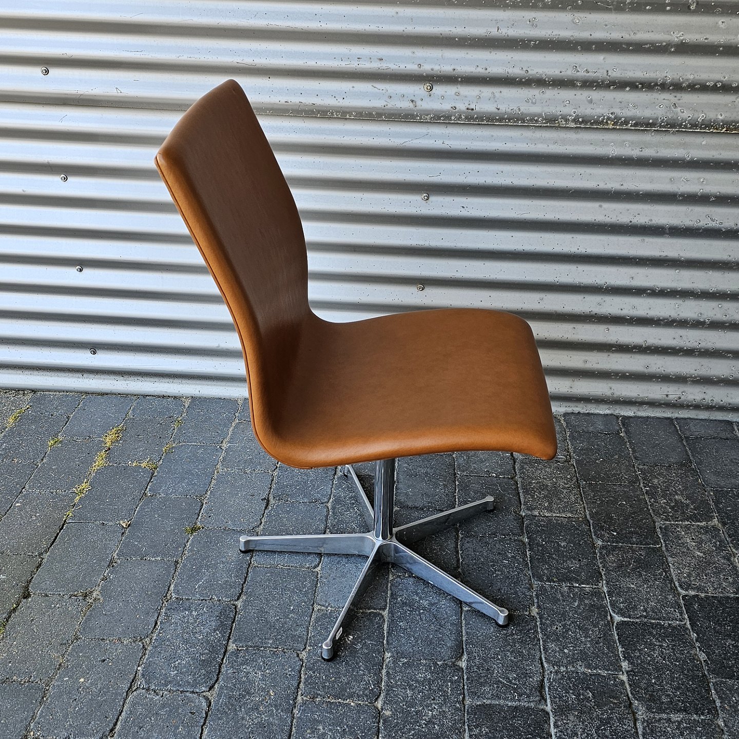 Oxford kontorstol med forkromet, drejelig fod og polstret sæde i brunt læder