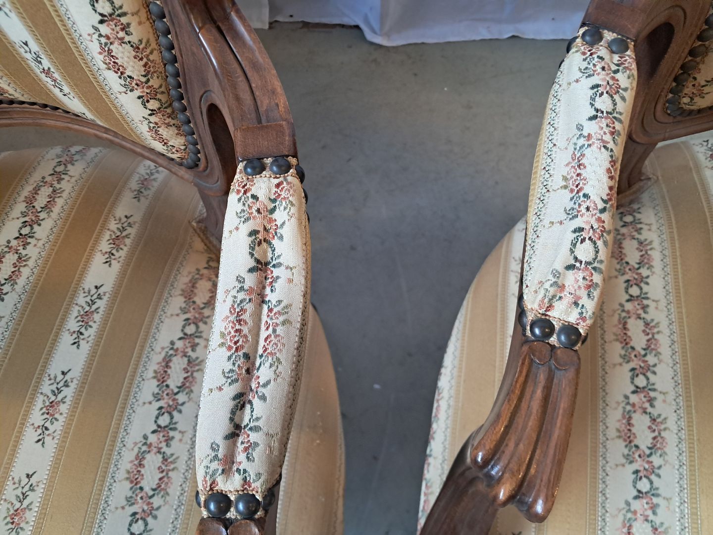 De har brugsspor og polstringen på armlænene er faldet sammen.