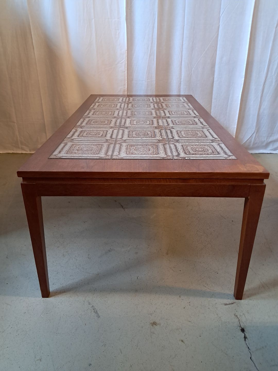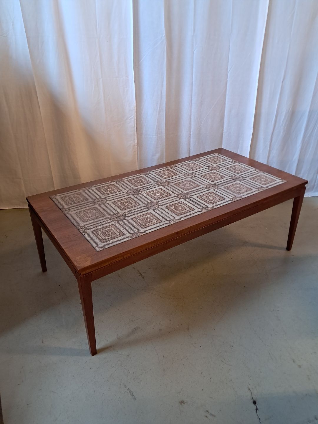 Sofabord i fineret teaktræ med kakler, fra 1960erne.