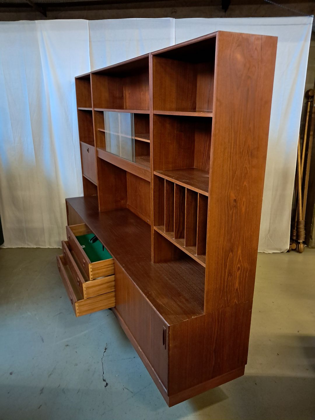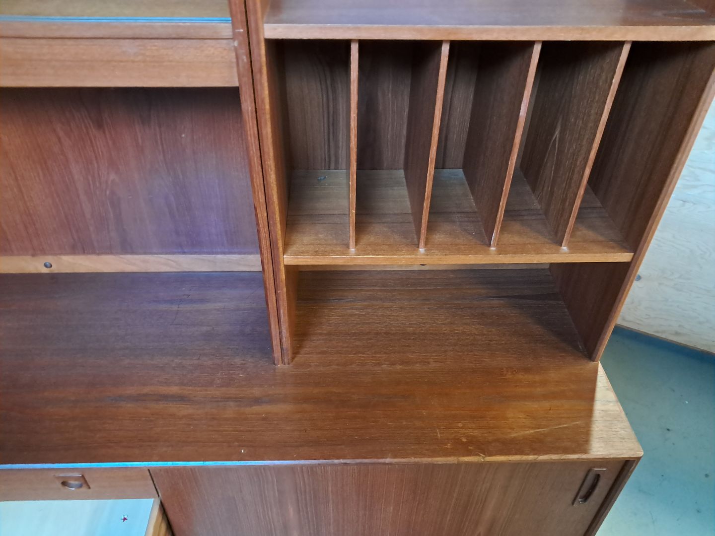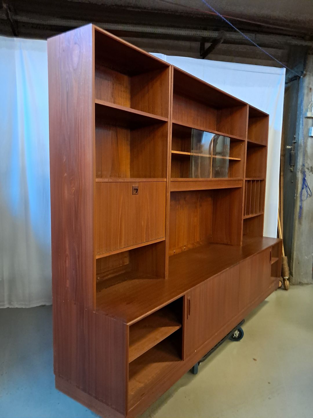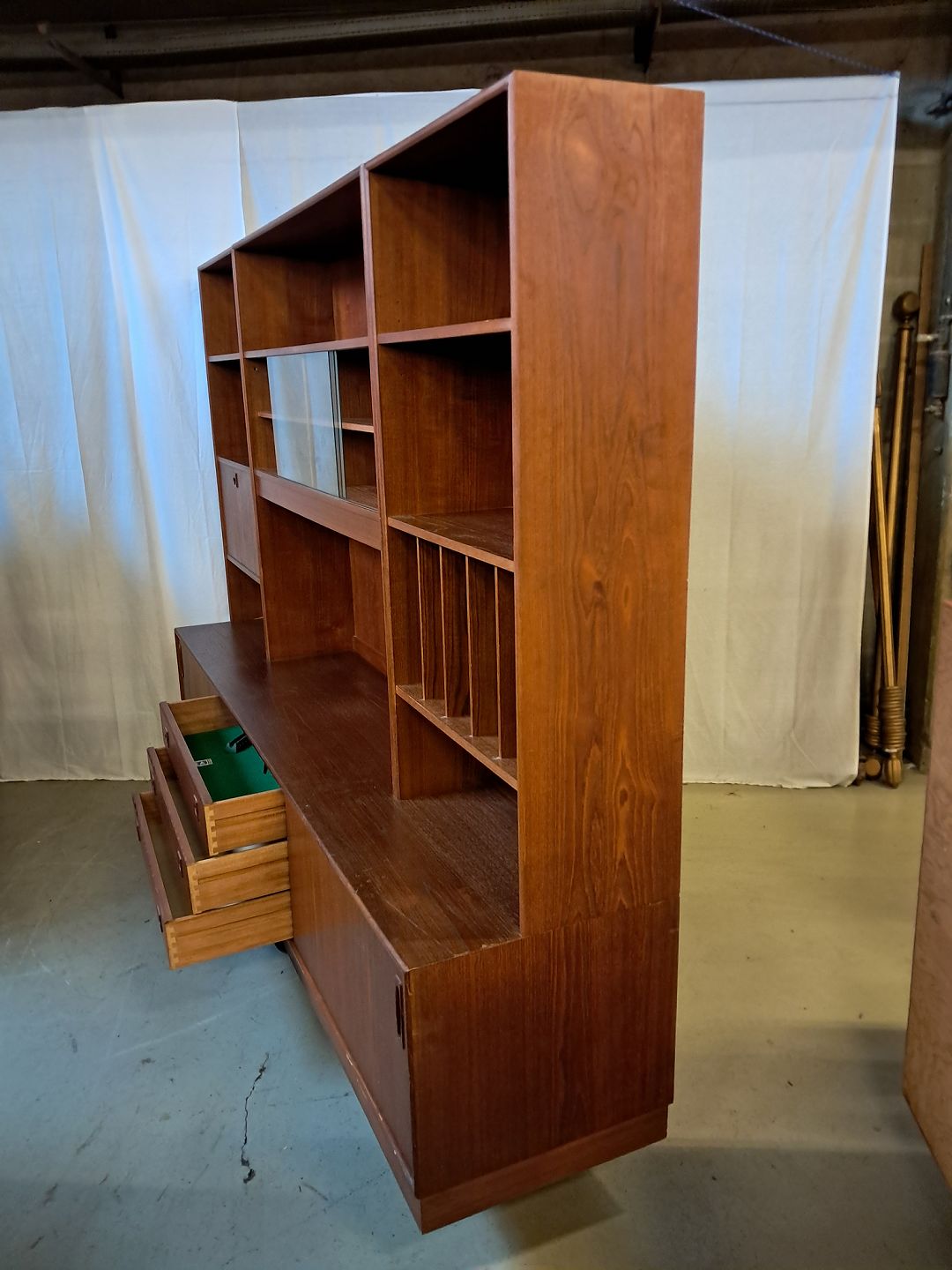 Reolsektion i fineret teaktræ, fra 1960erne.