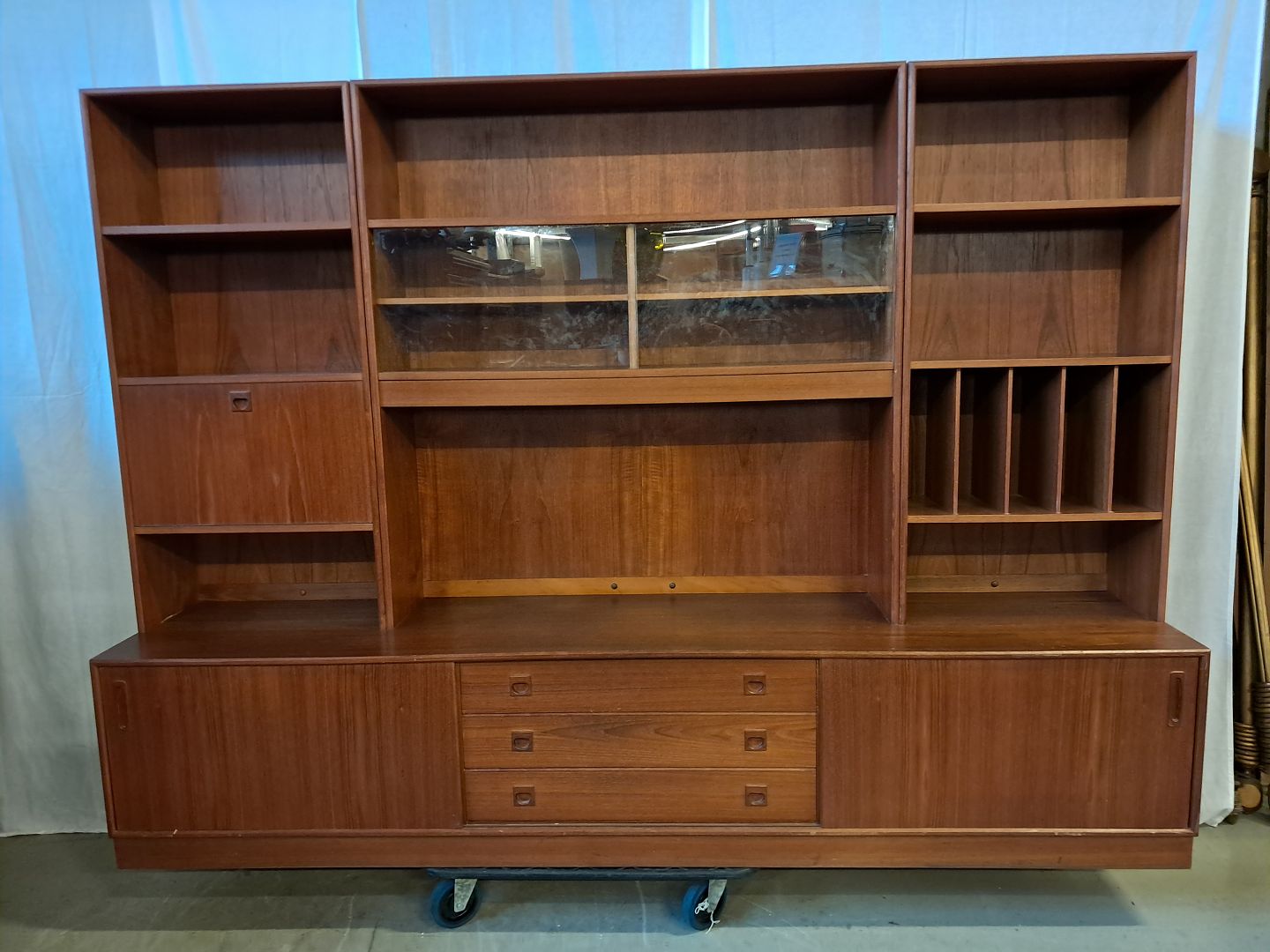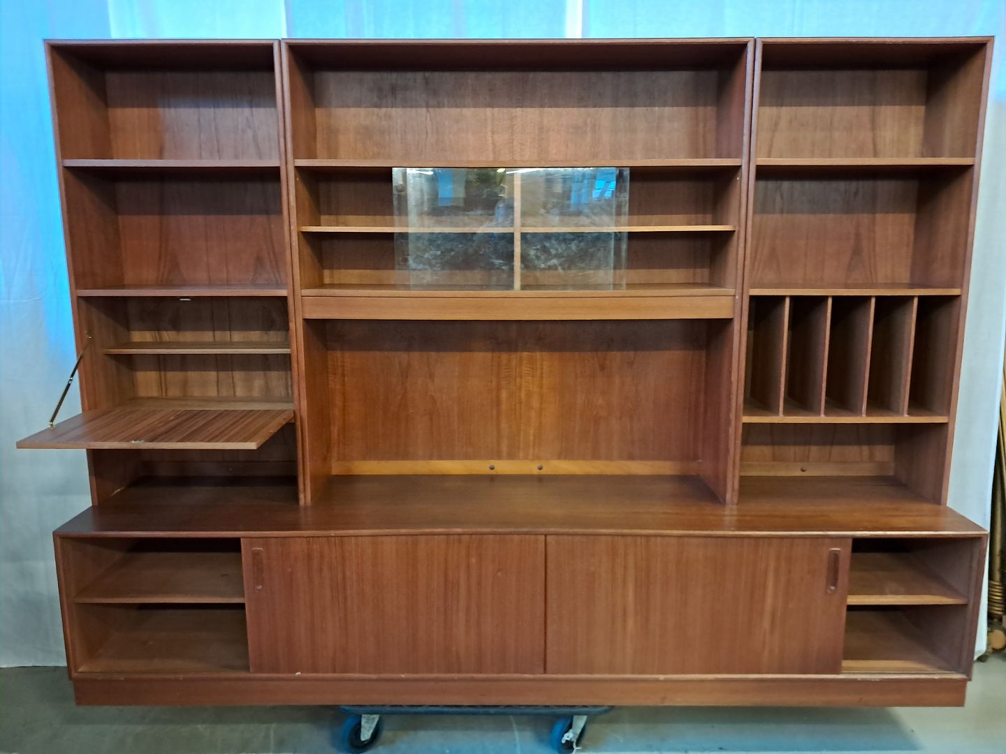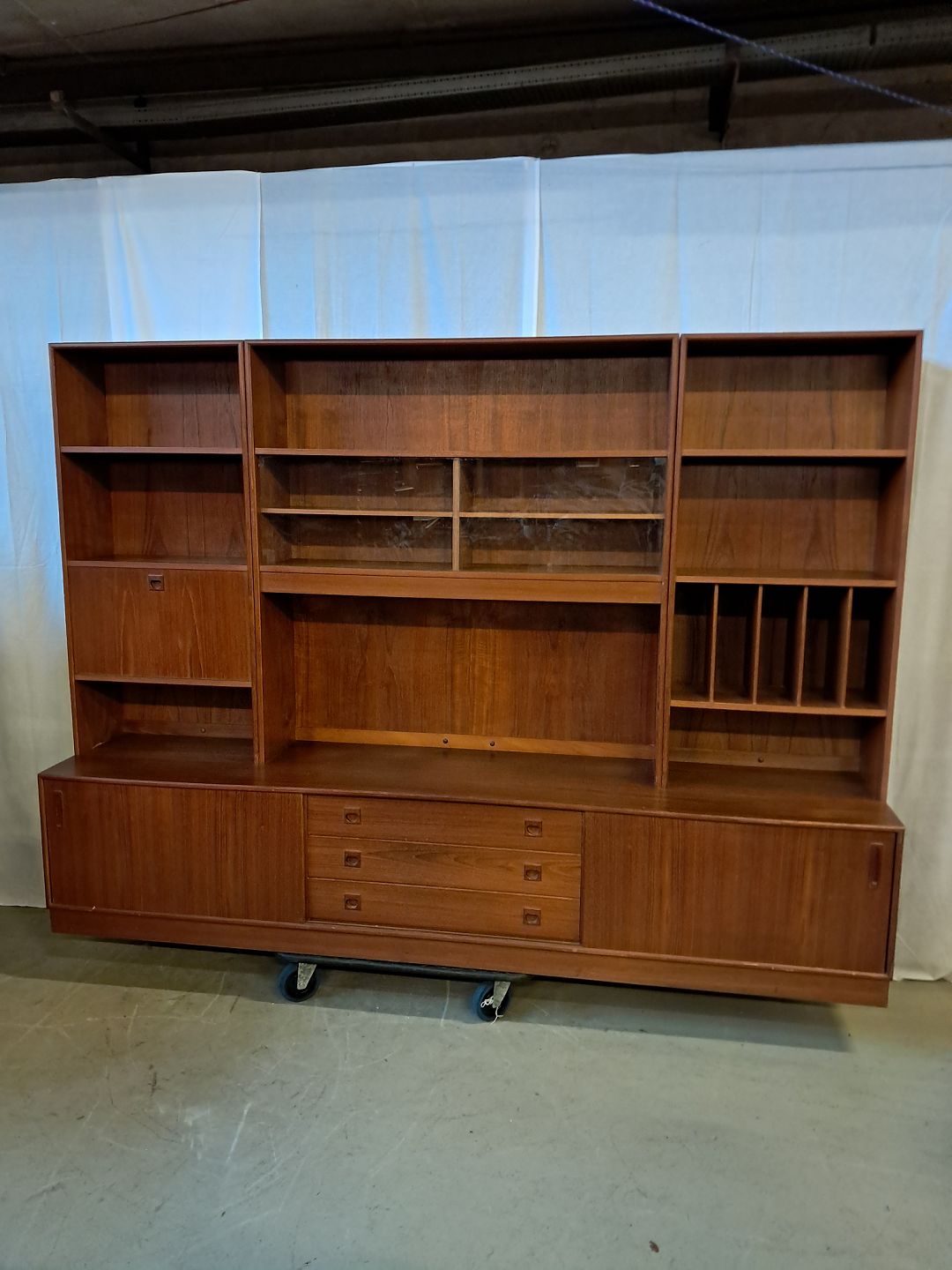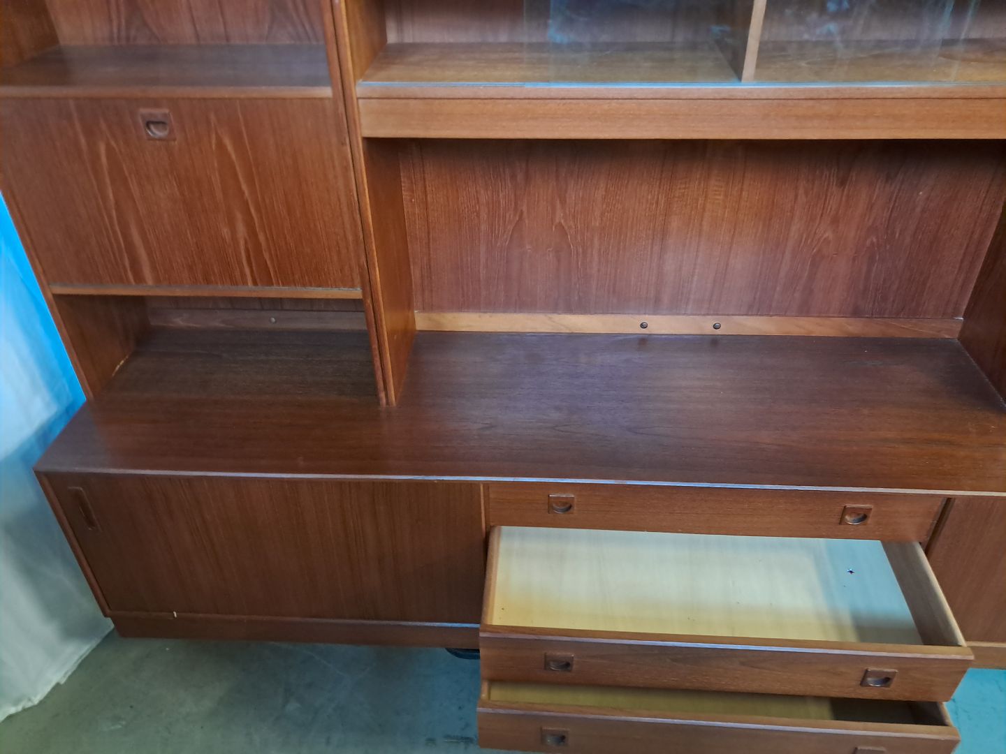 Reolsektion i fineret teaktræ, fra 1960erne.