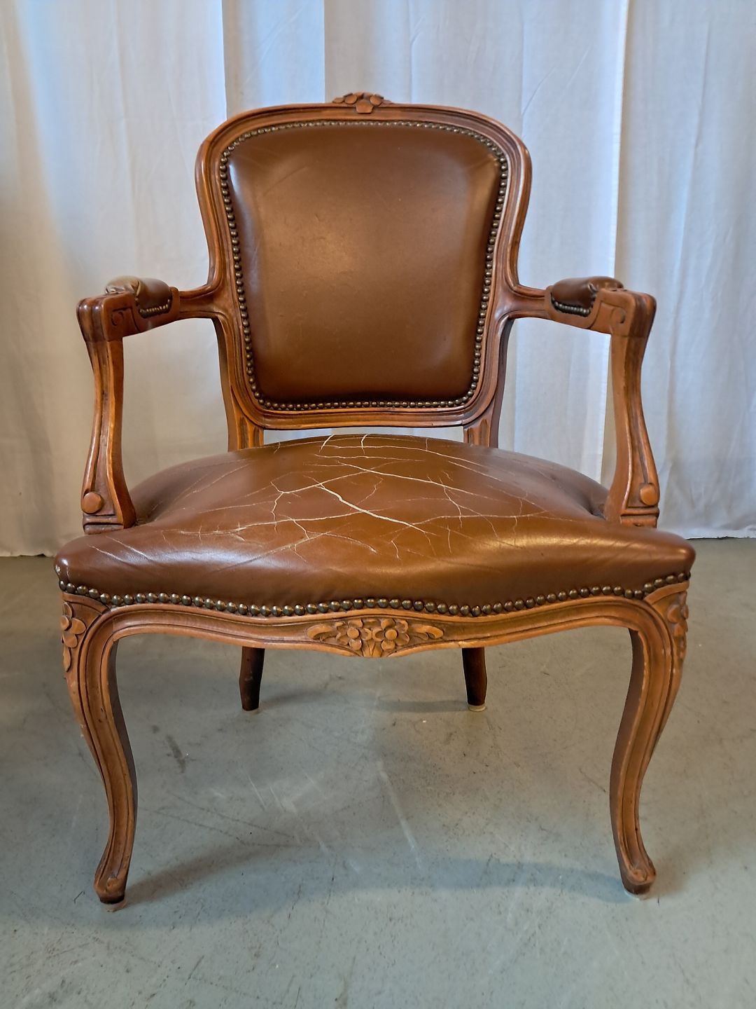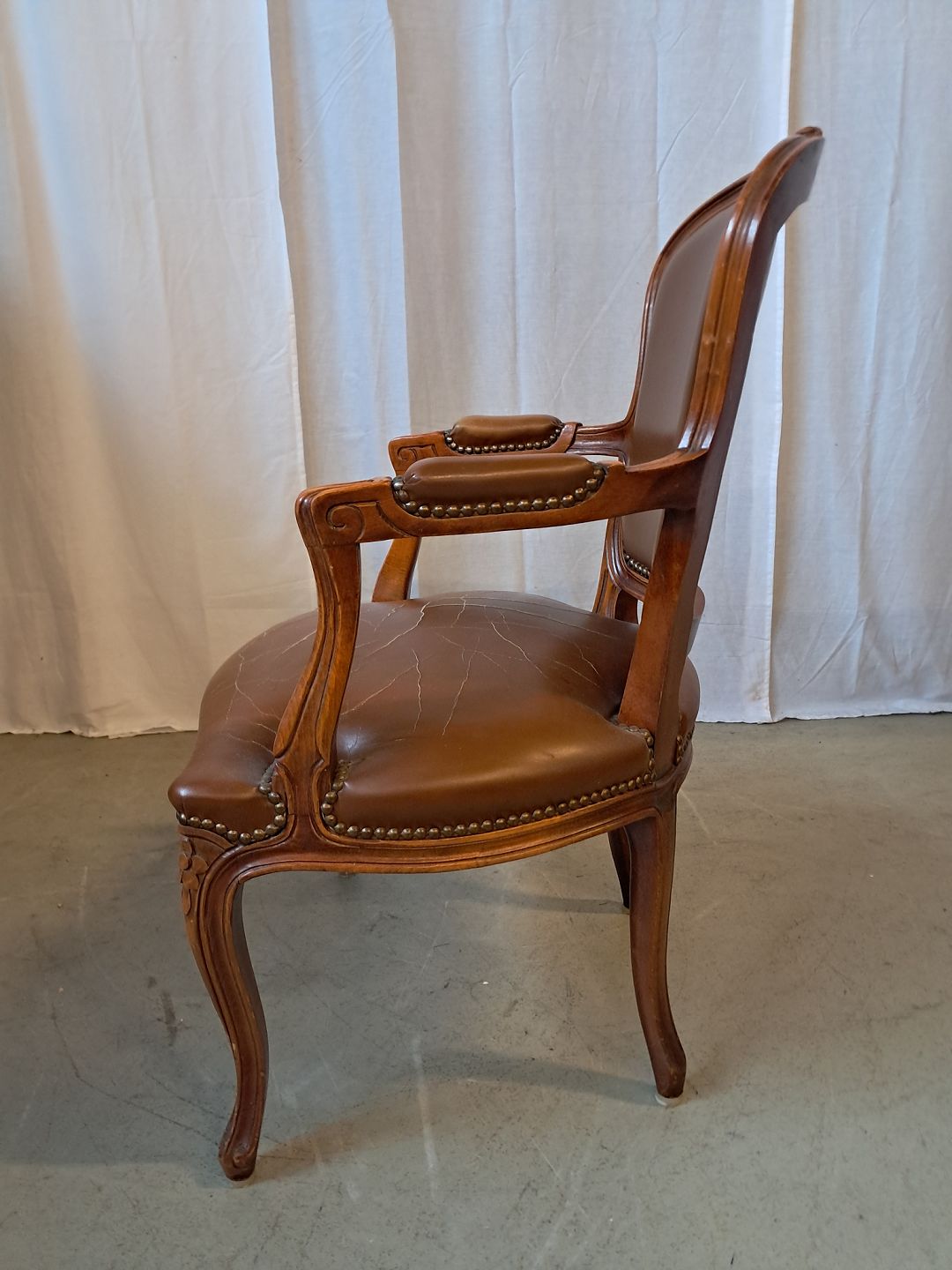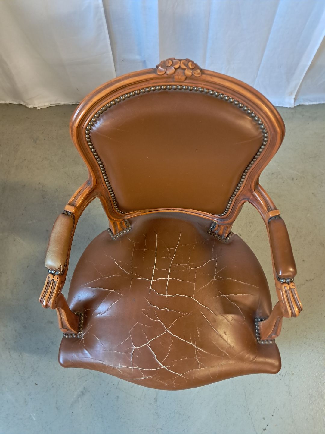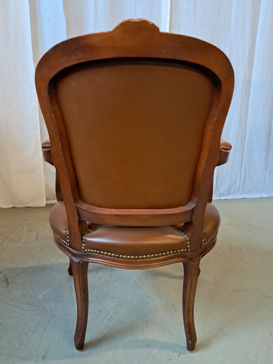 Rokokostol i massivt bøgetræ med kunstlæder, fra 1980erne.