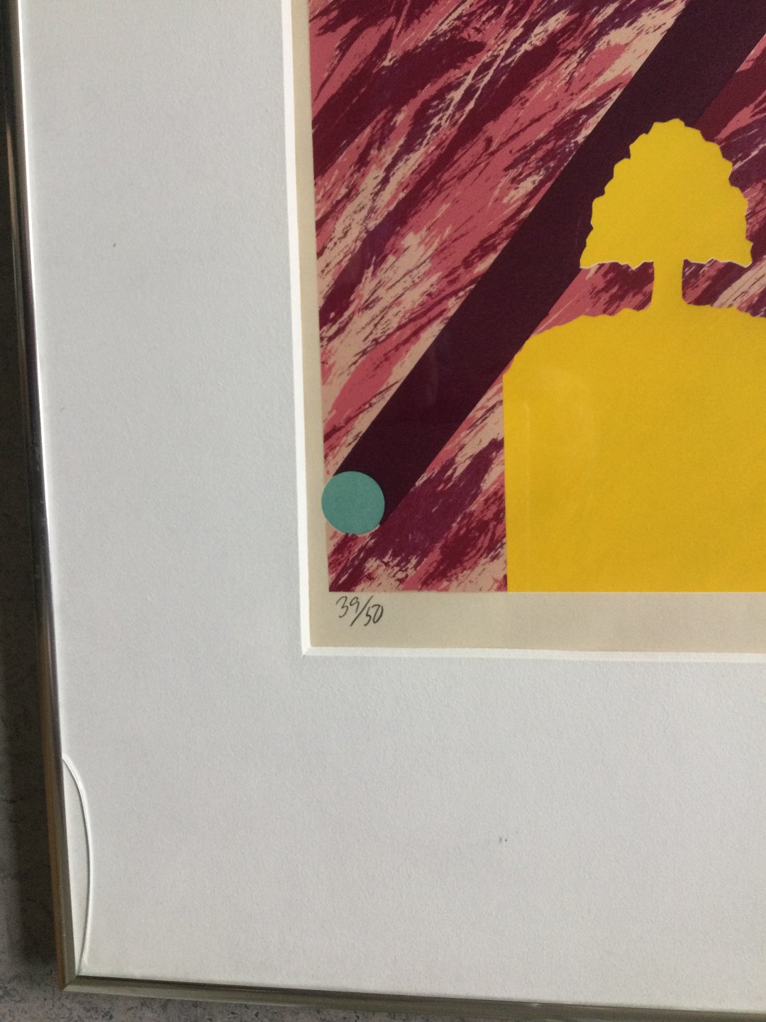 Farvelitografi af Bent Karl Jacobsen - Komposition "Landskab II 1983.