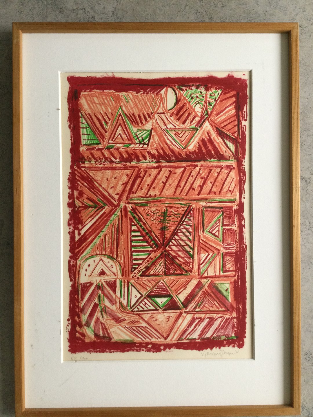 Indrammet med lidt "nusset" passepartout, men uden glas.