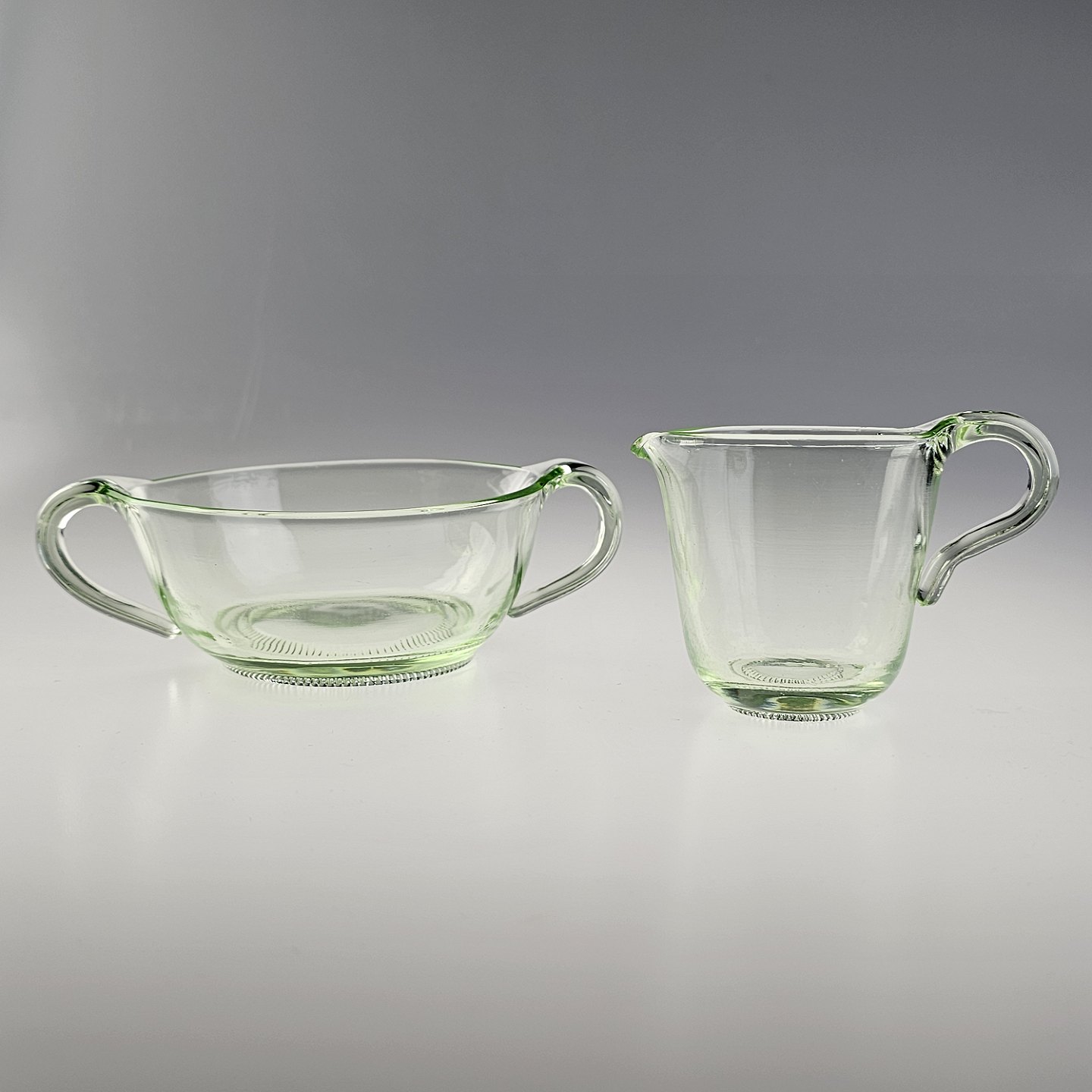 Skål og flødekande af uranglas