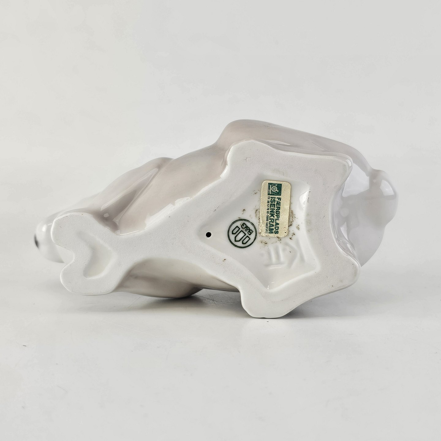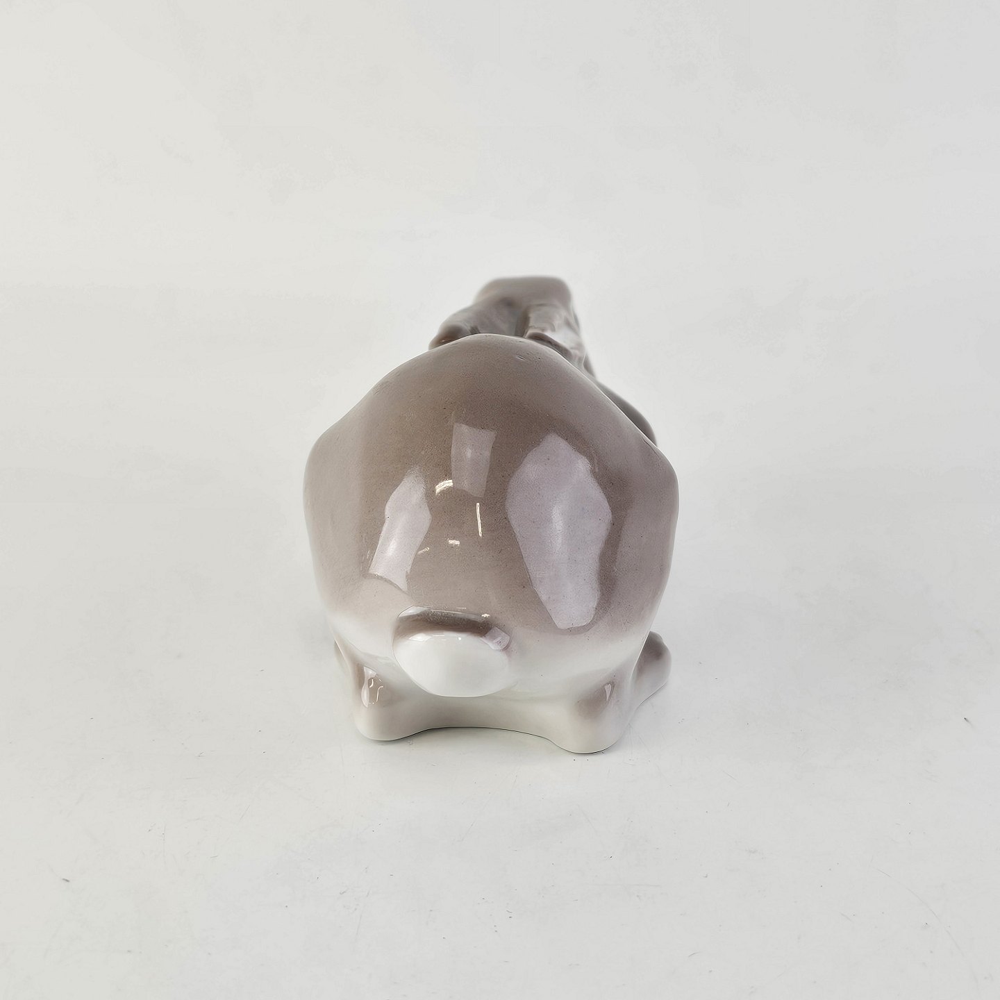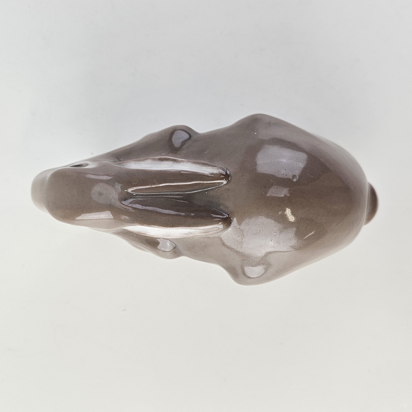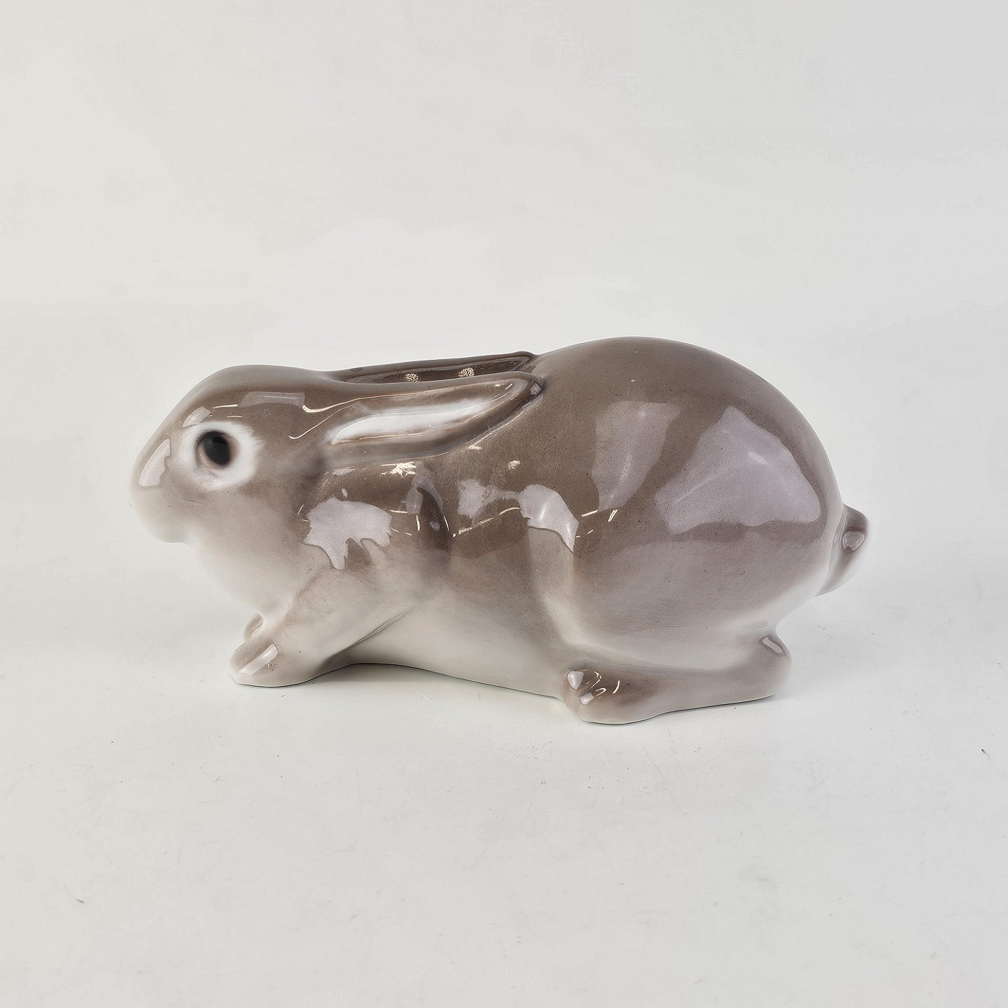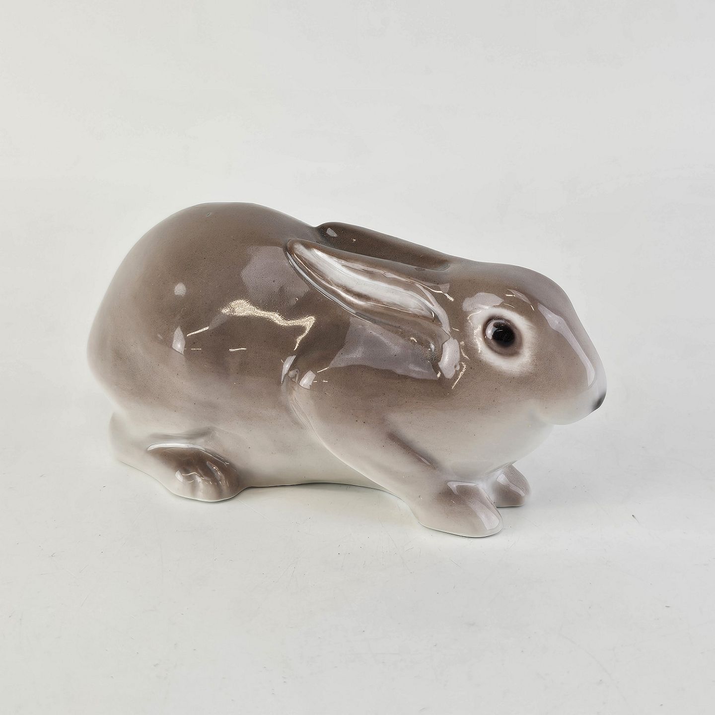 Figur i porcelæn med motiv af en hare eller kanin. Tryggende med ørene nede. Figuren findes i flere udgaver.