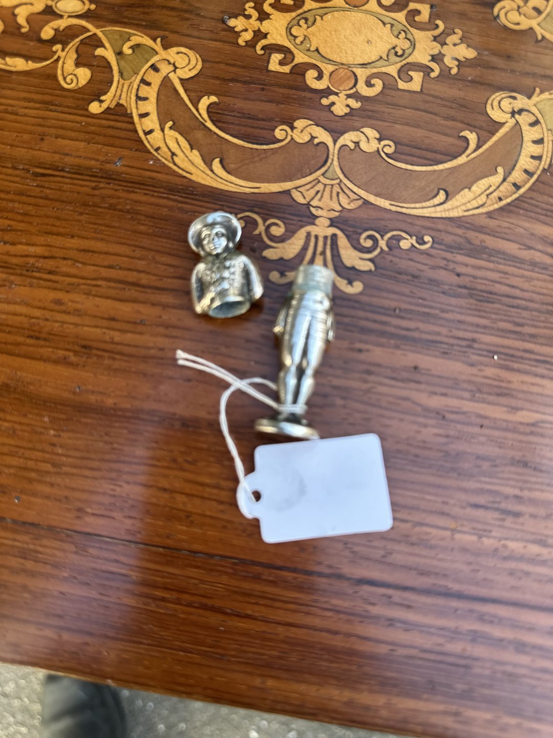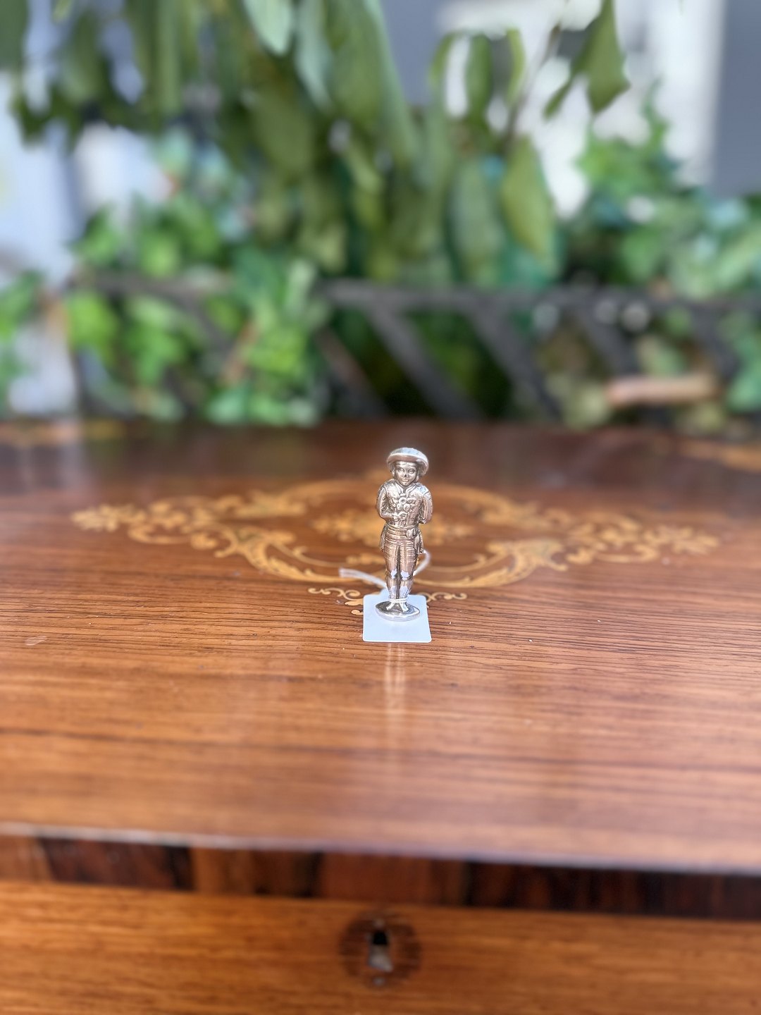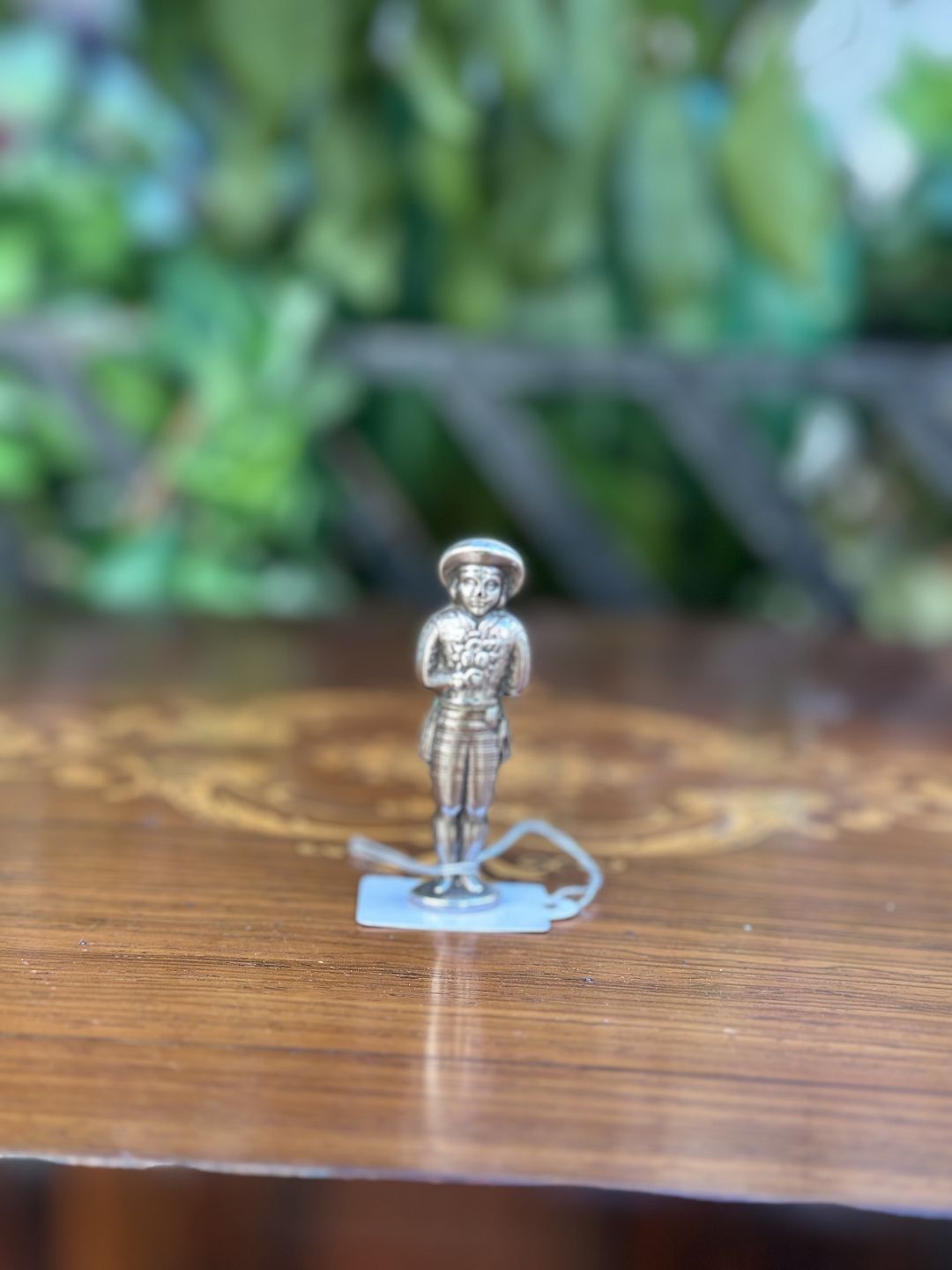 Vintage silver needle container, shaped like a small figure (man in folk costume, from the 19th century H 5 cm W 1.30 cm