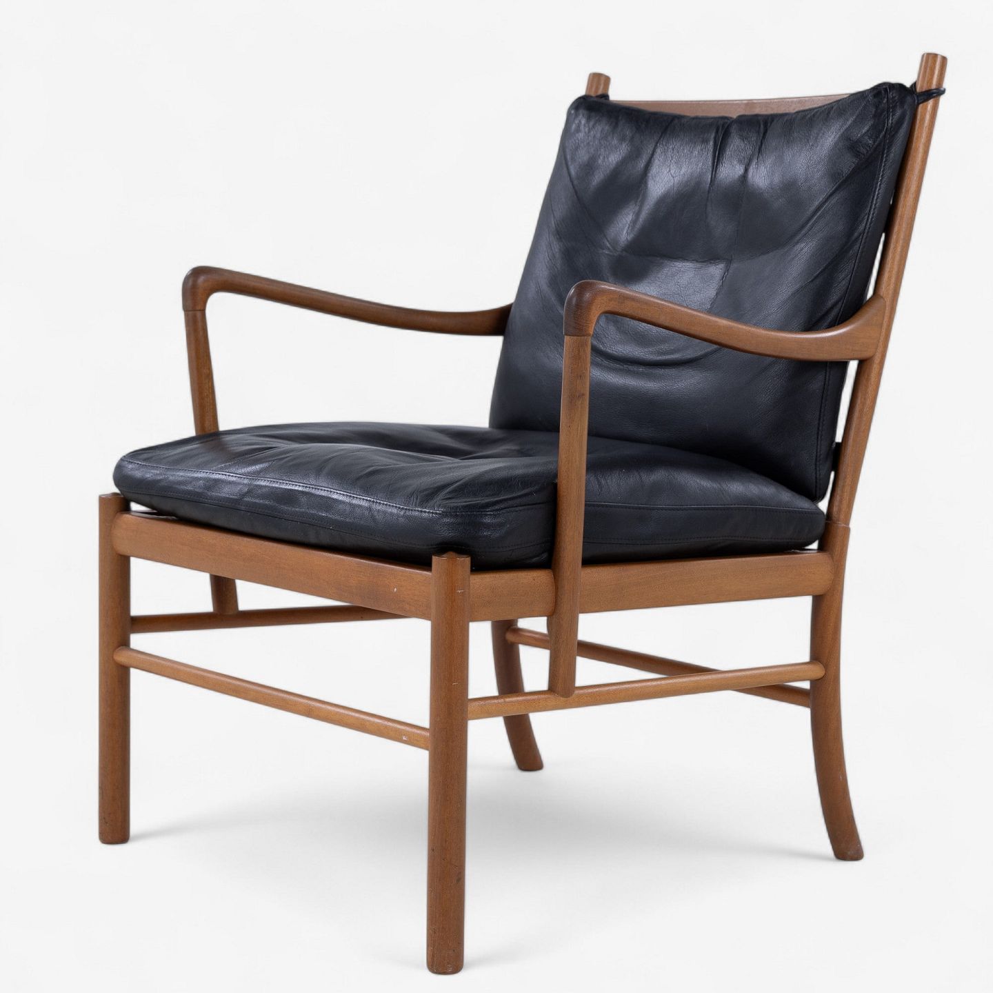 PJ 149 - 'Colonial Chair'-lænestol i mahogni med hynder i sort patineret læder.