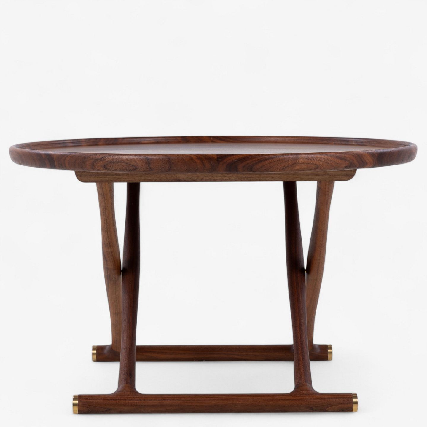'Ægypterbordet' i valnød med messingdetaljer. Mærket fra producenten. Formgivet i 1940.